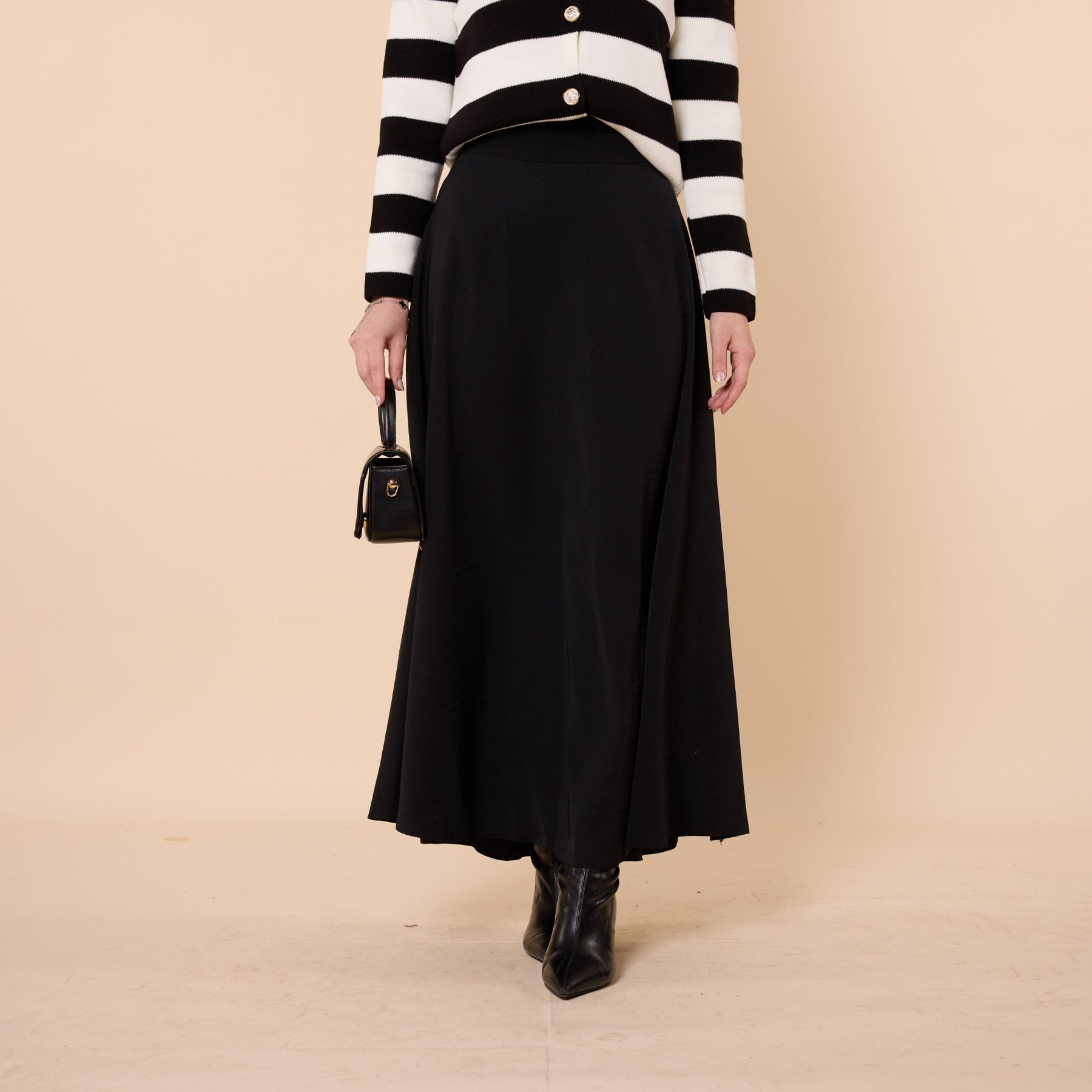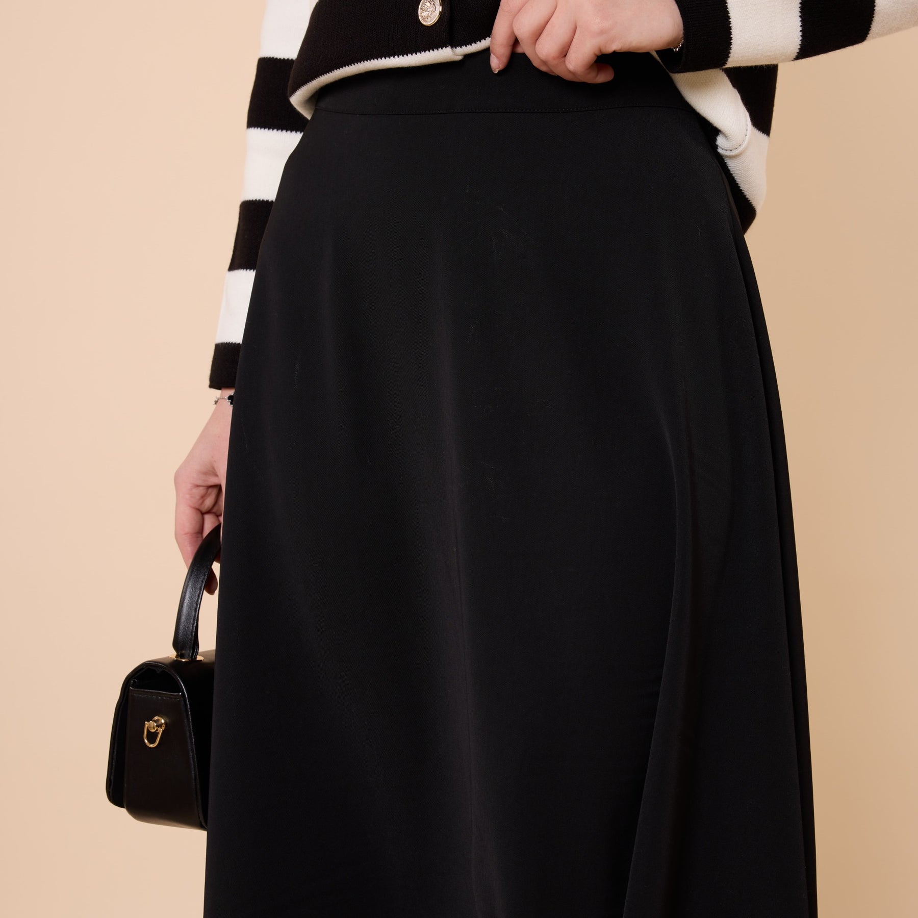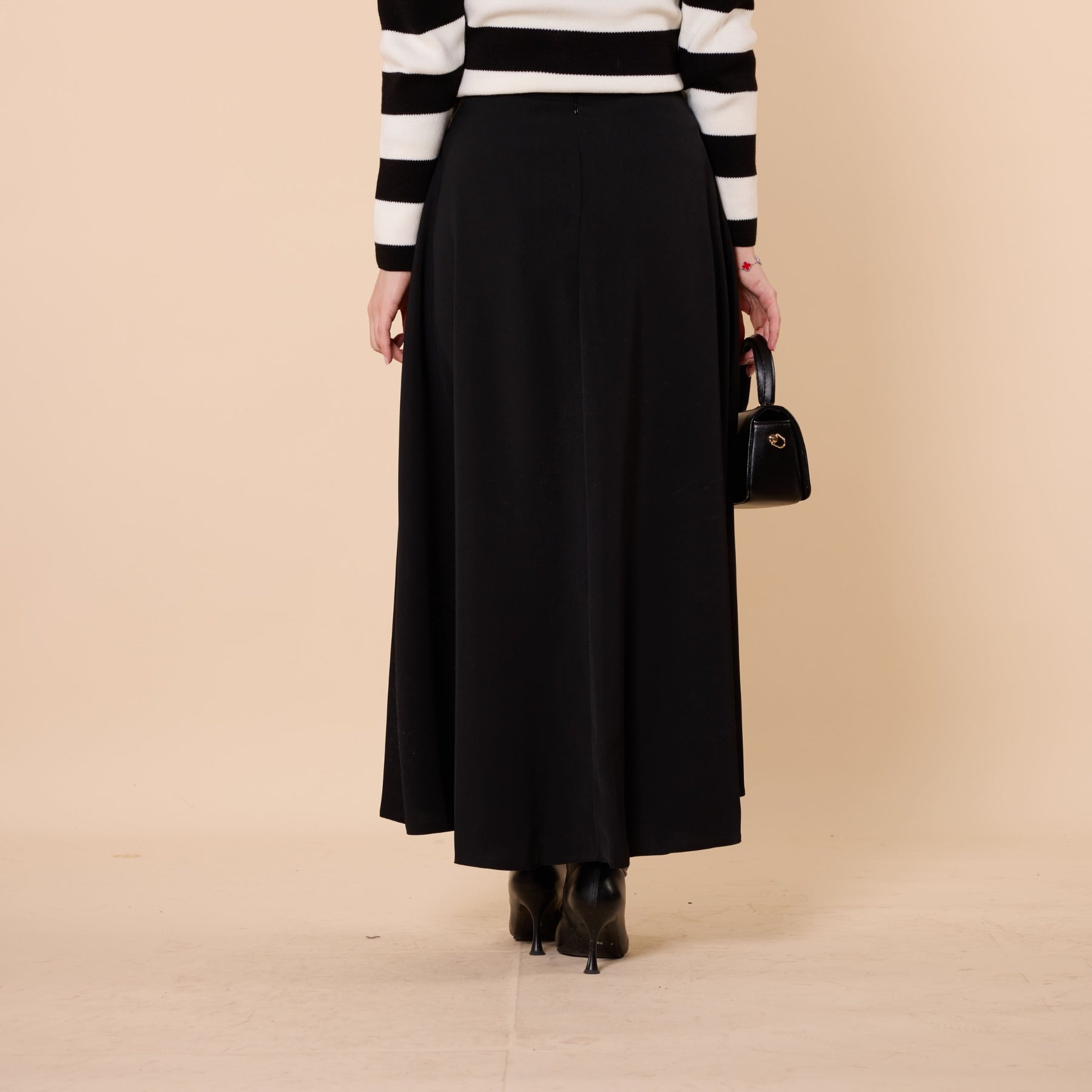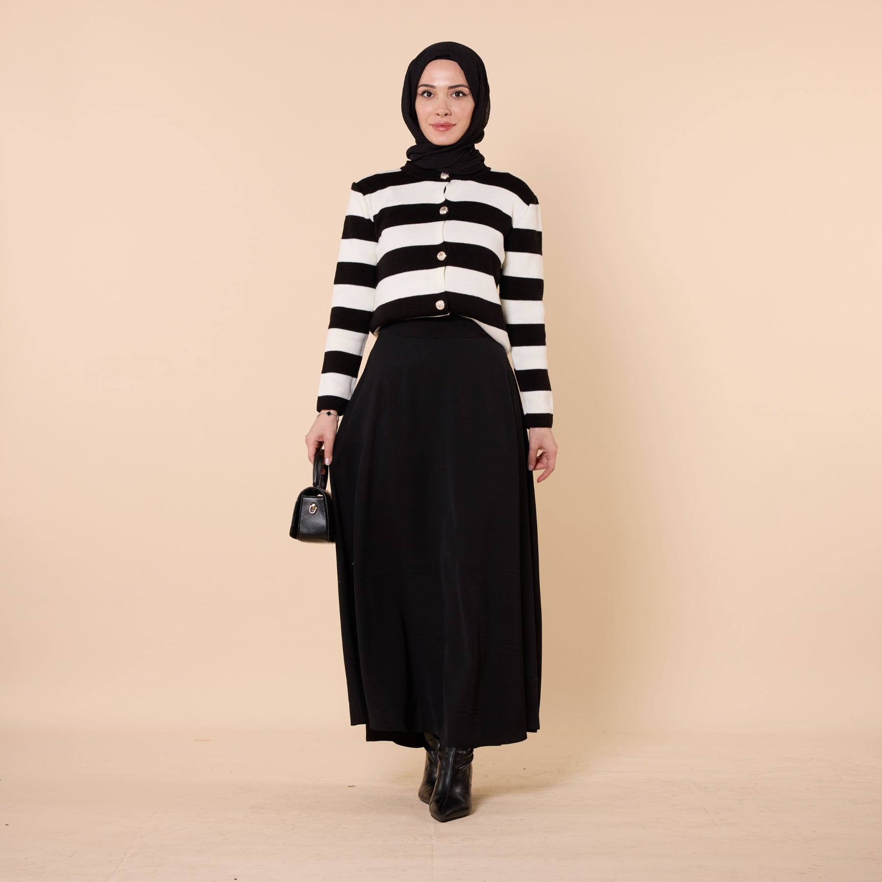 Available in black and brown, this skirt pairs effortlessly with sweaters, blouses, and tunics. Ideal for daily wear, it transitions smoothly from office outfits to casual weekend looks. With its timeless design, it is a versatile essential for any wardrobe.