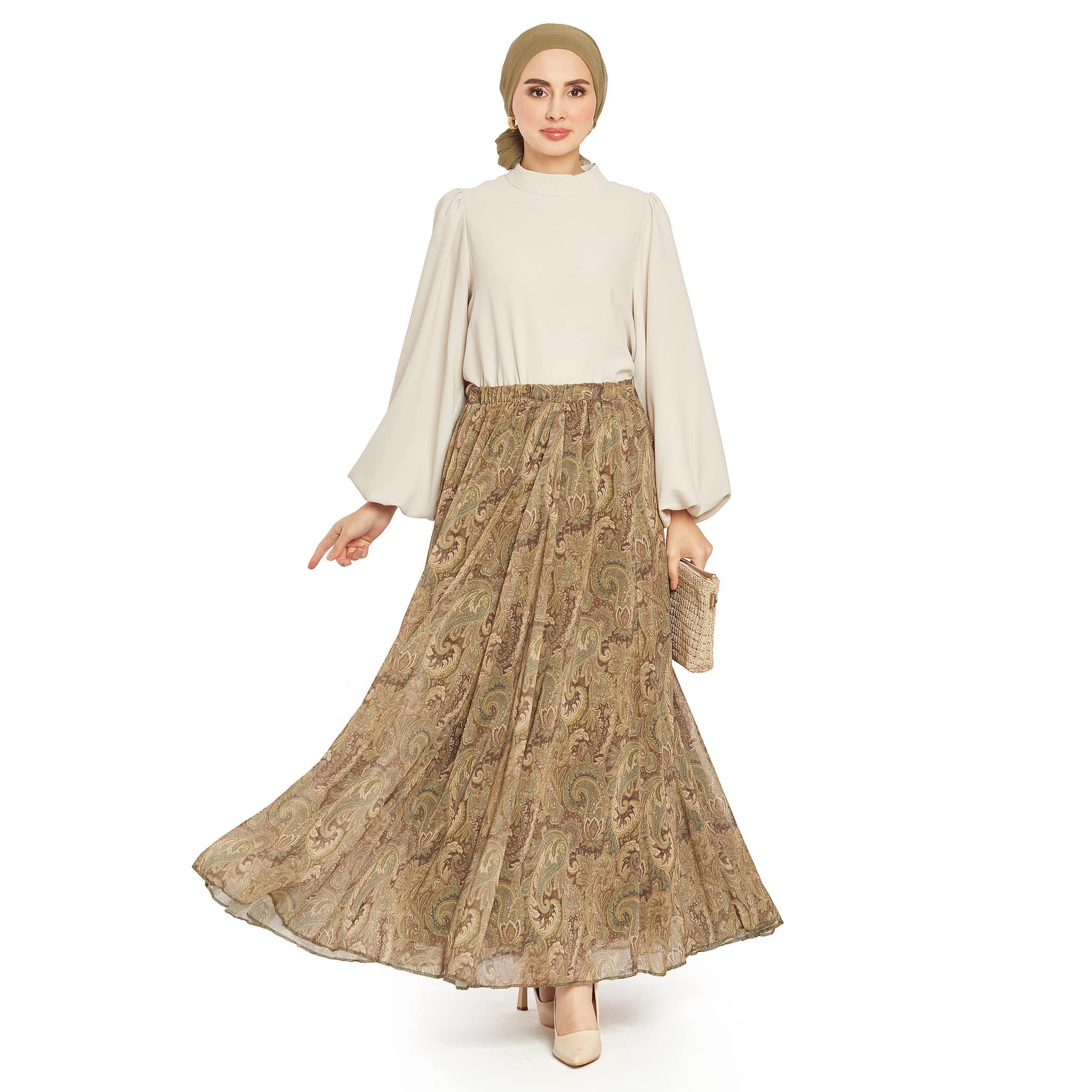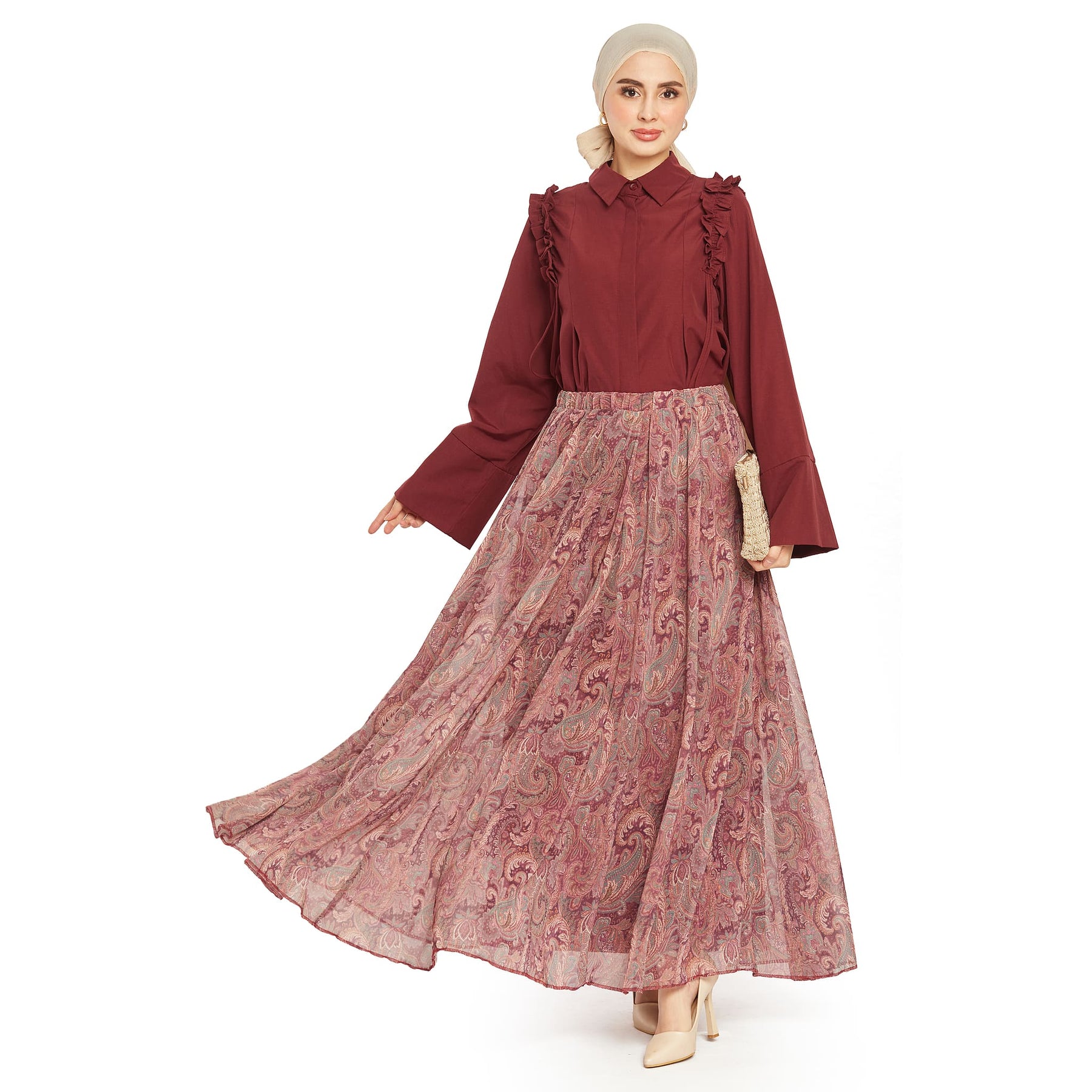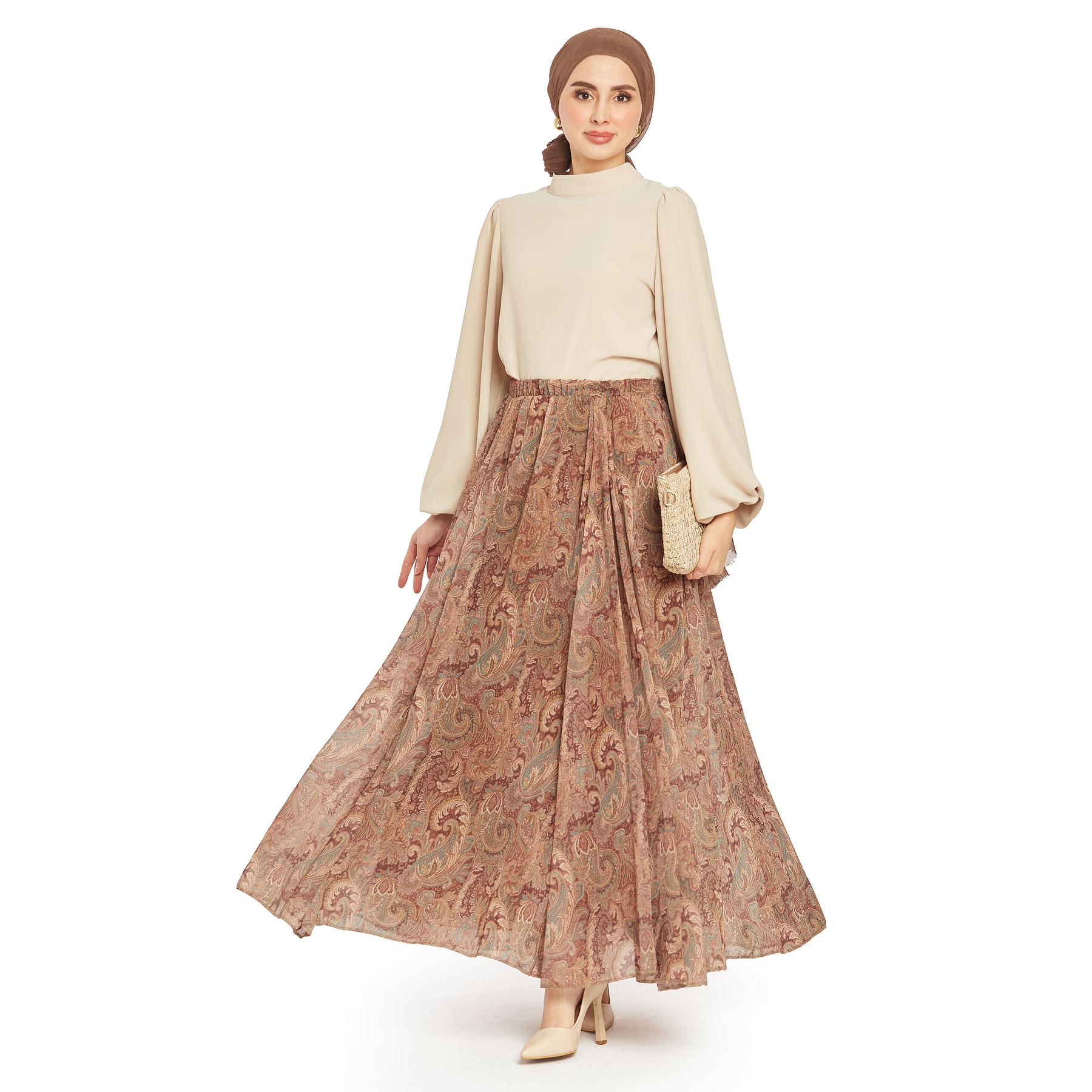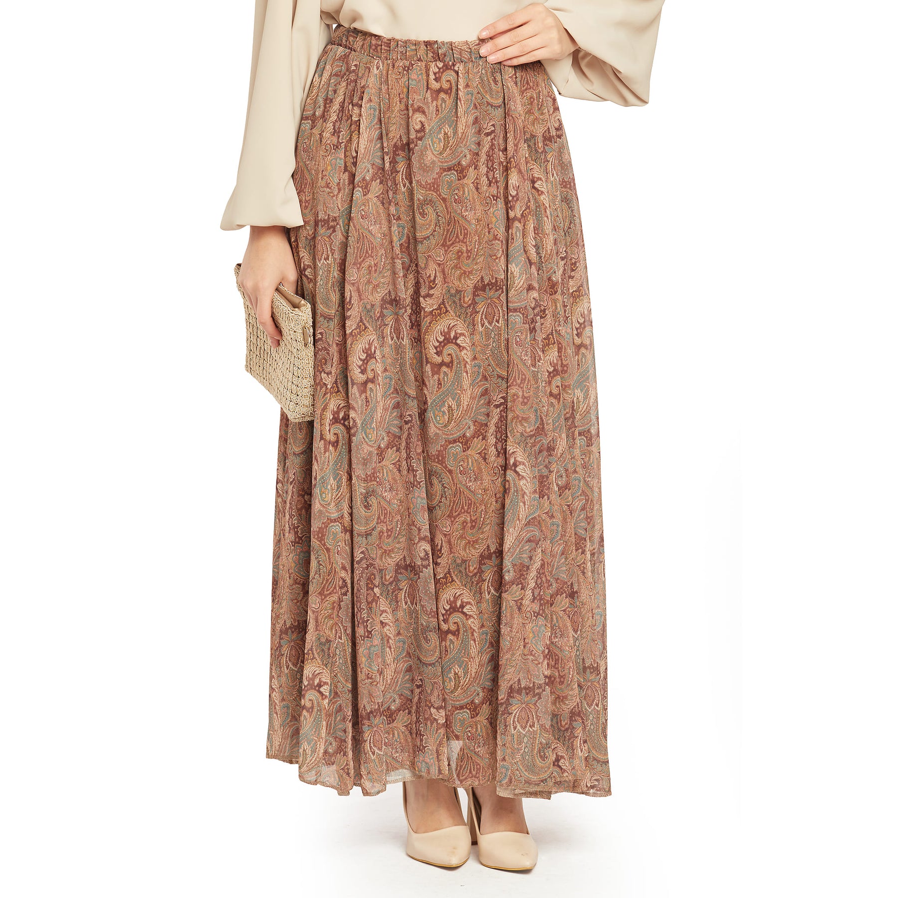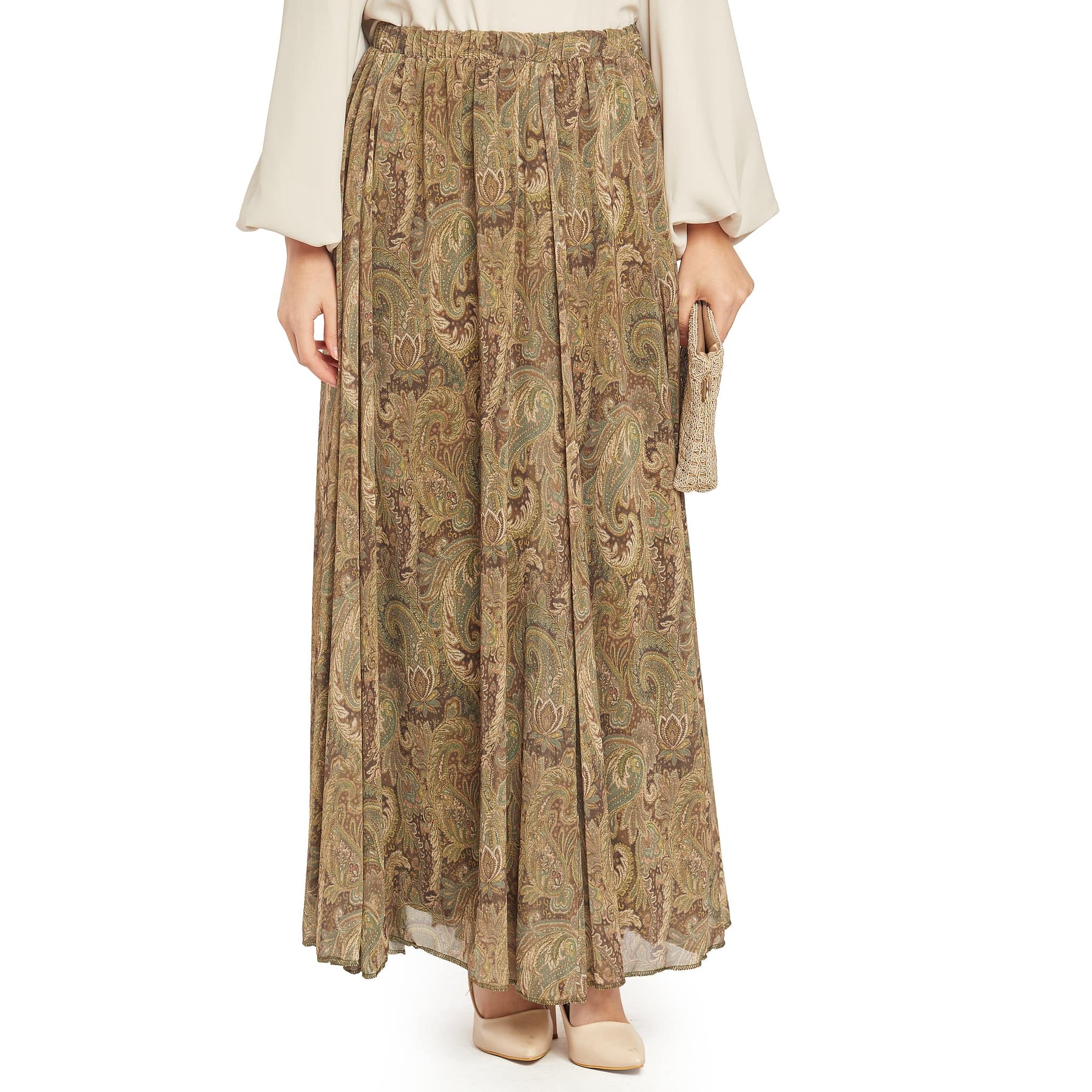 Model: Patterned pleated chiffon skirt