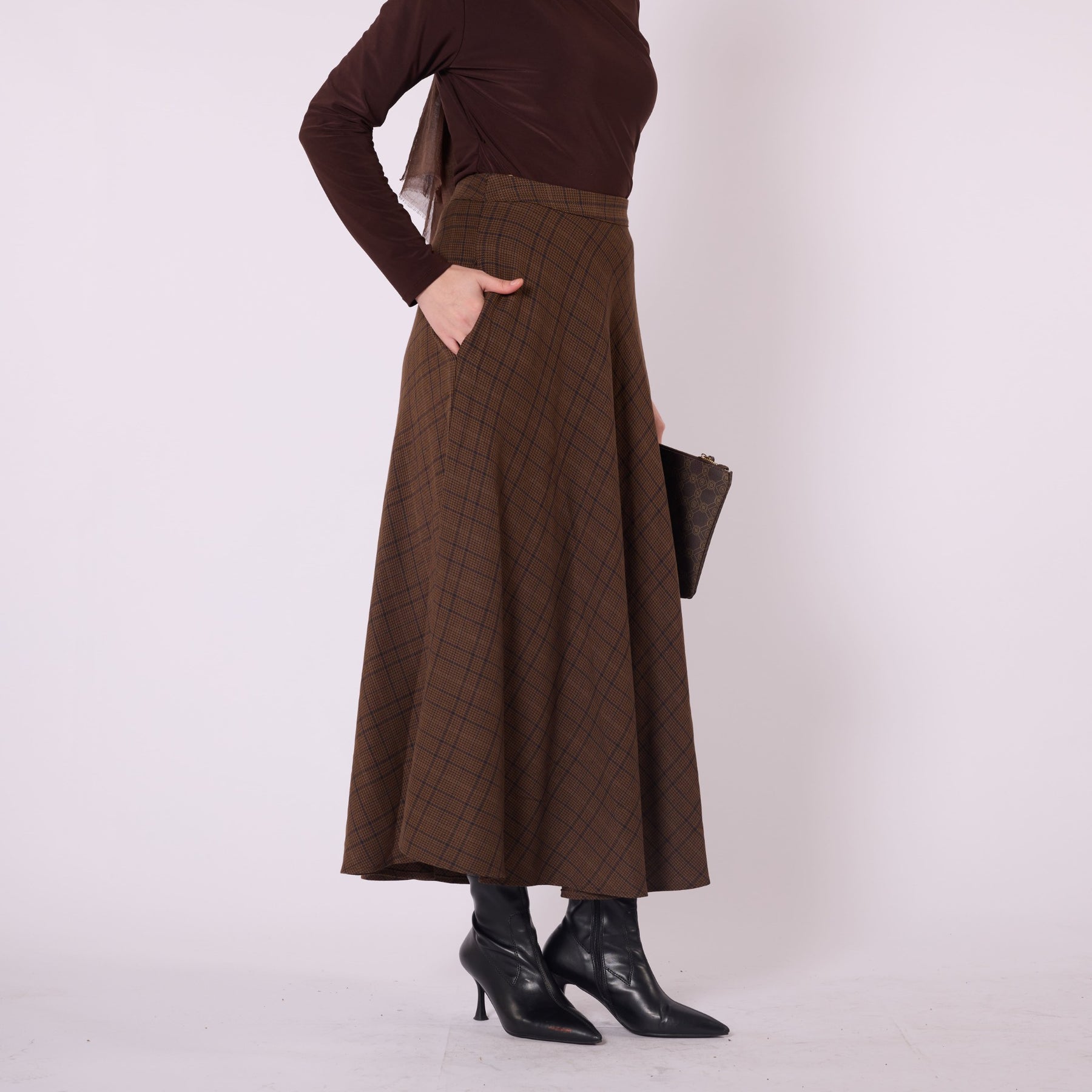 Blending a classic plaid pattern with a sleek long silhouette, this skirt offers both style and comfort for everyday wear and office outfits. The side zipper provides easy dressing, while two functional pockets enhance practicality. Its unlined construction keeps it light and comfortable, ideal for creating warm and stylish winter looks. Pair it effortlessly with knitwear, shirts or long cardigans for a polished, timeless outfit.