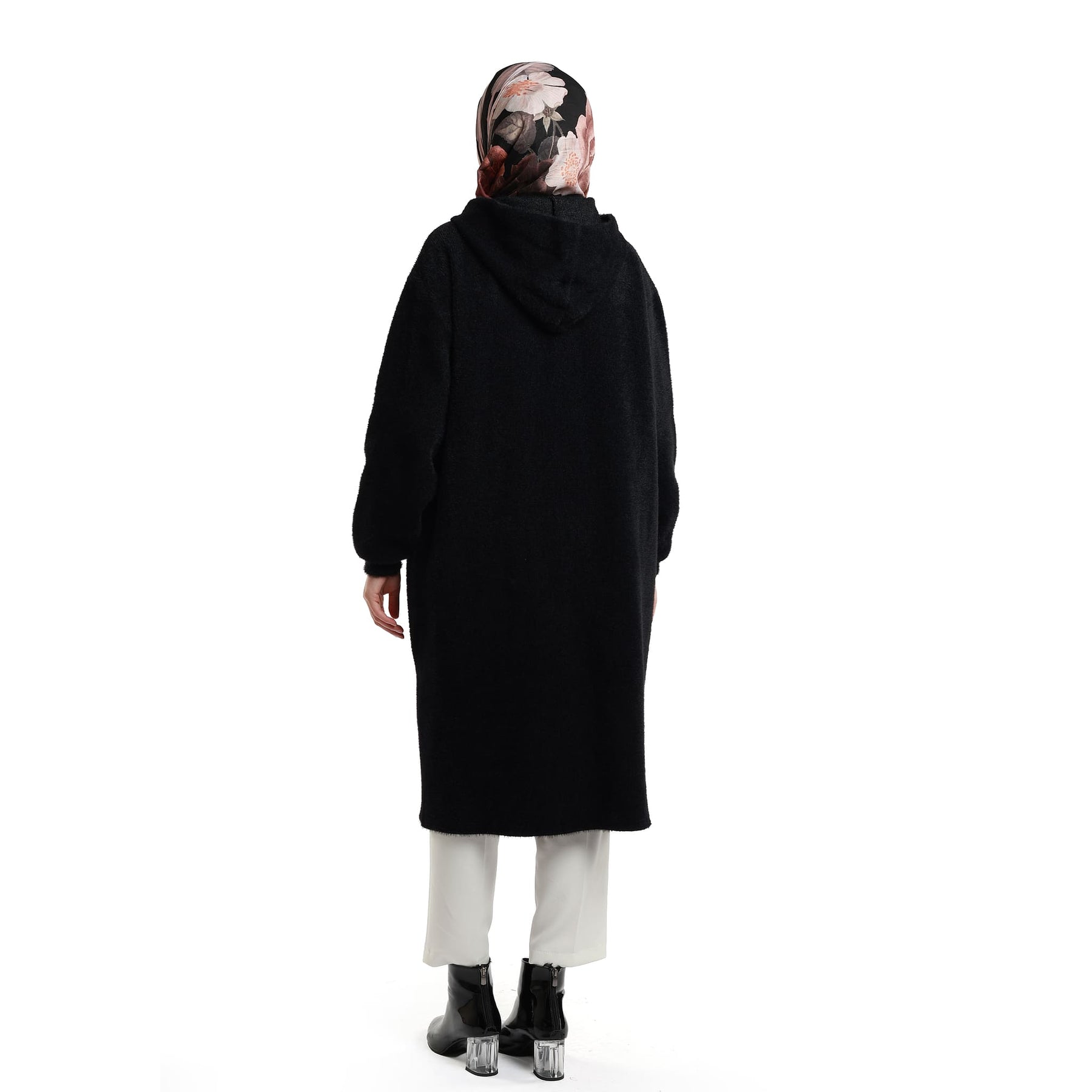 The hooded thick cardigan combines warmth and comfort, making it perfect for daily wear. Its fluffy texture provides a soft, cozy feel, while the two front pockets add practicality and style.