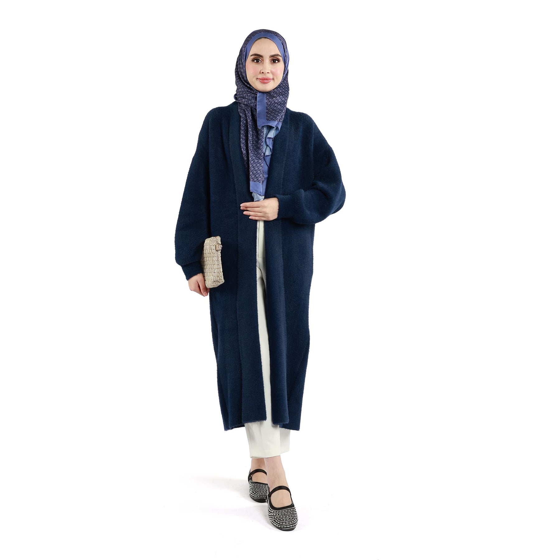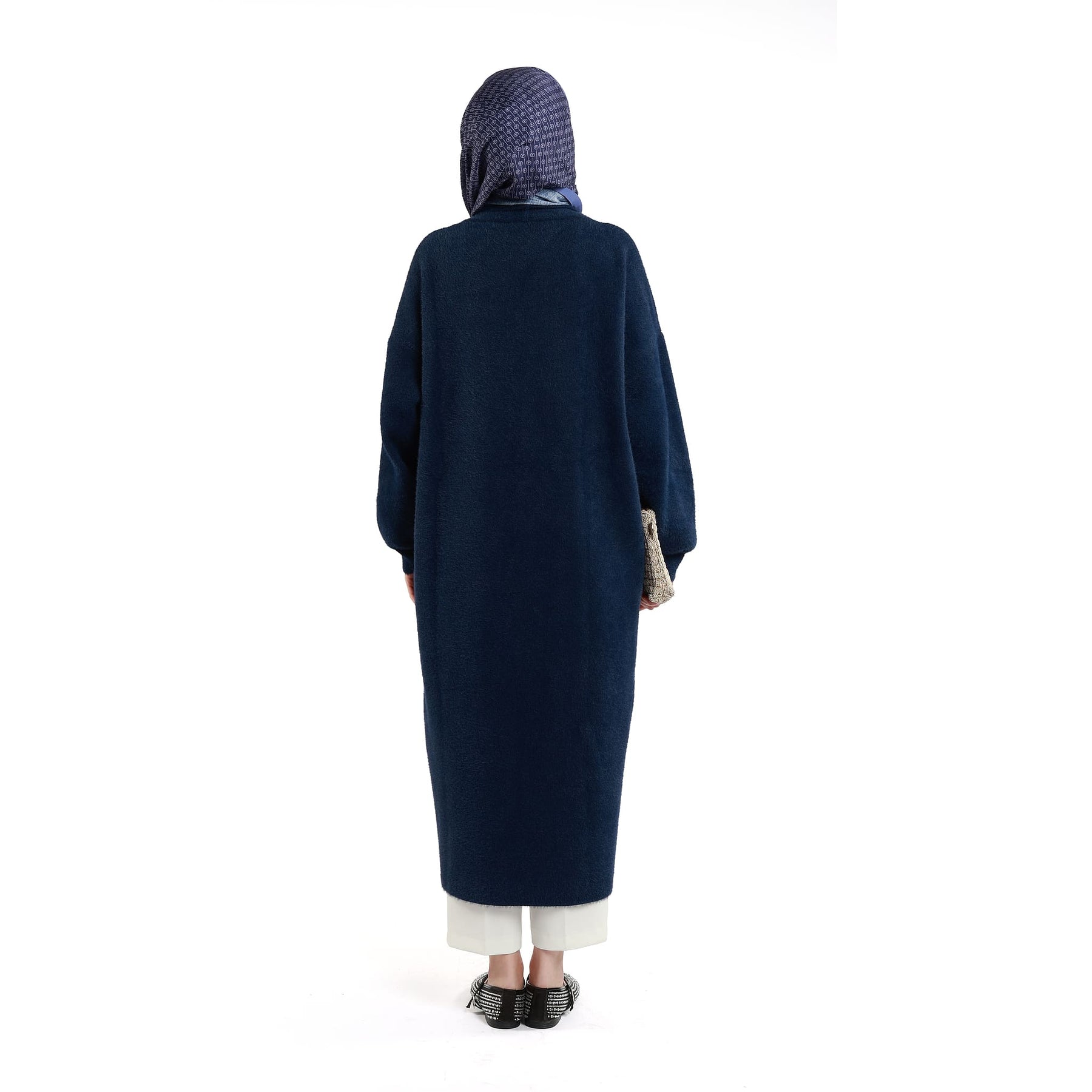 This long knit tunic with a shawl collar offers both warmth and elegance for the colder season. Available in burgundy, grey, black, khaki, navy, brown, plum, stone and taupe, it is easy to style for everyday wear. The buttonless design and relaxed fit ensure day-long comfort.