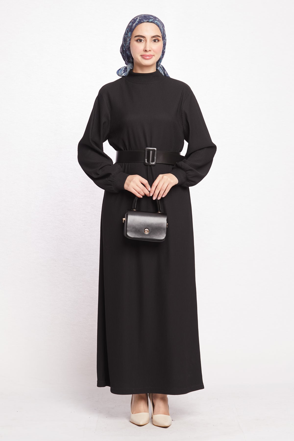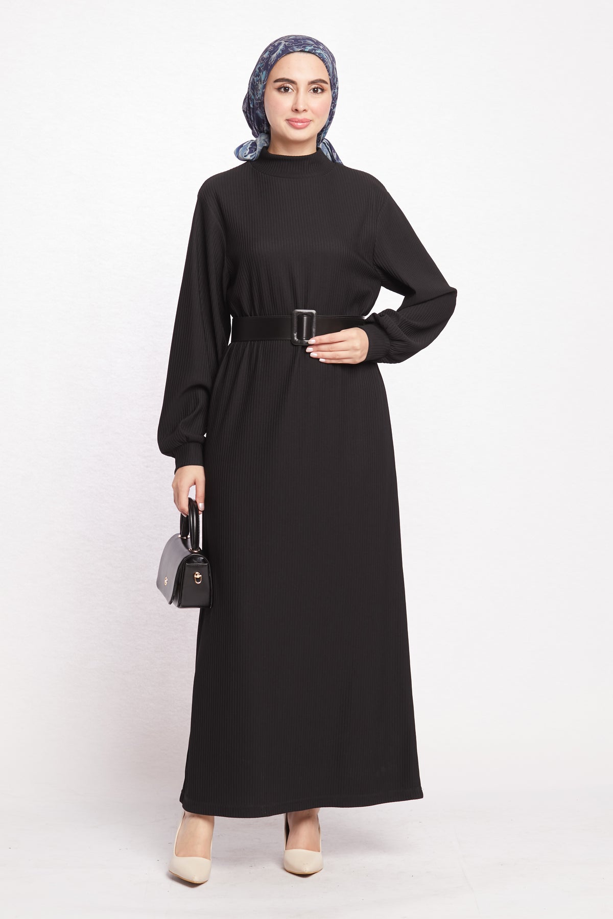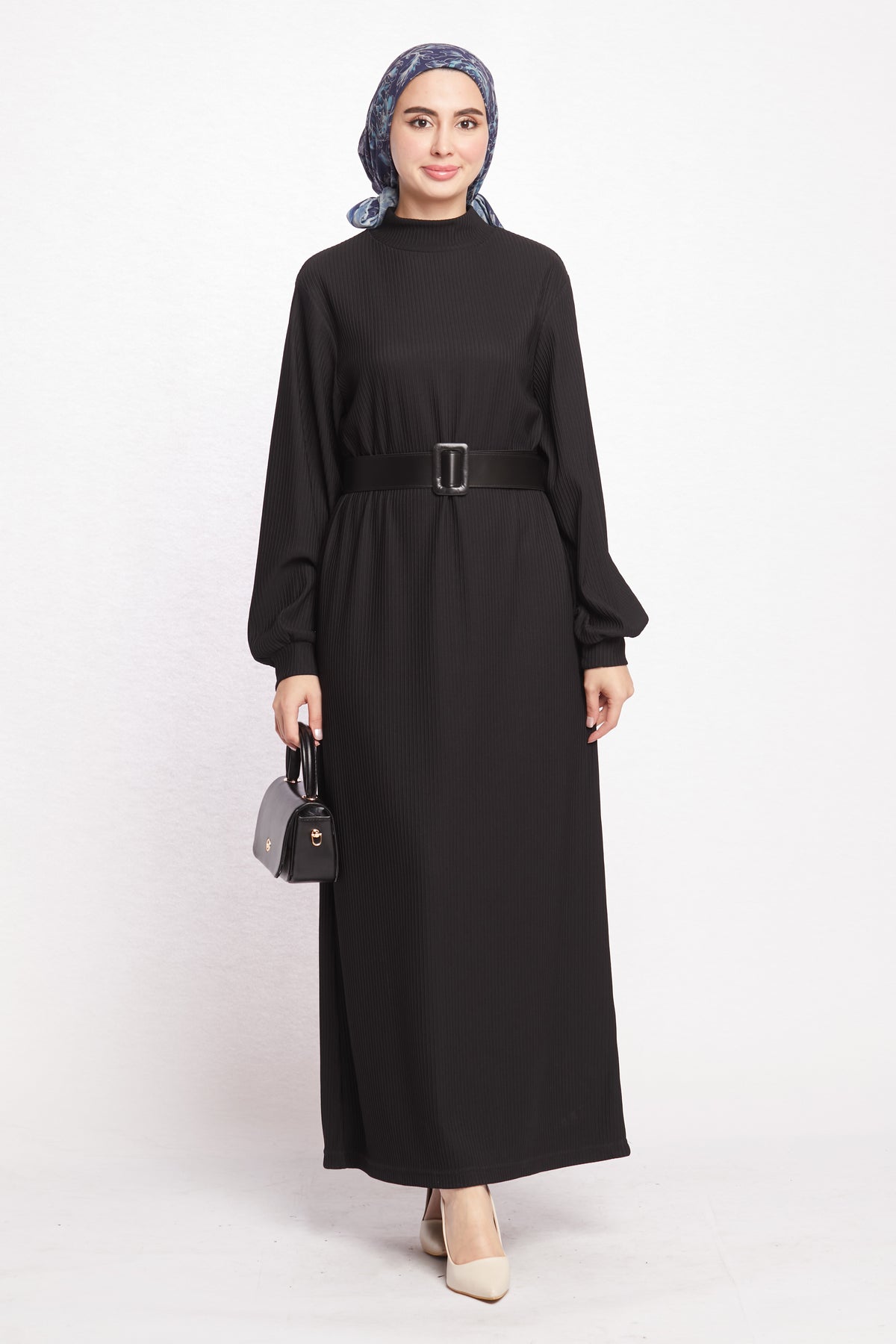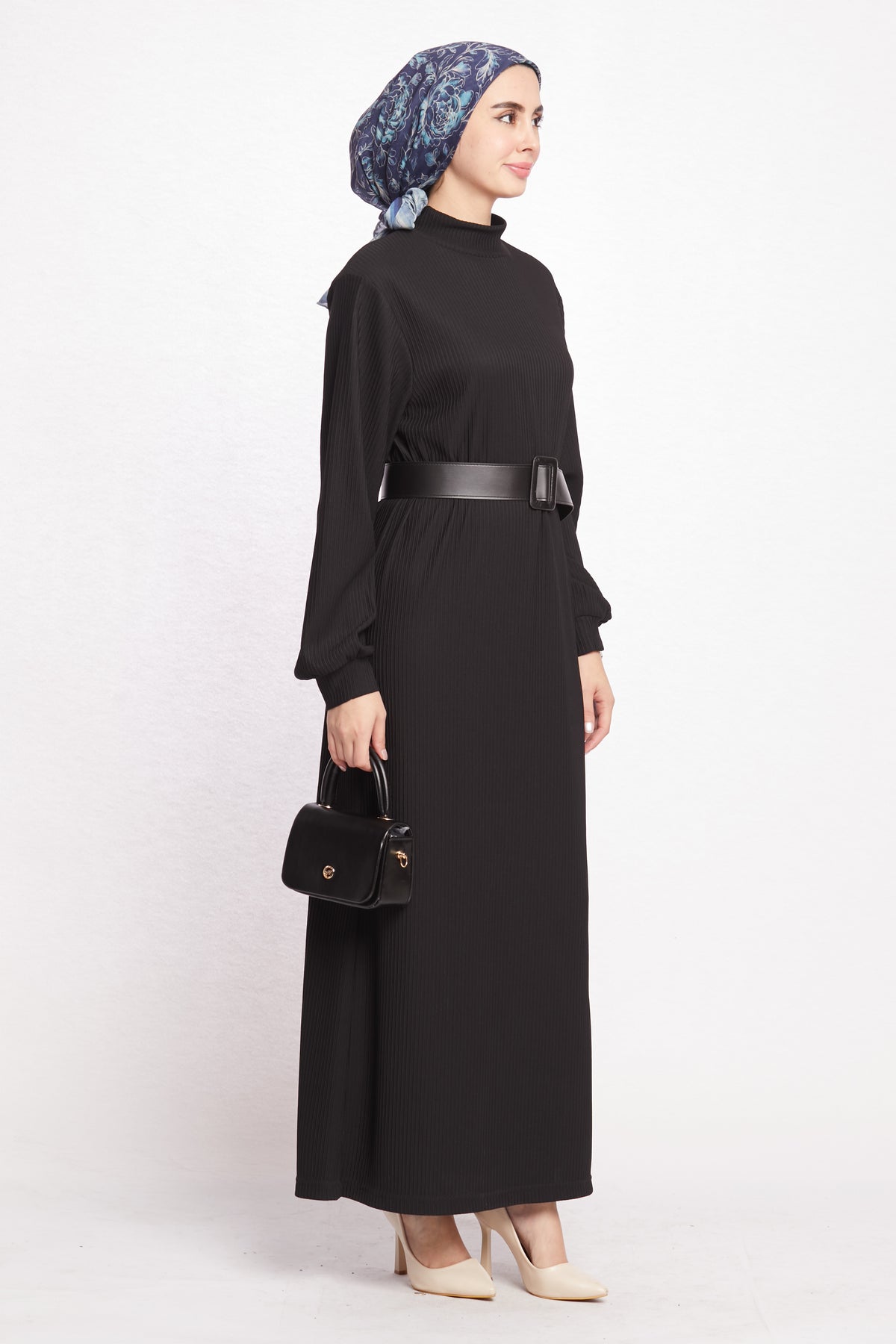 Providing both a stylish and comfortable look, the long turtleneck dress stands out in every environment, from daily combinations to special meetings, with its elegant look. Thanks to its long sleeves and turtleneck detail, it keeps you warm in cool weather, while the leather belt detail adds a modern and stylish atmosphere to the dress.