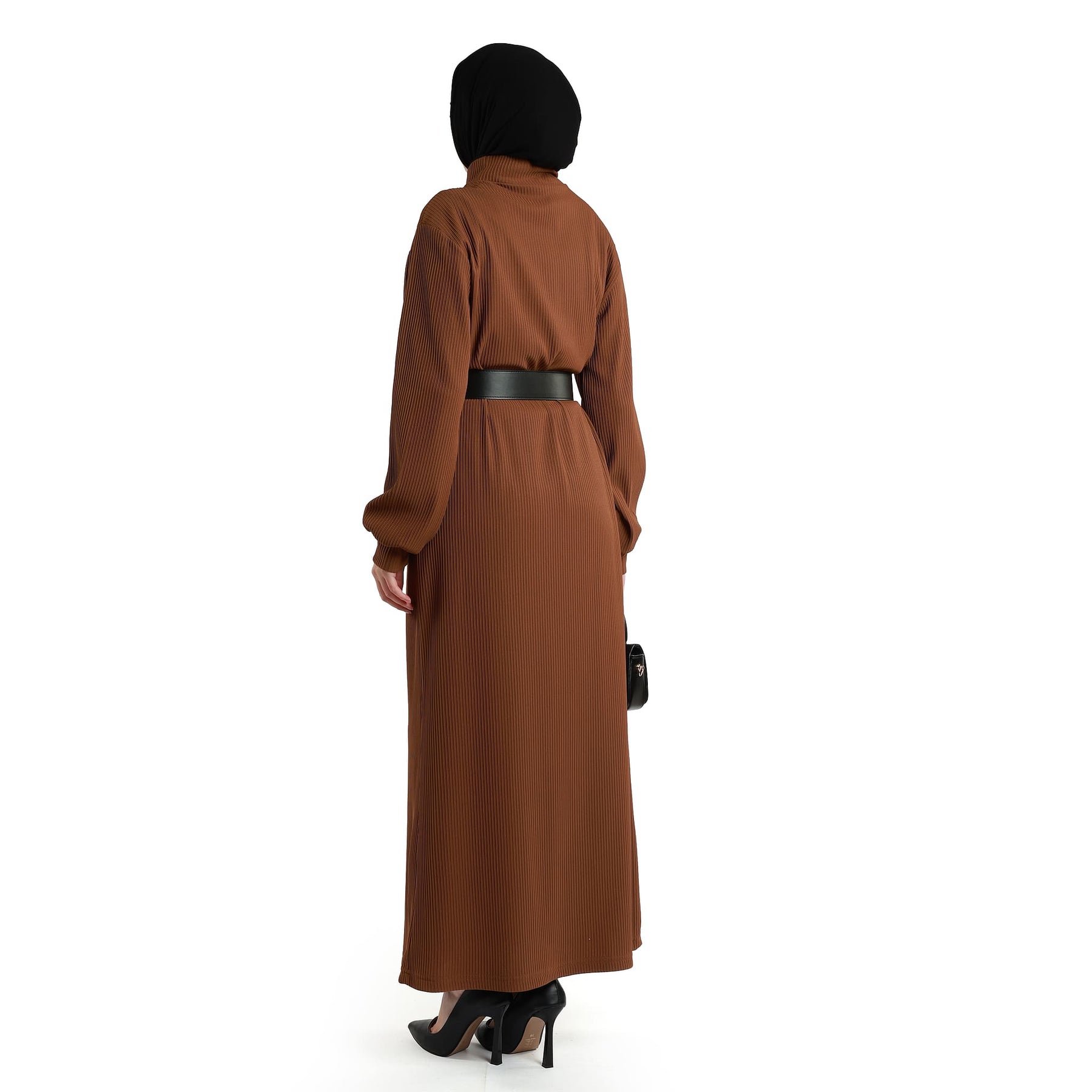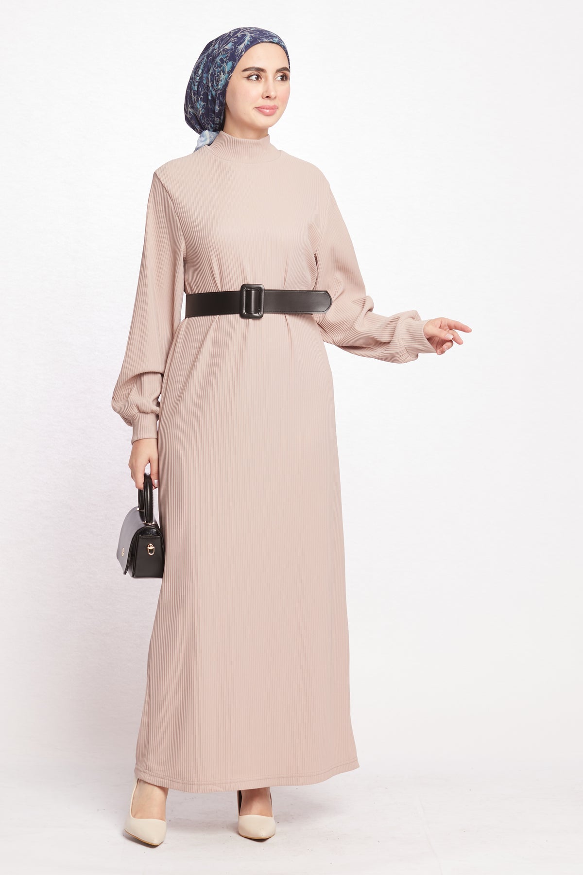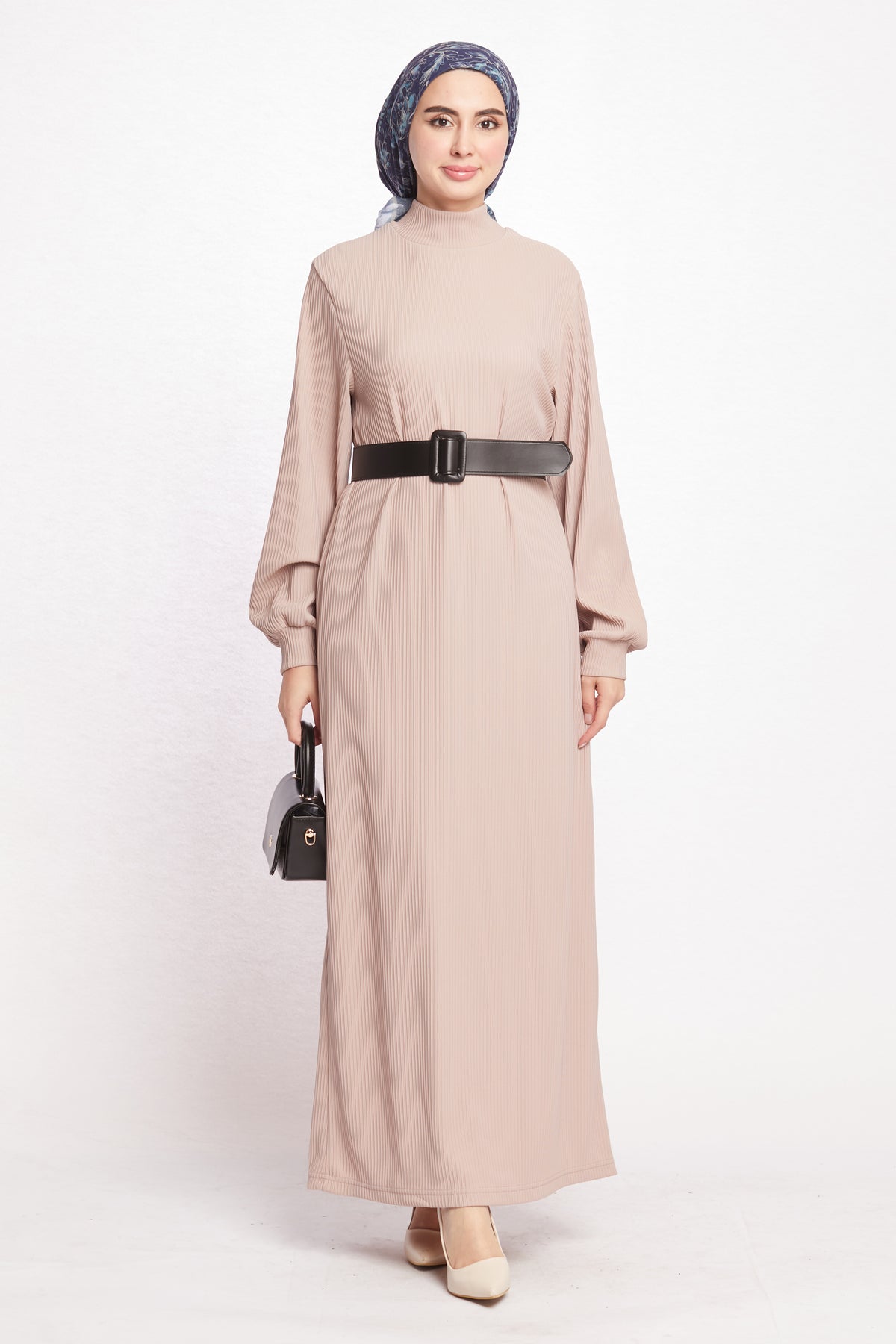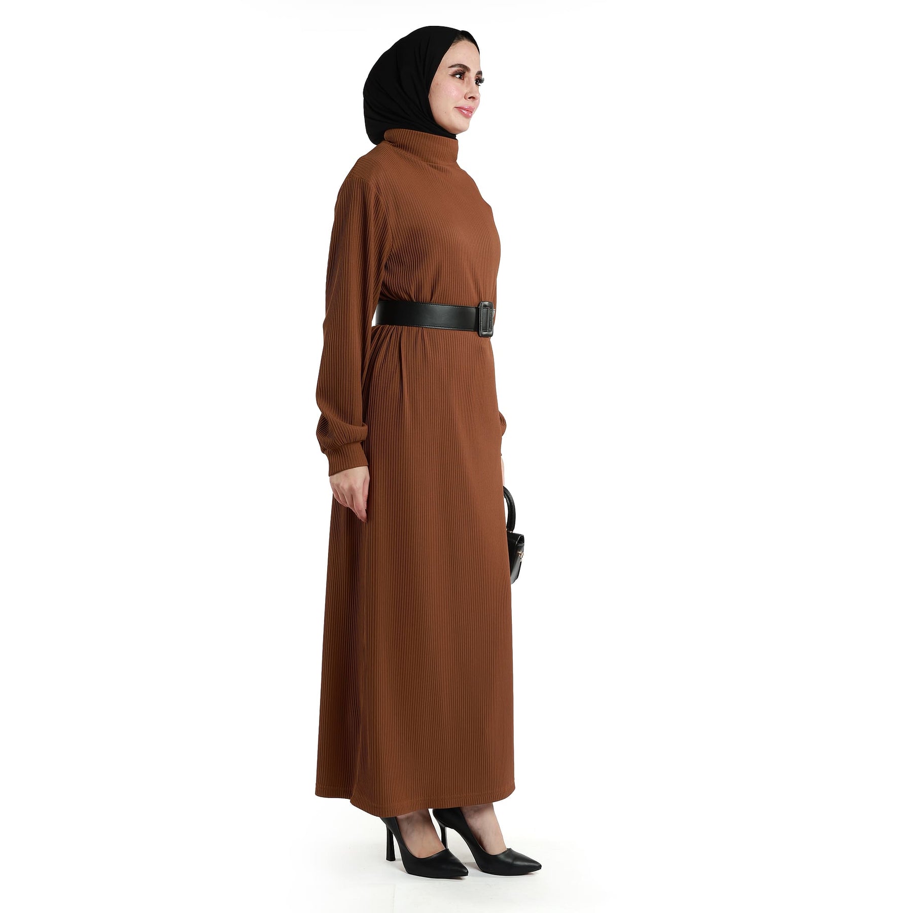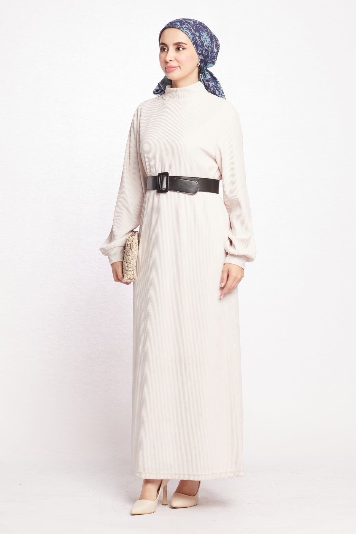 Providing both a stylish and comfortable look, the long turtleneck dress stands out in every environment, from daily combinations to special meetings, with its elegant look. Thanks to its long sleeves and turtleneck detail, it keeps you warm in cool weather, while the leather belt detail adds a modern and stylish atmosphere to the dress.