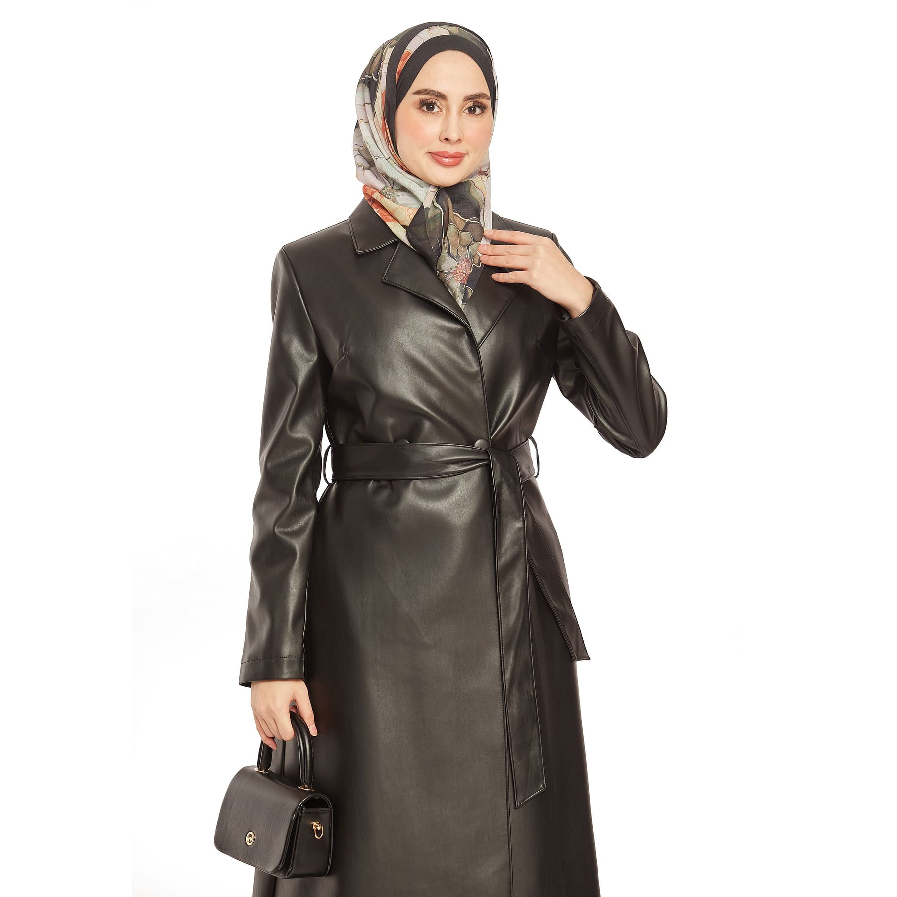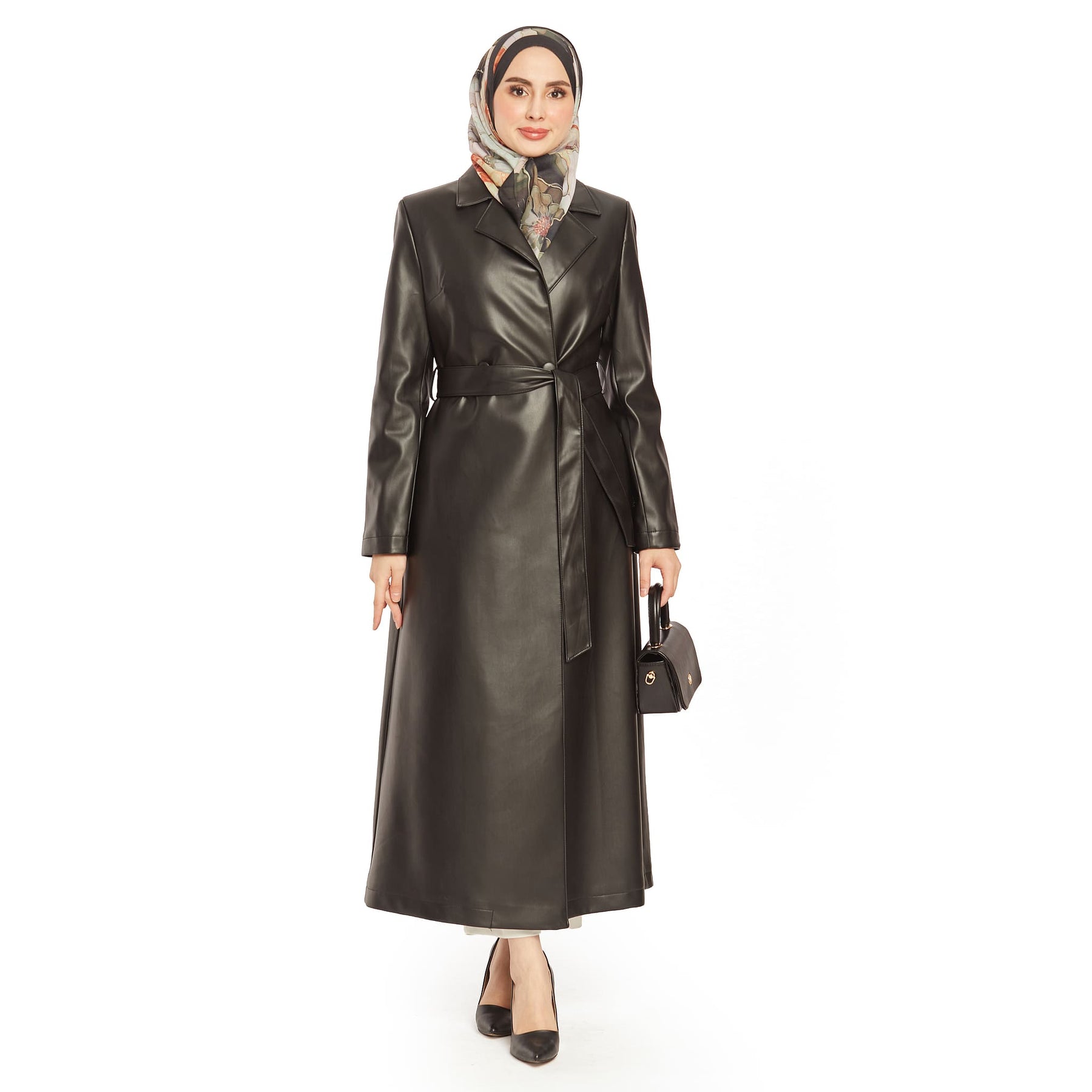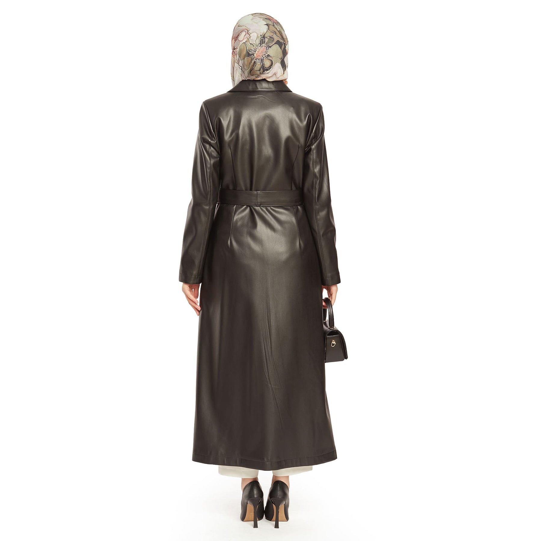 Model: Double-breasted leather trench coat