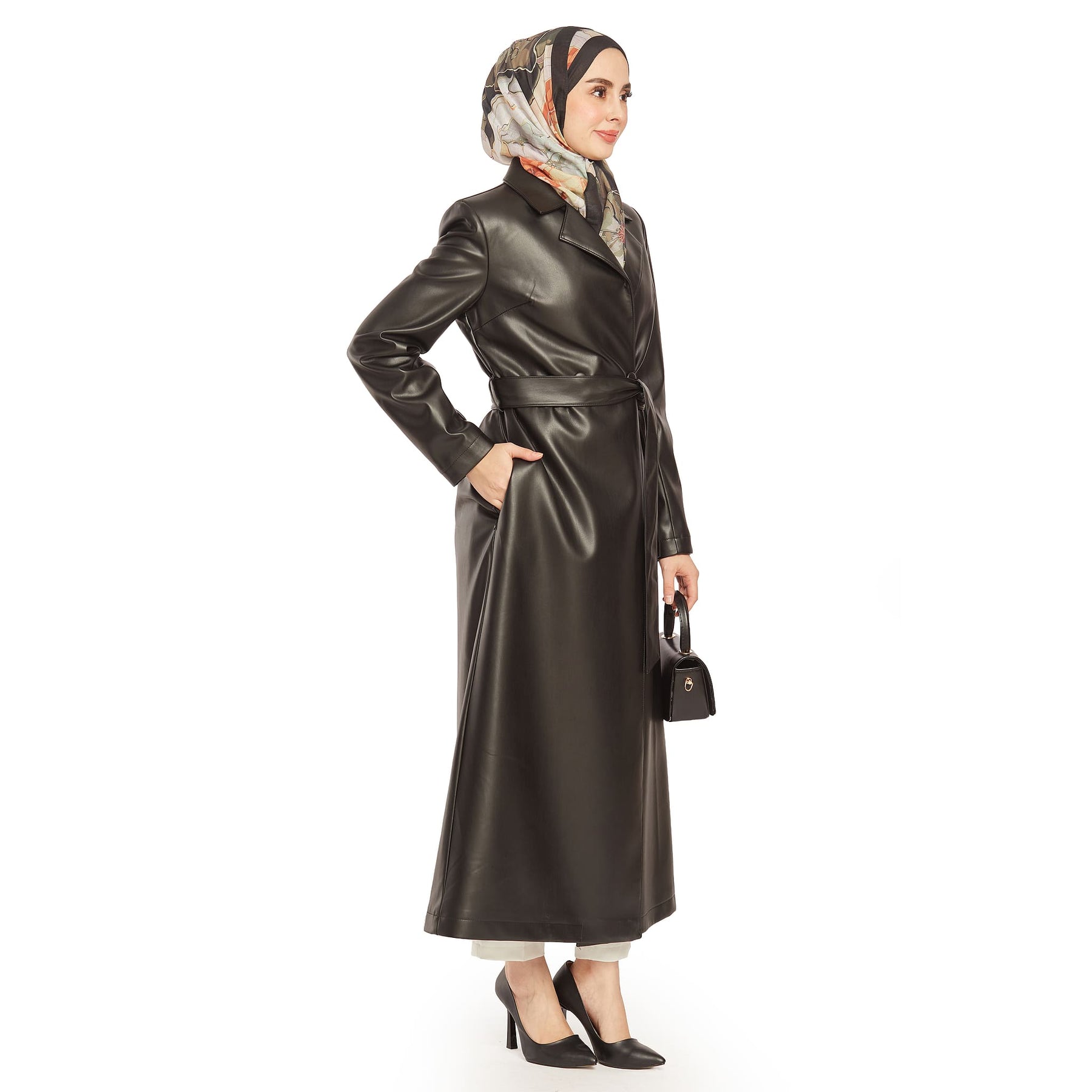 The double-breasted leather trench coat stands out with its elegant and modern design, ideal for daily wear or special outfits. Made from 100% faux leather, it offers a sophisticated and polished look. Its double-breasted design gives a classic trench coat style a contemporary twist.