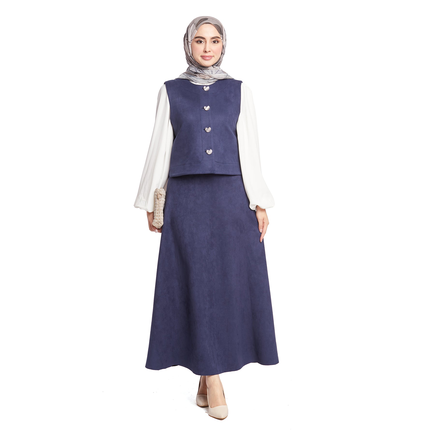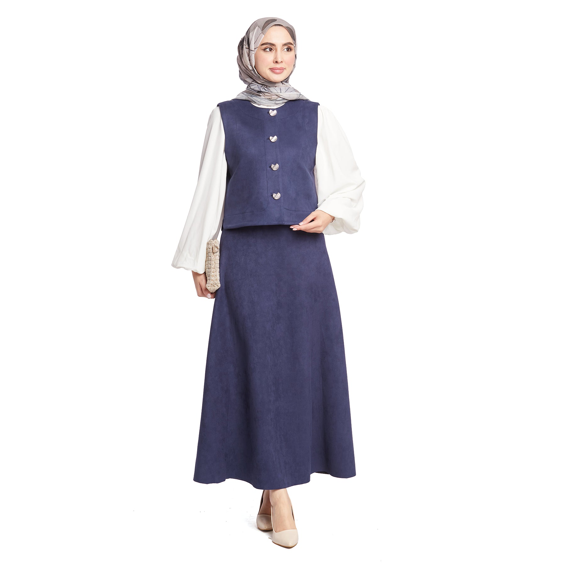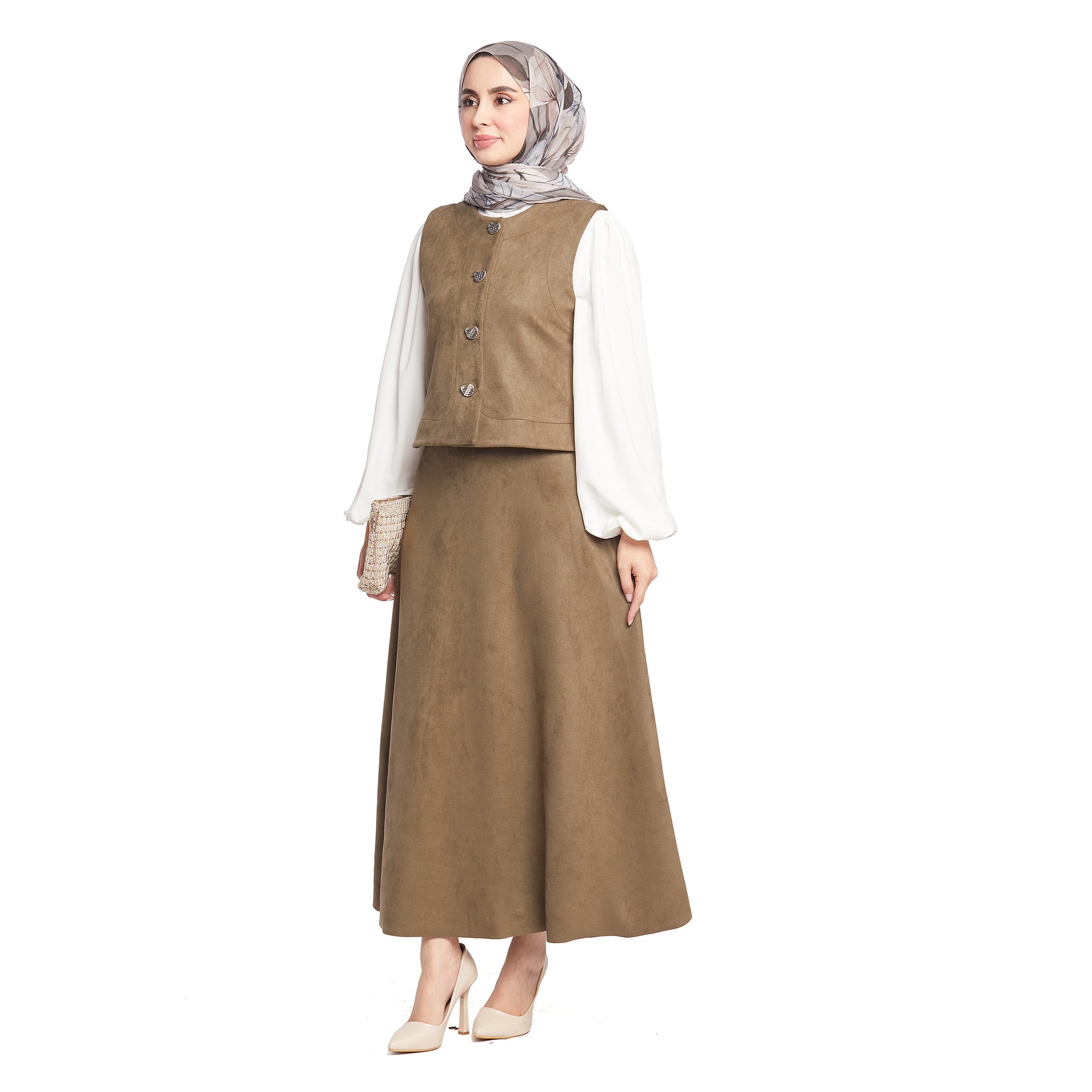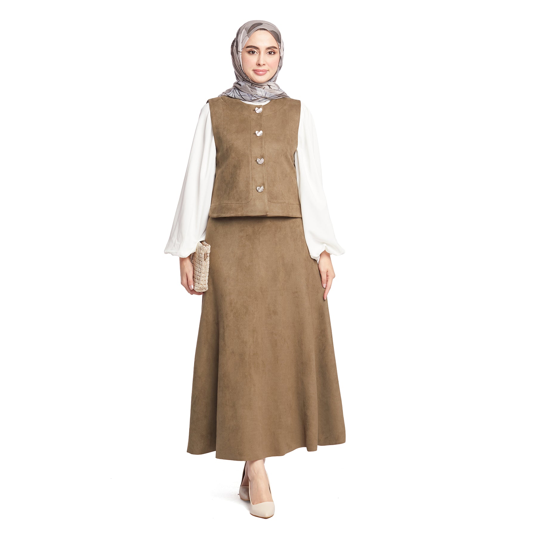 Model: Suede fabric skirted set