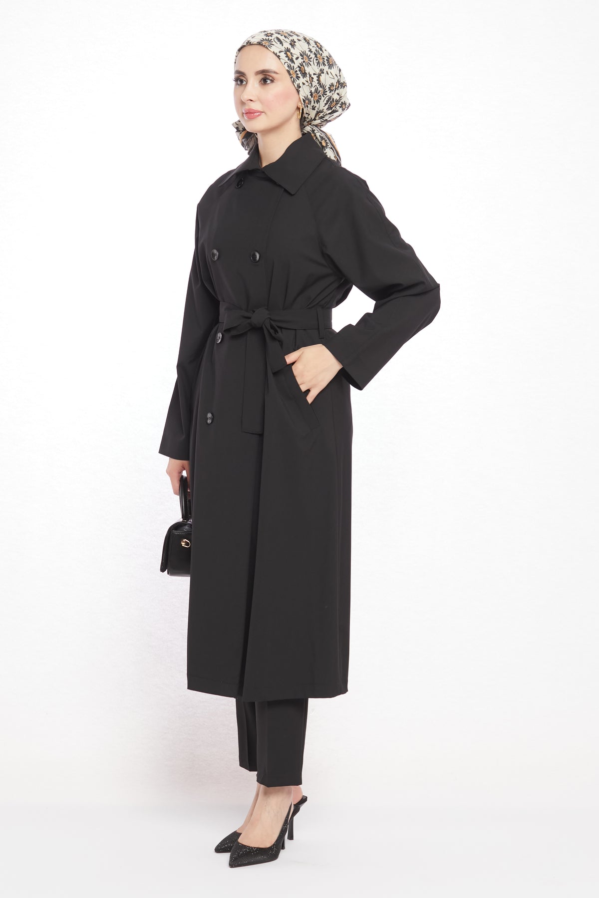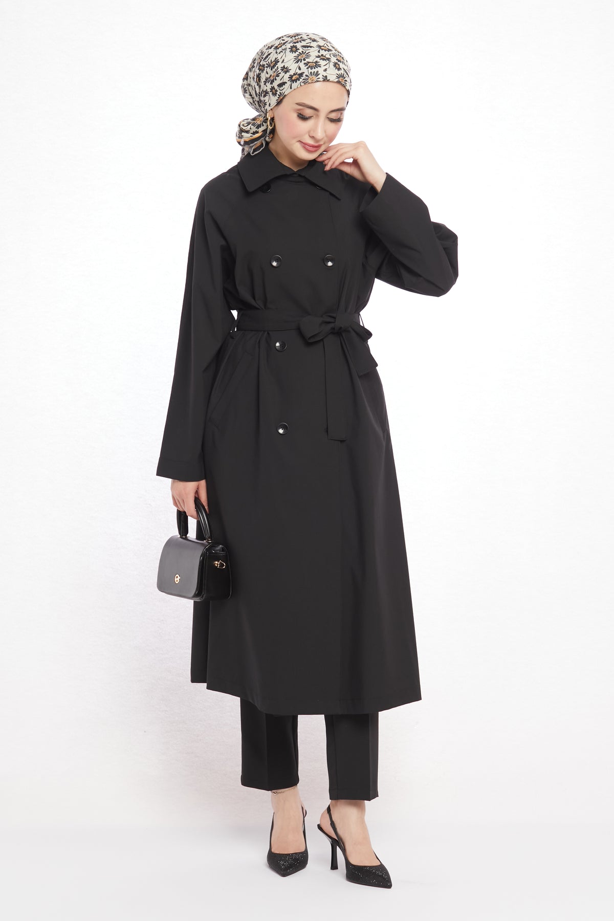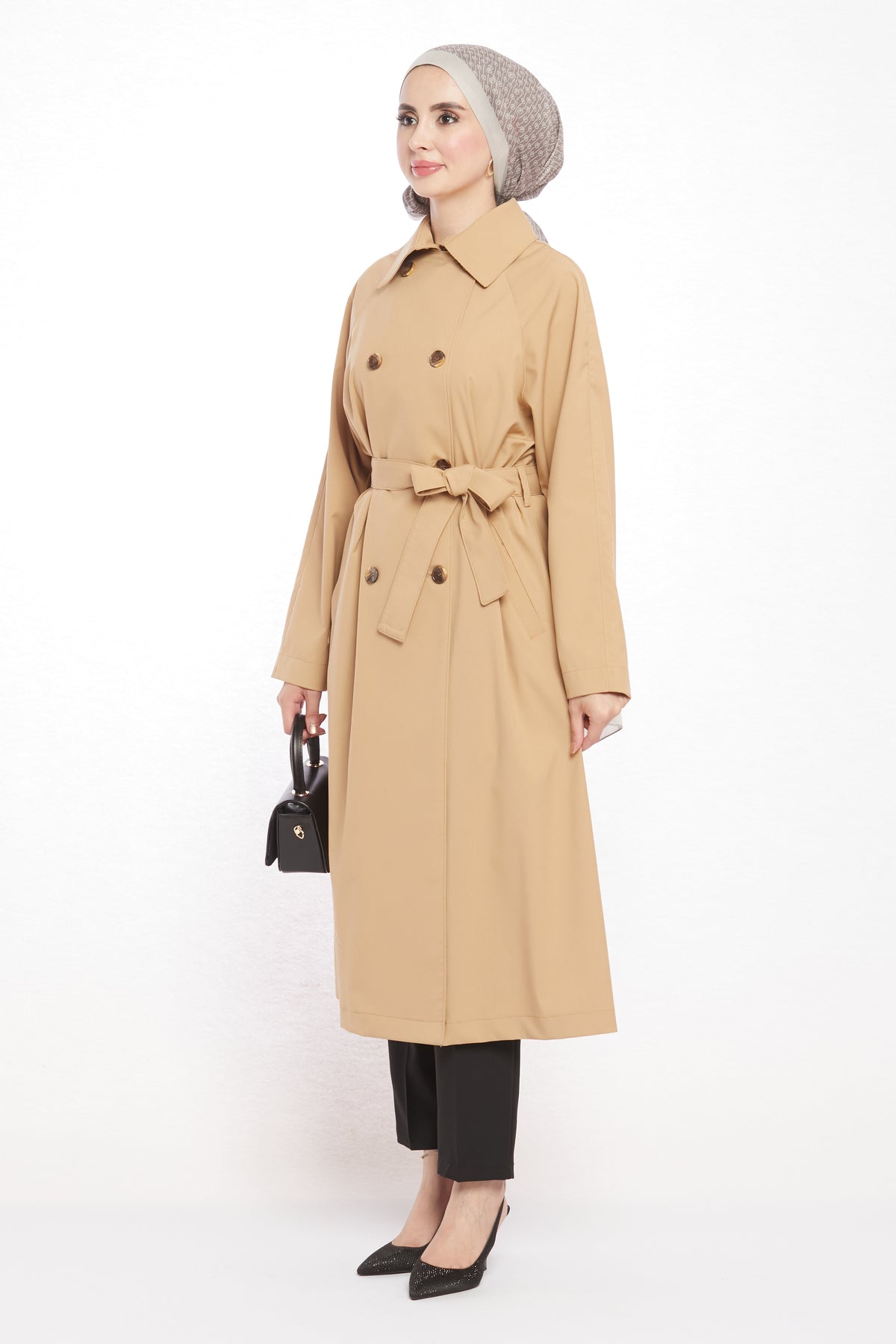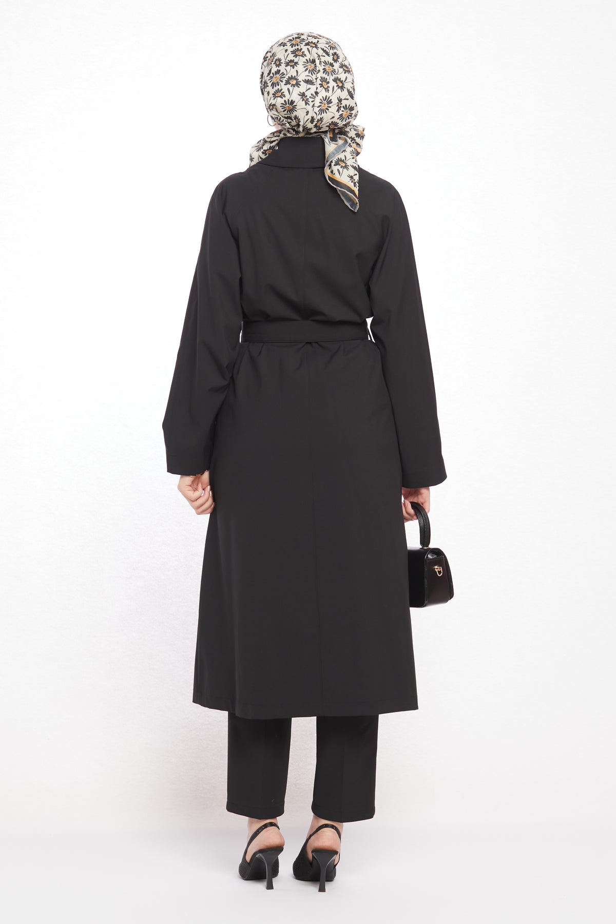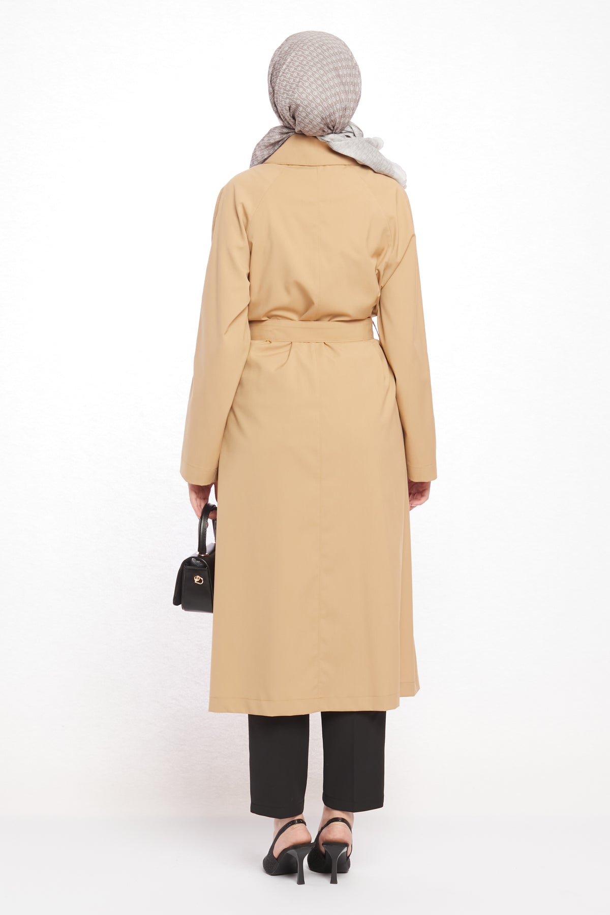 Crafted from a blend of 74% polyester, 23% viscose, and 4% elastane, it ensures durability, comfort, and flexibility. Available in beige, stone, black, mink, and blue, this trench coat brings a modern edge to your wardrobe.