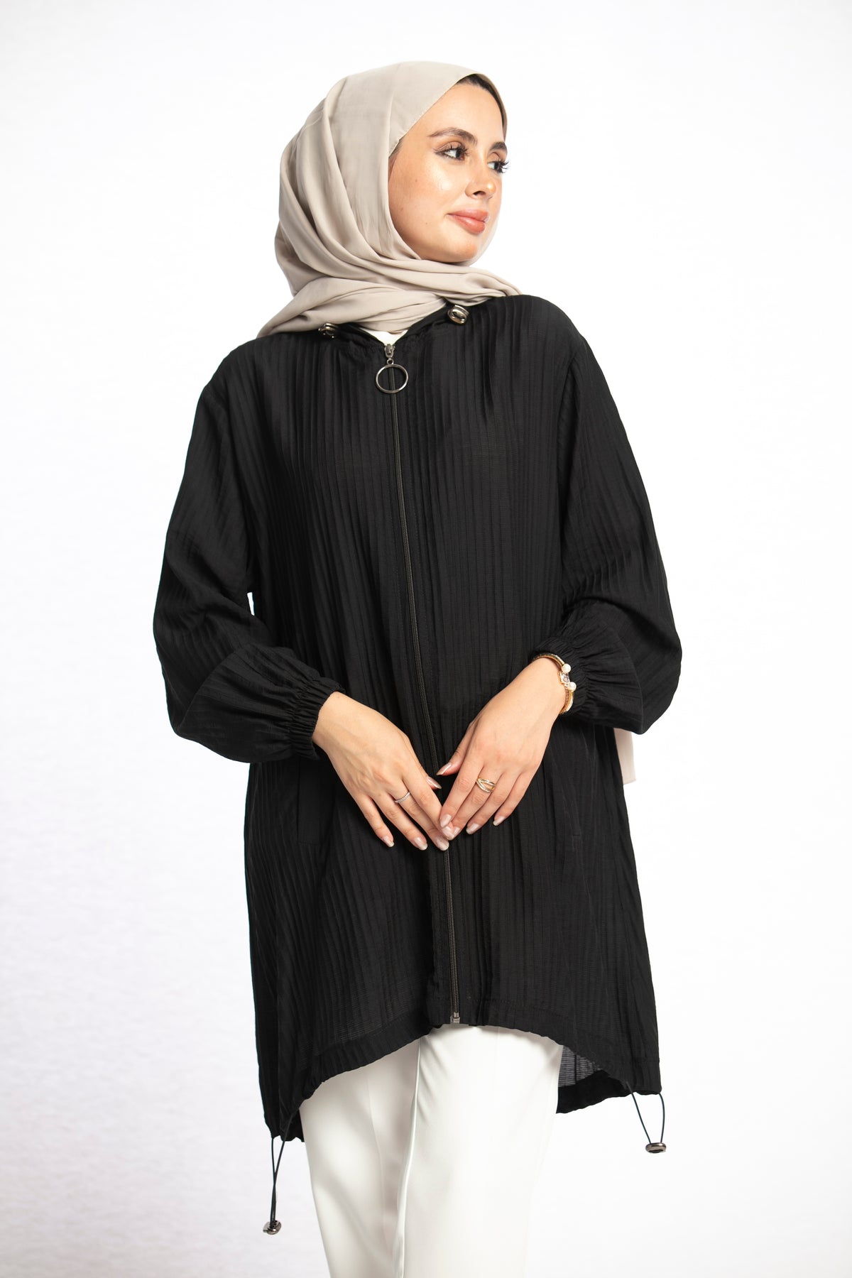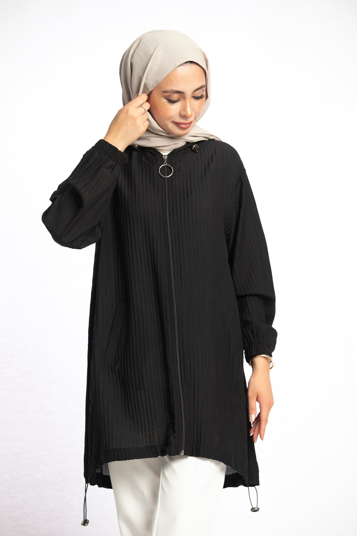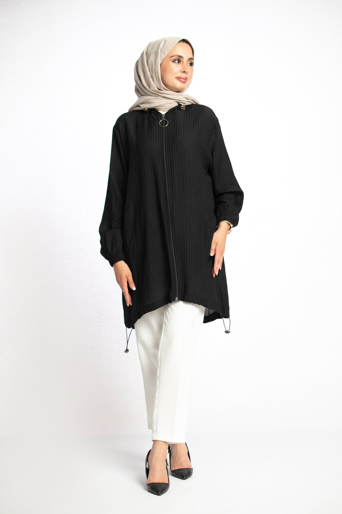 Model: Hooded zippered tunic