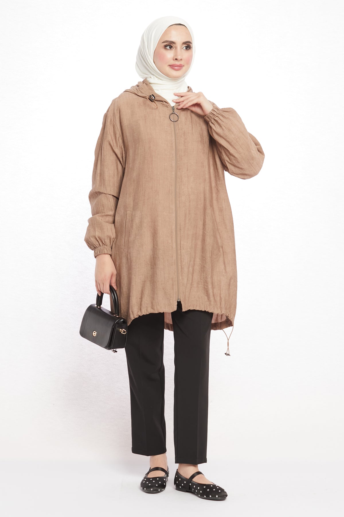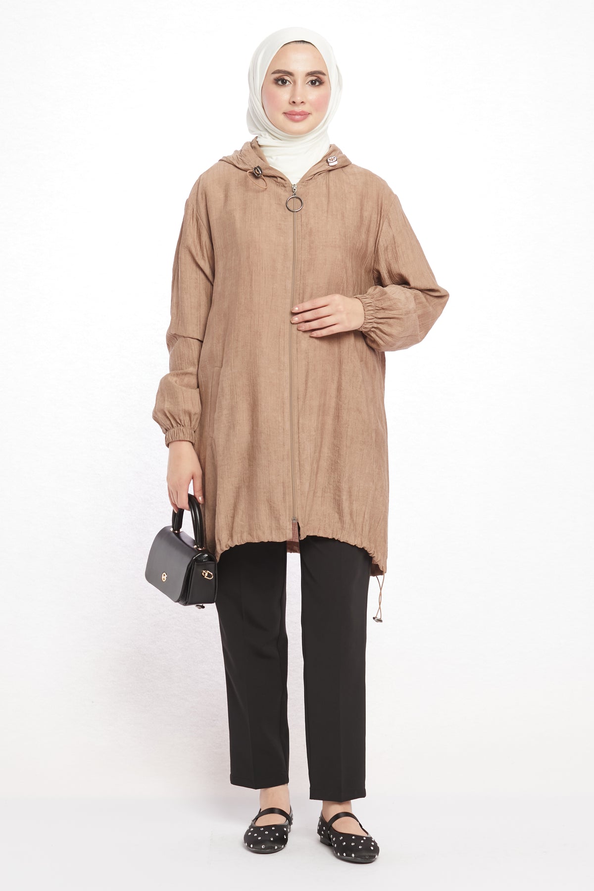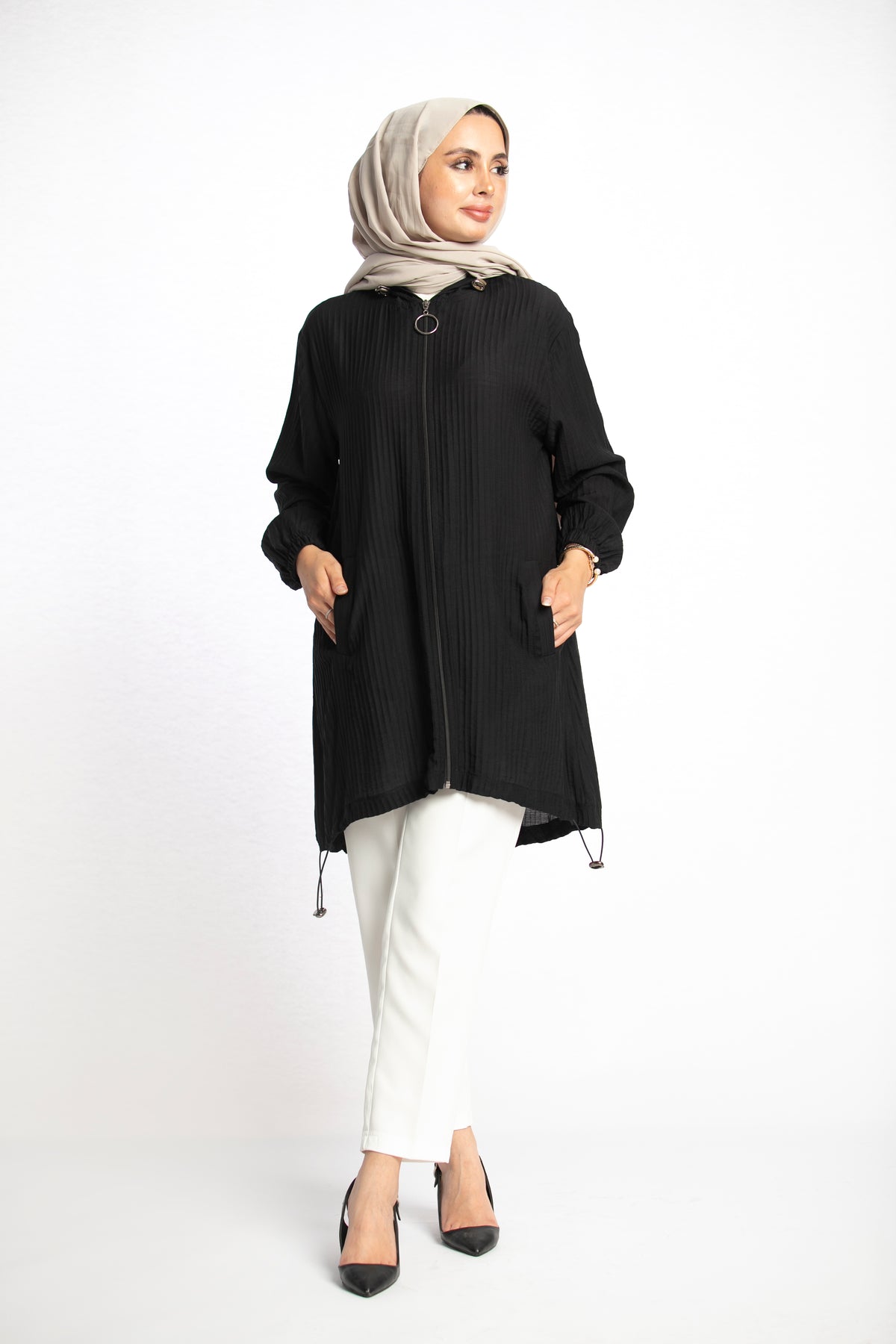 Model: Hooded zippered tunic