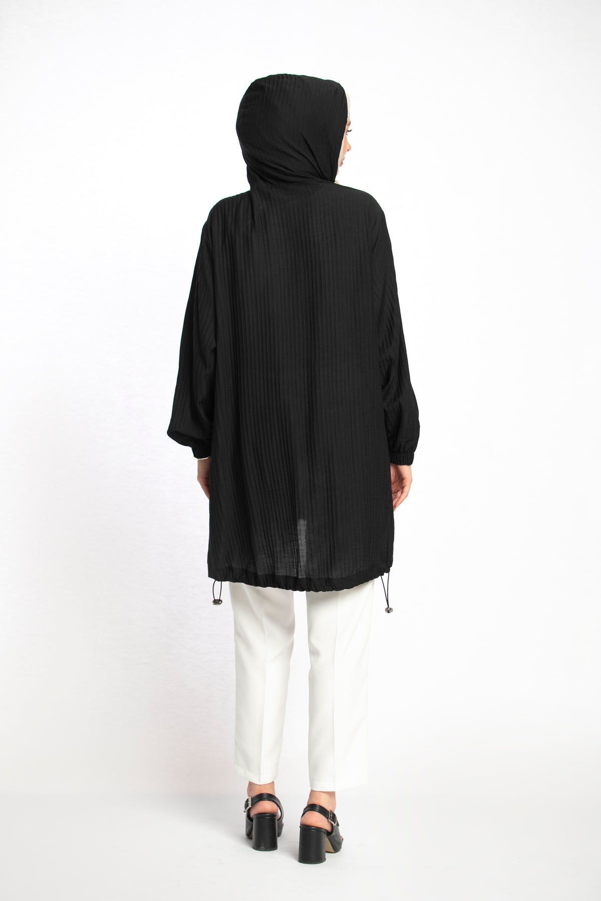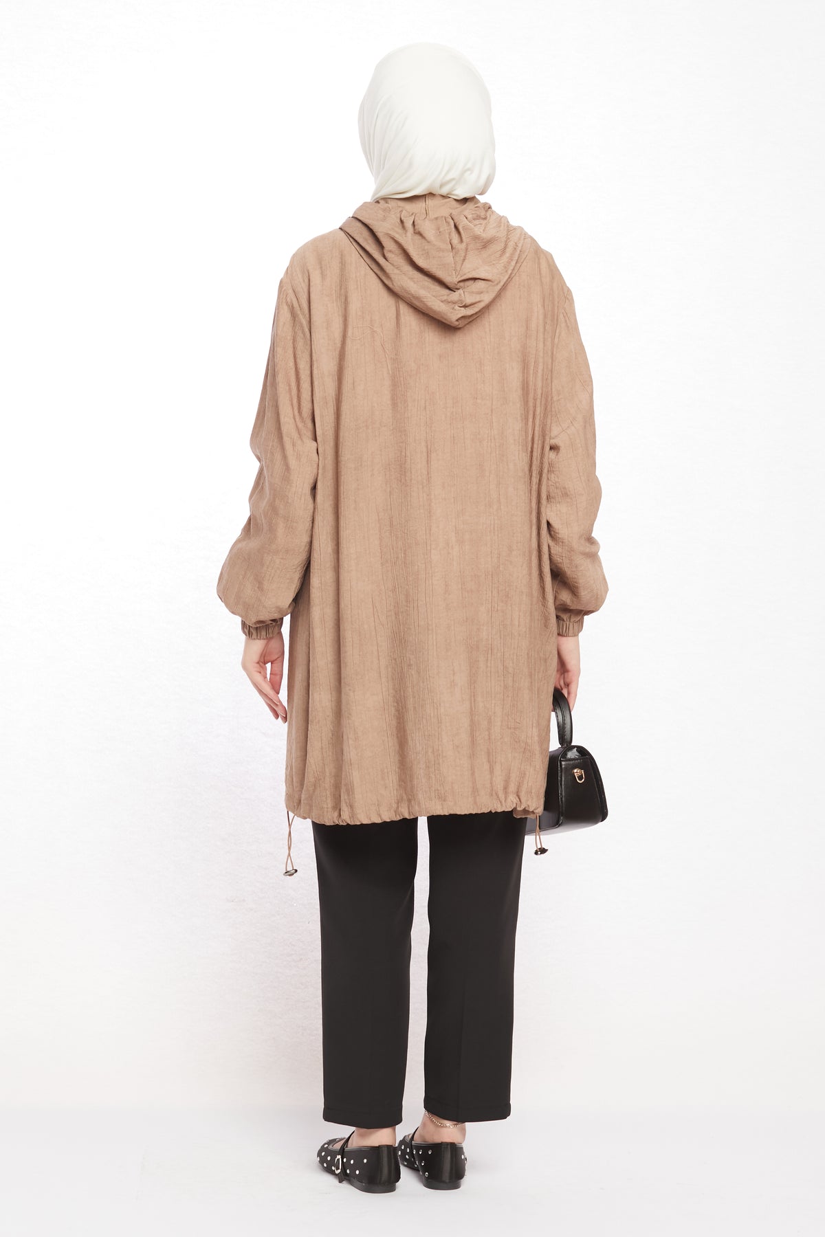 The hooded zippered tunic combines sporty and modern design, making it a versatile choice for everyday wear. Its front zipper offers practicality, while the hood detail adds a dynamic touch. The drawstring details on the hood and hemline give the tunic a lively finish, ensuring both comfort and style.