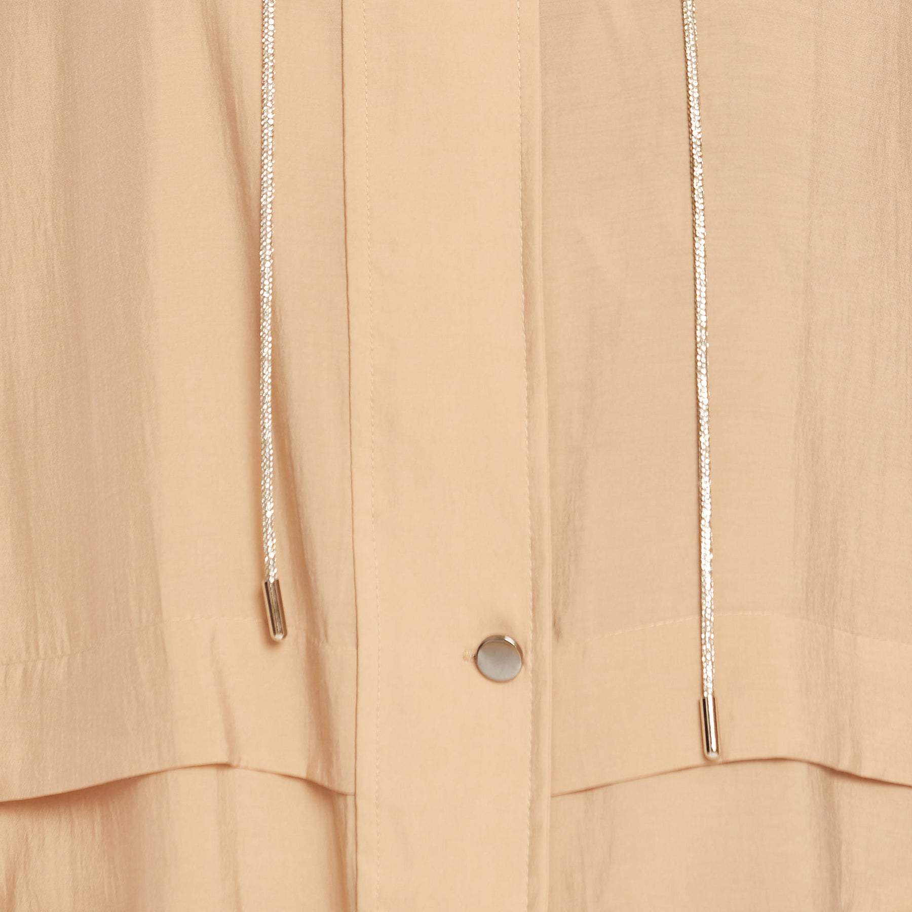 Detail: Hood with gathered elastic, stone details, hidden placket