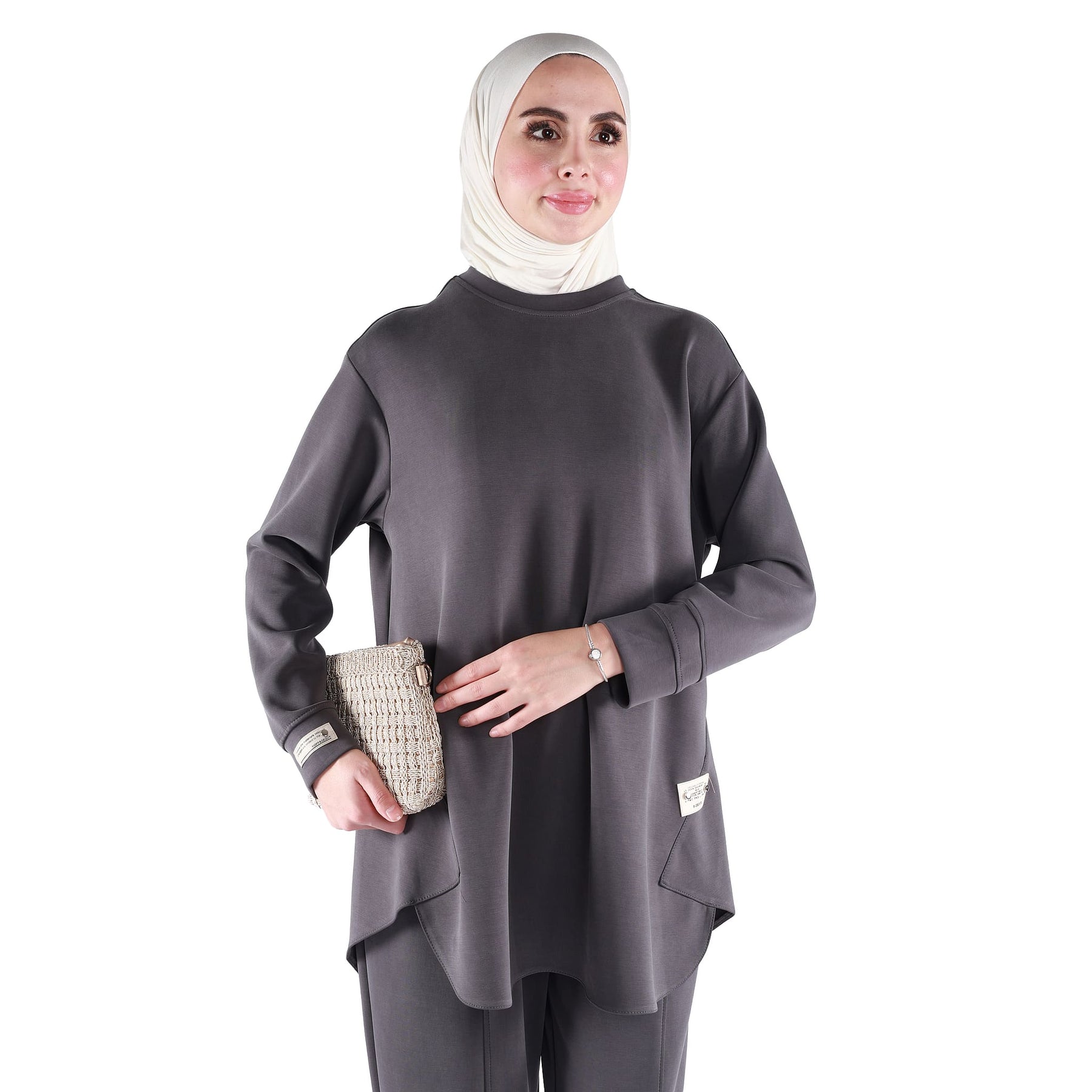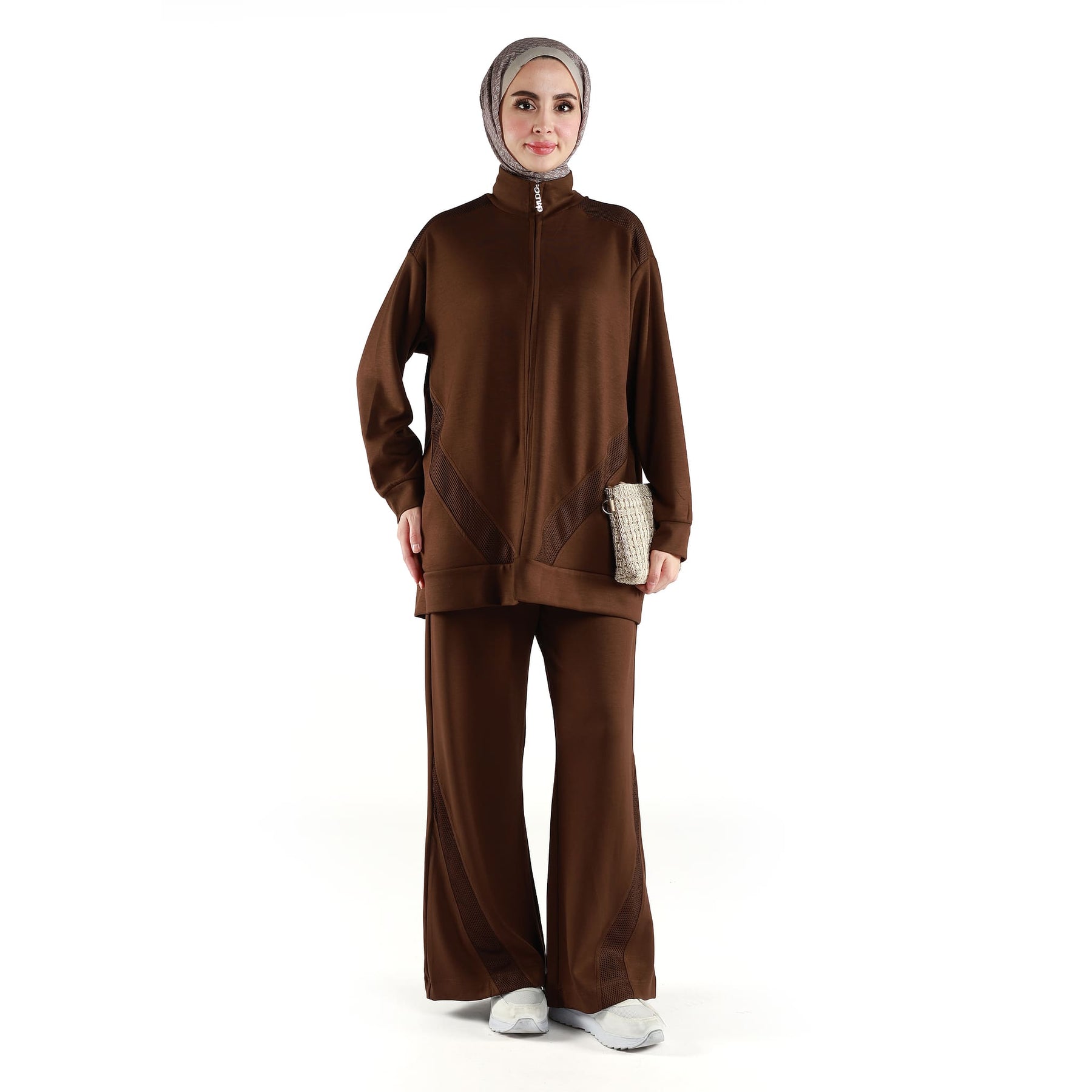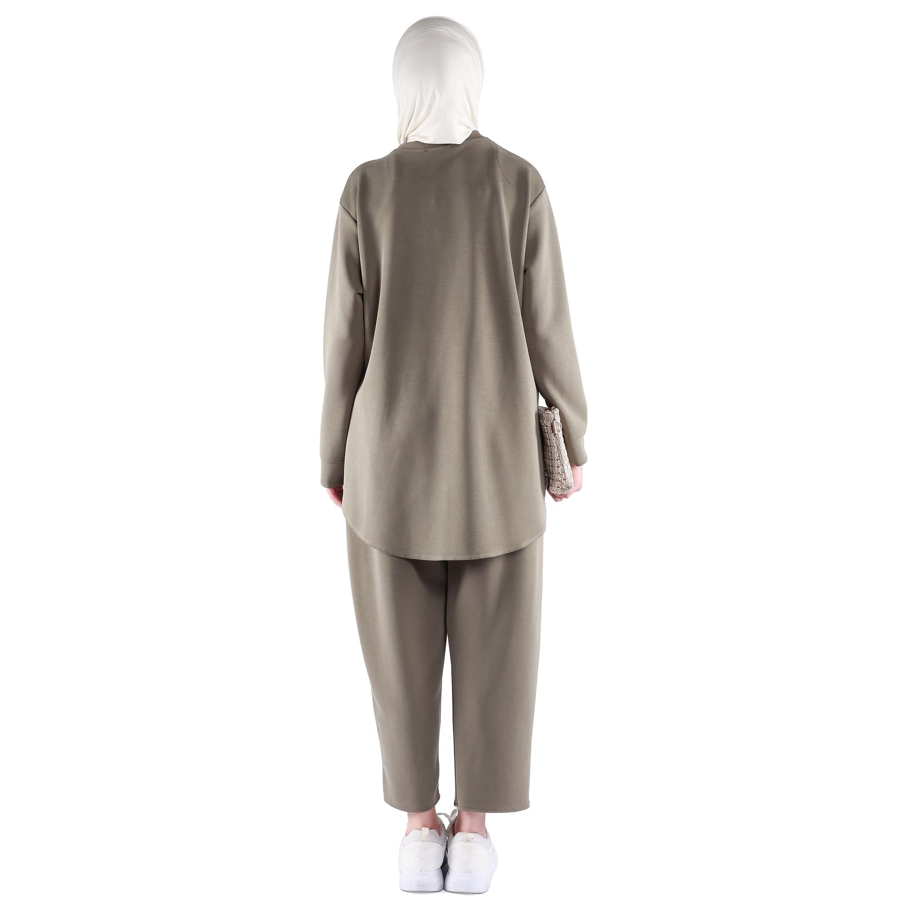 Thanks to its soft texture and comfortable cut, this set is ideal for busy days, travel, casual meetings or simply unwinding at home. Available in anthracite, khaki, brown, navy and black, it easily pairs with sneakers, loafers or simple flats, making styling effortless. Both the top and bottom pieces can also be worn separately, allowing you to mix and match with other items in your wardrobe. With its minimal design, cosy fabric and versatile colour options, the Stand Collar Soft-Touch Set is a reliable go-to for those who value comfort and understated style in their daily looks.