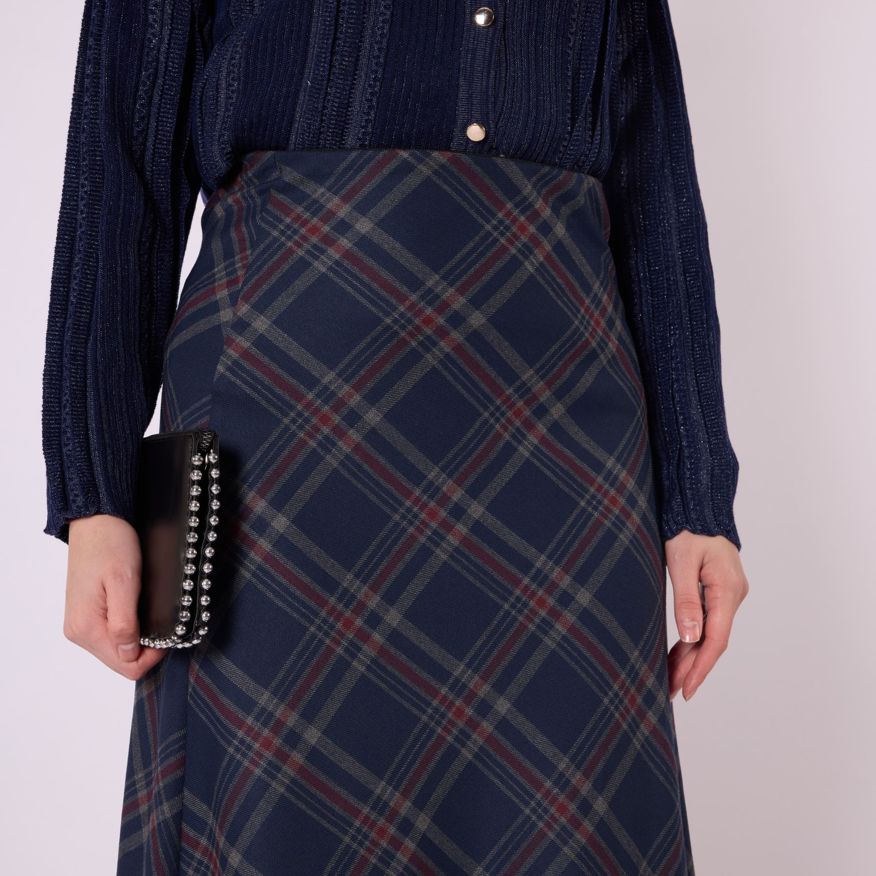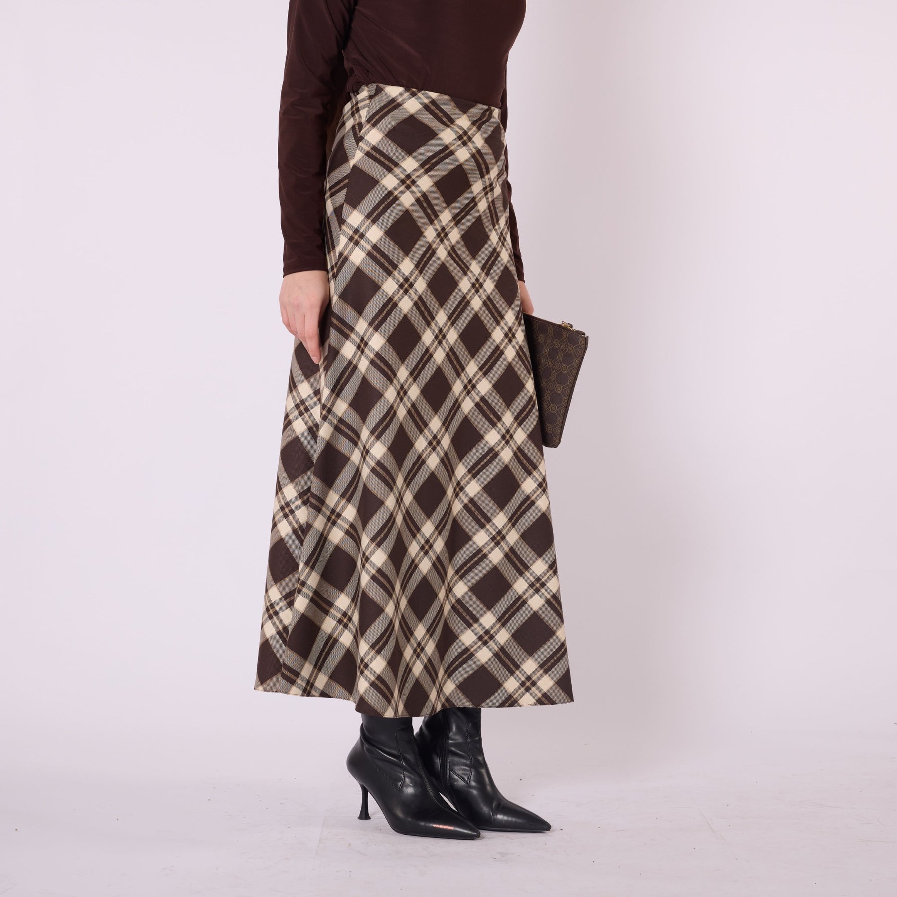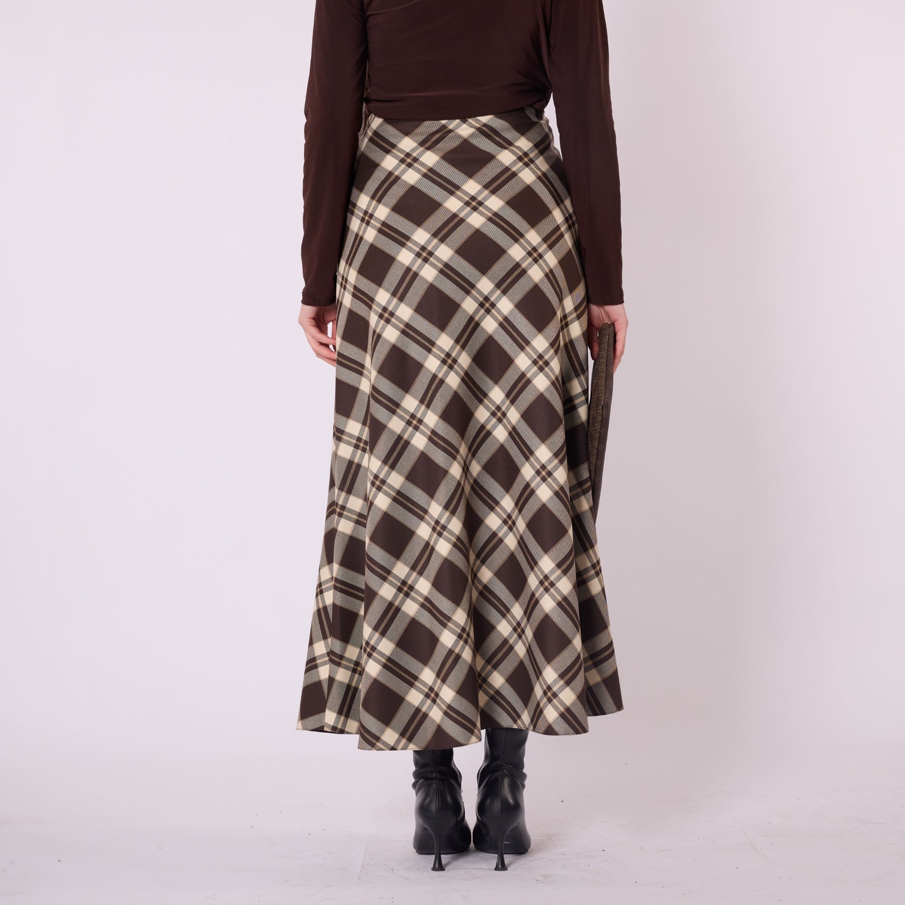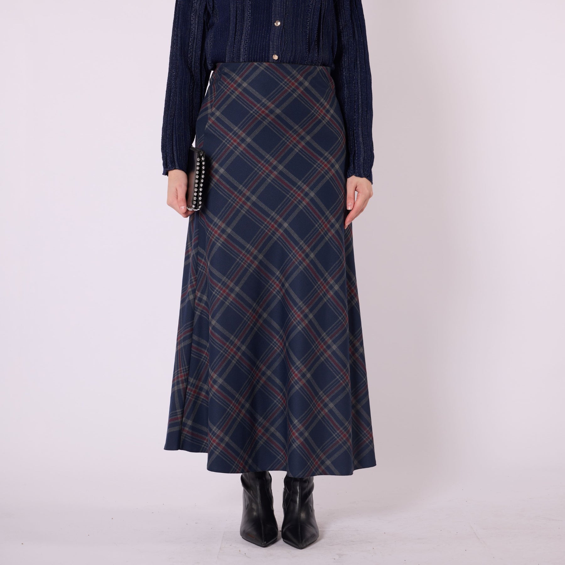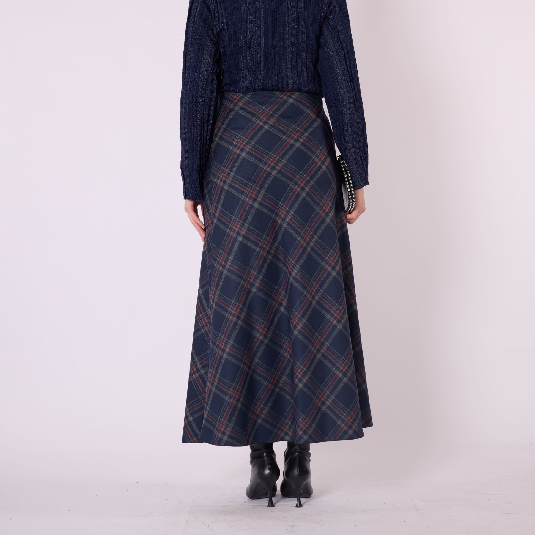 Designed with a soft winter texture, this plaid long skirt offers warmth and comfort with its high-waist, elastic design. Its unlined structure provides a lightweight and flowy silhouette, making it ideal for everyday wear. Available in beige, burgundy, grey, navy and brown, it pairs effortlessly with knitwear, cardigans and simple tops. The timeless plaid pattern adds a refined touch to cold-season outfits while ensuring practicality and versatility.