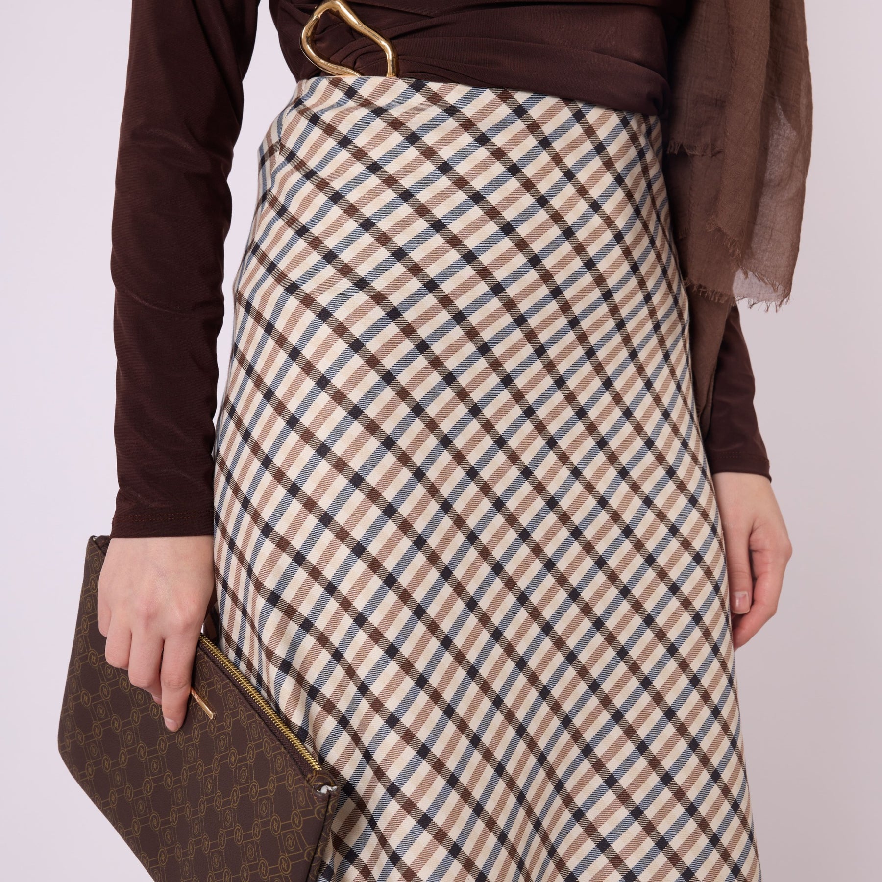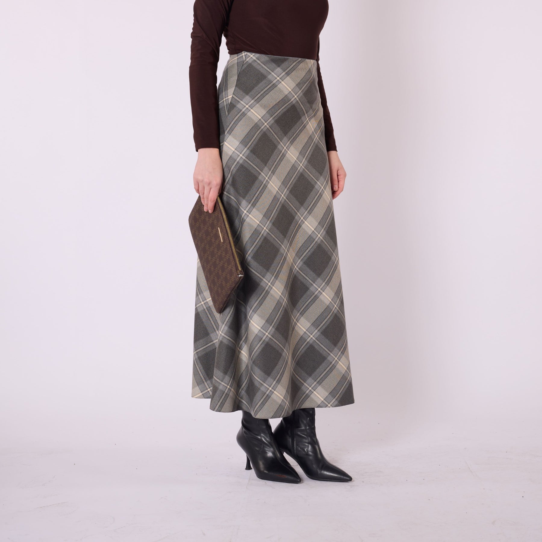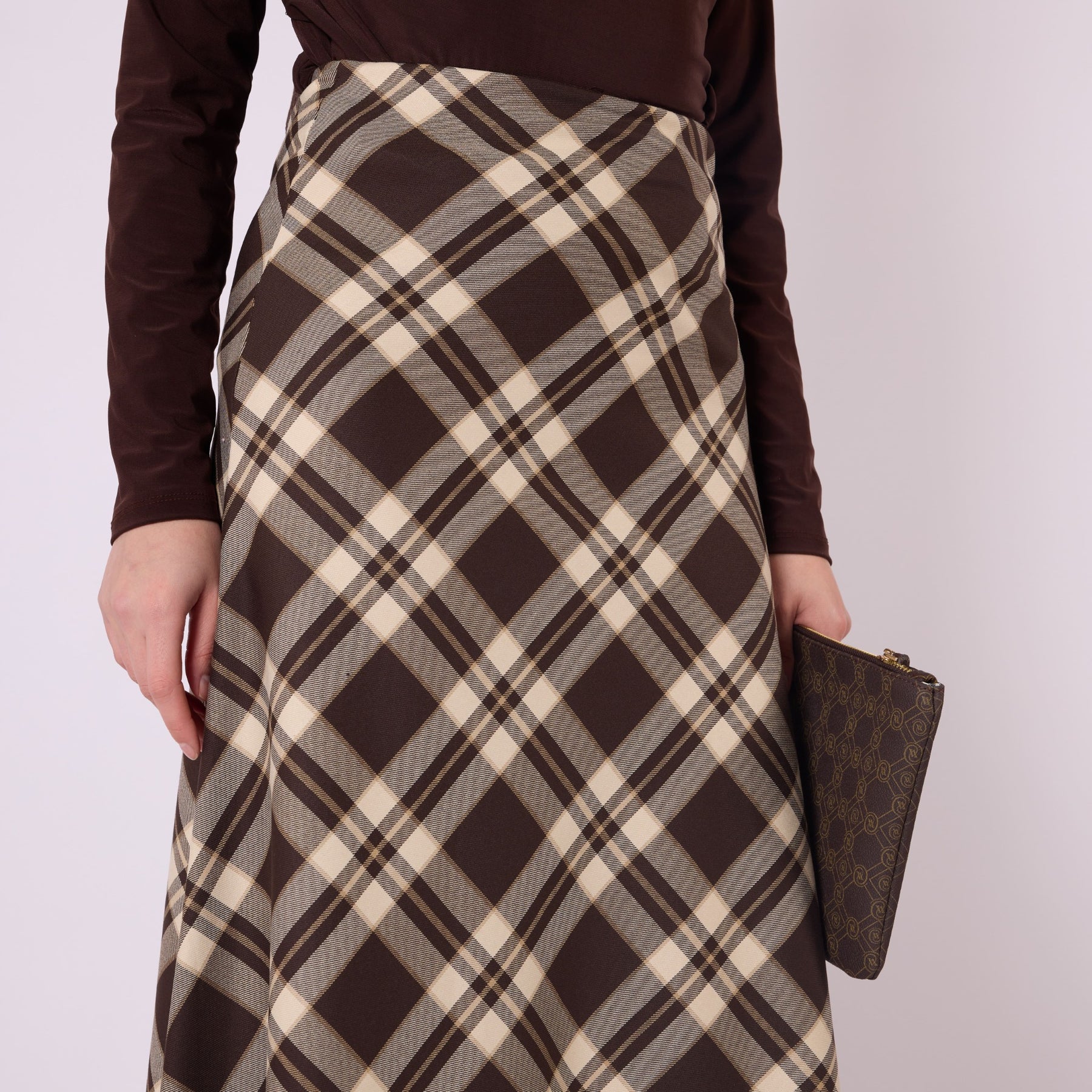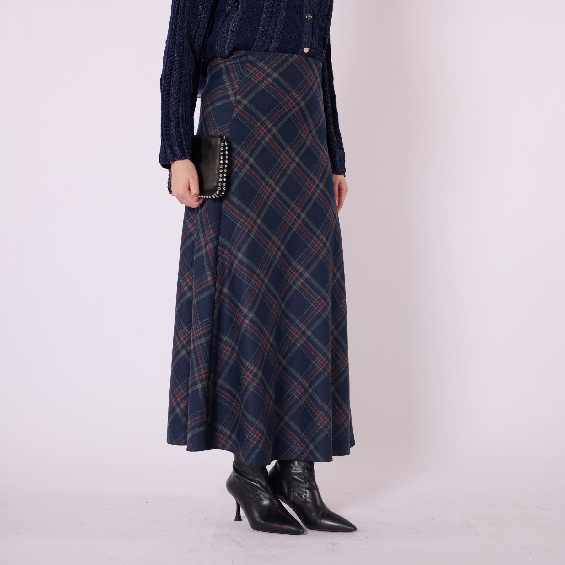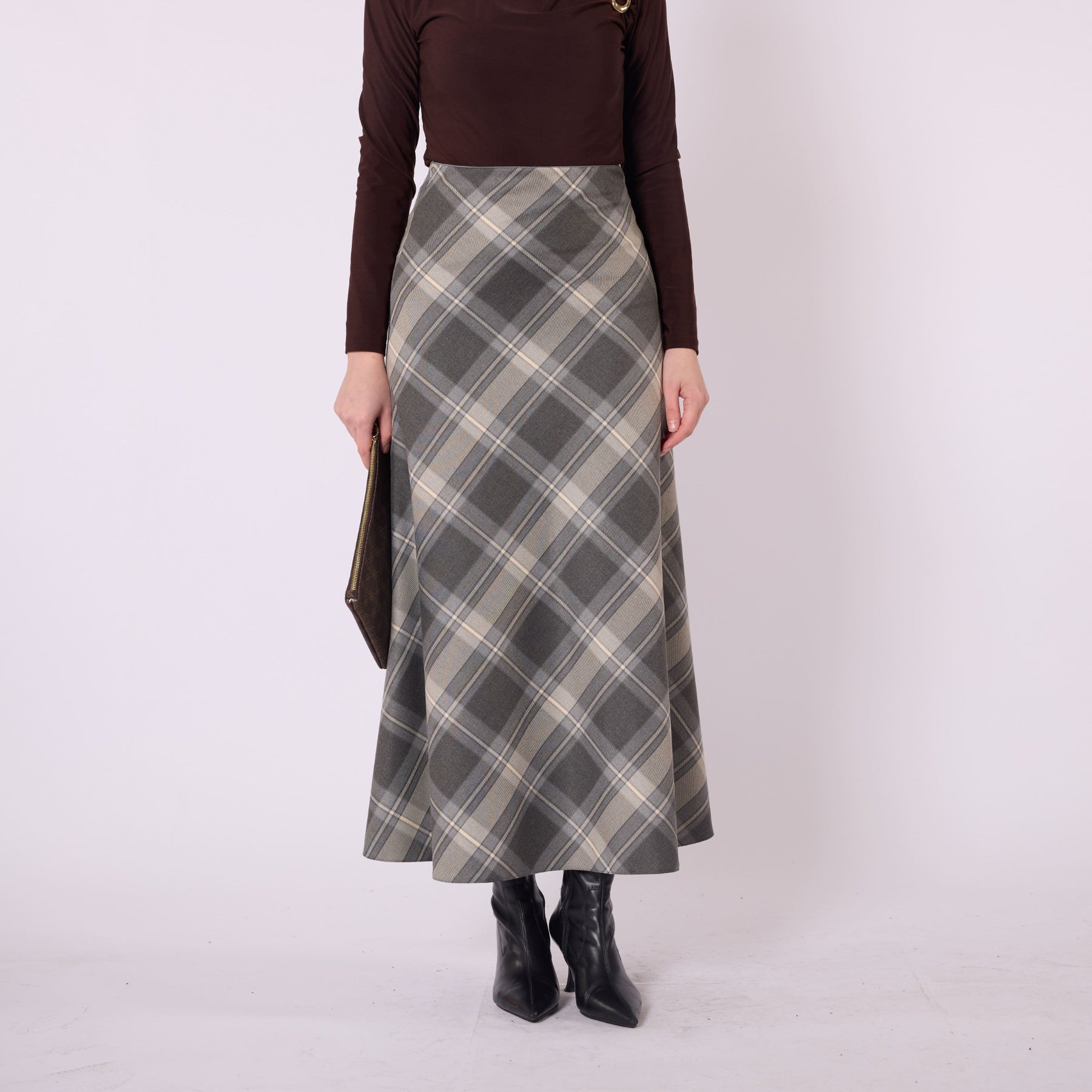 Designed with a soft winter texture, this plaid long skirt offers warmth and comfort with its high-waist, elastic design. Its unlined structure provides a lightweight and flowy silhouette, making it ideal for everyday wear. Available in beige, burgundy, grey, navy and brown, it pairs effortlessly with knitwear, cardigans and simple tops. The timeless plaid pattern adds a refined touch to cold-season outfits while ensuring practicality and versatility.