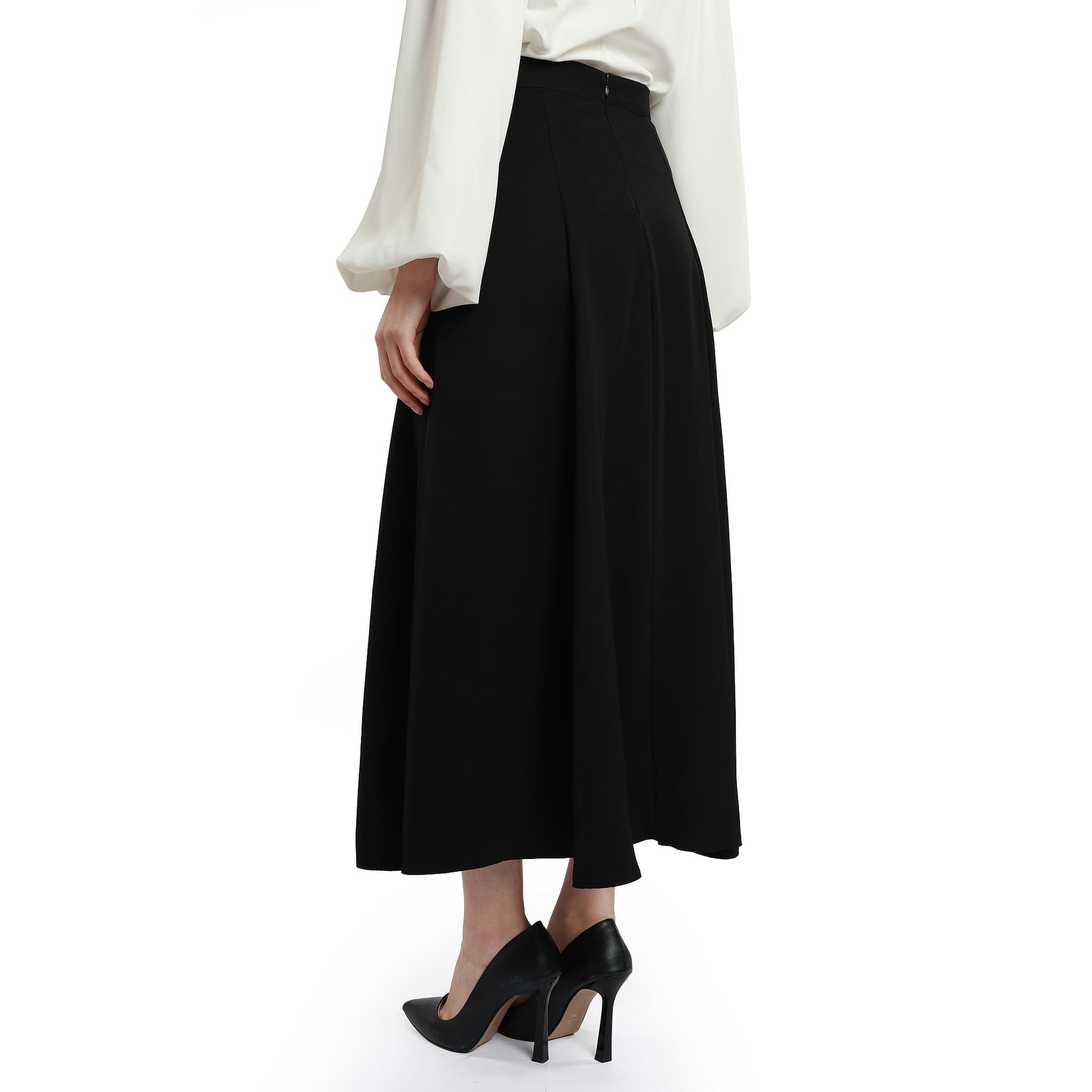 A sleek and elegant choice for special occasions, this satin skirt combines a subtle pleated design with a refined silhouette. The smooth satin texture and back zipper closure offer both sophistication and comfort.
