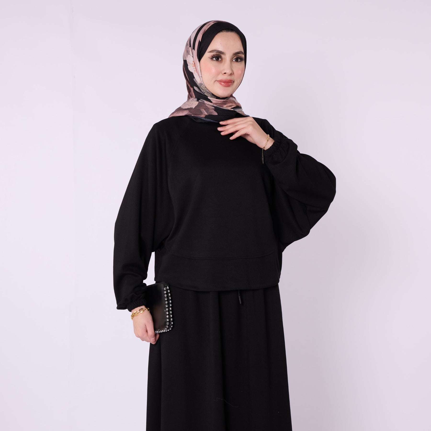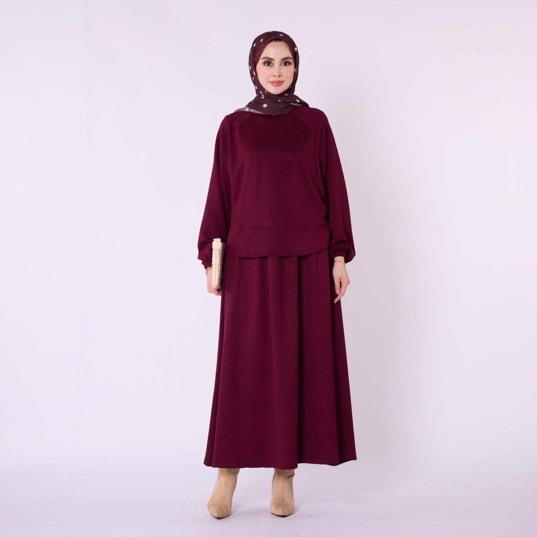 Designed for comfort and effortless style, the Batwing Sleeve Elastic Waist Skirt Cotton Two-Piece Set offers a modern silhouette suitable for everyday wear. Made from 100% breathable cotton, it provides long-lasting comfort throughout the day. The draped batwing-sleeve top creates a relaxed and fluid look, while the elastic-waist skirt ensures ease of movement and a flattering fit. Available in burgundy, navy and black, this versatile set pairs well with minimalist accessories for a chic appearance or can be styled casually for daily outings. Its soft texture and practical structure make it ideal for city life, workdays or comfortable weekend looks.
