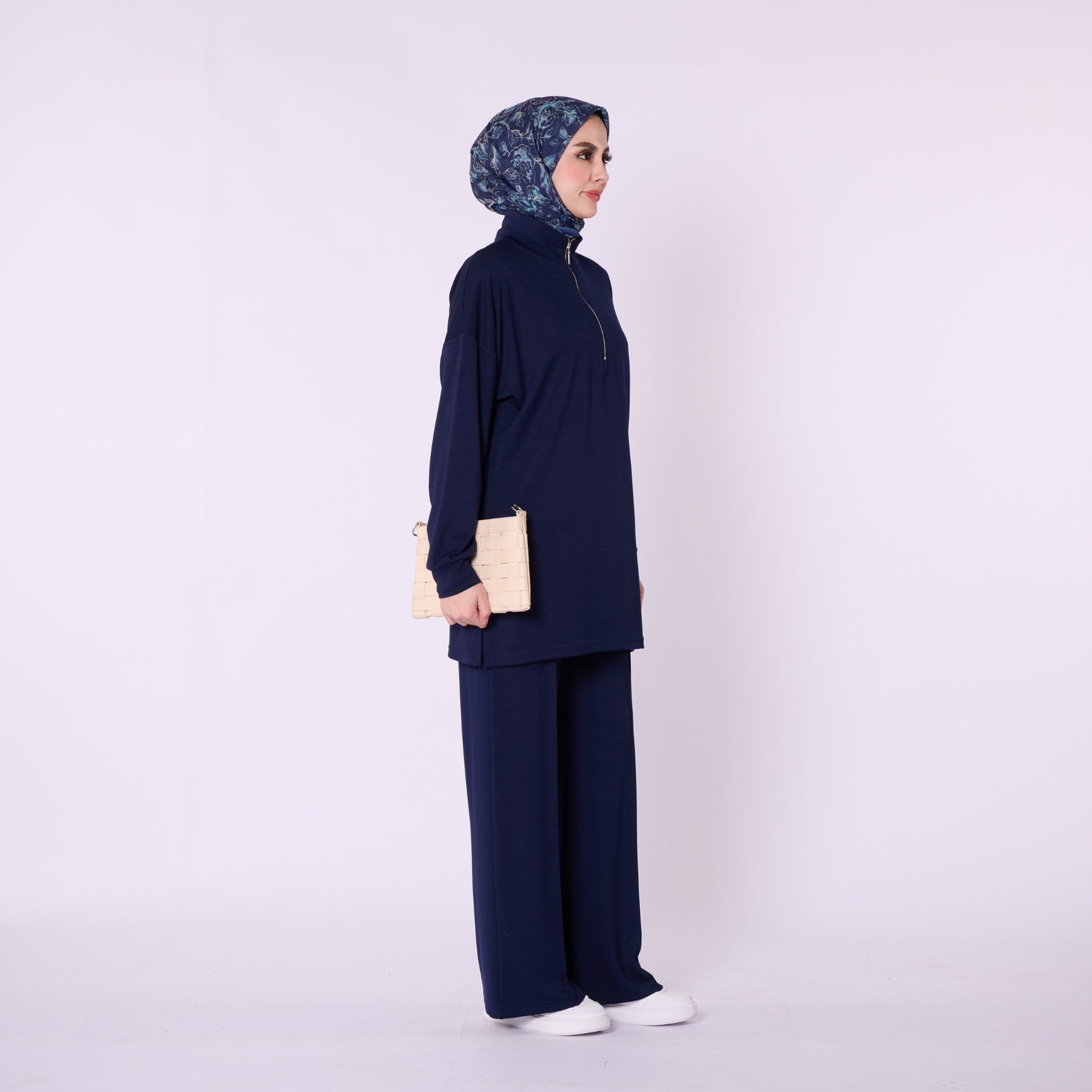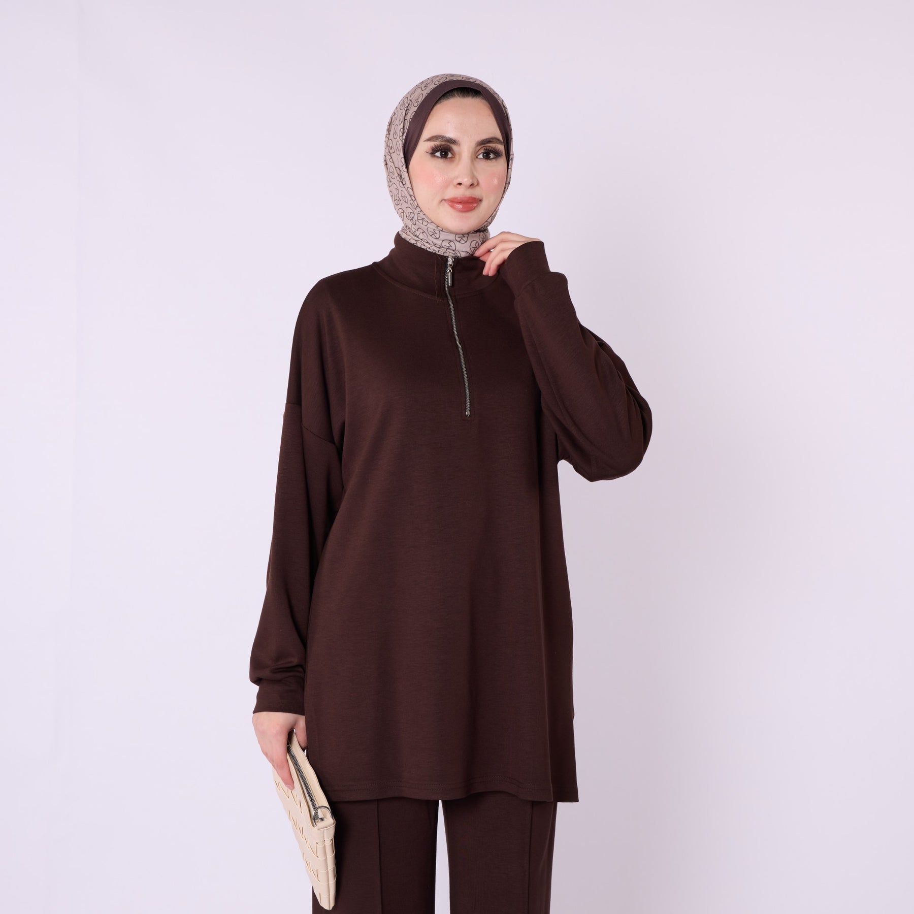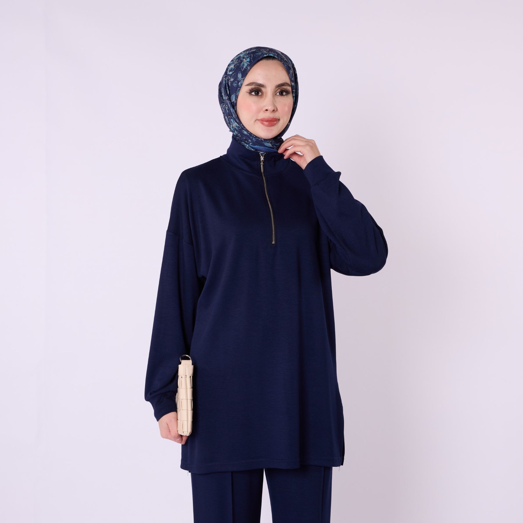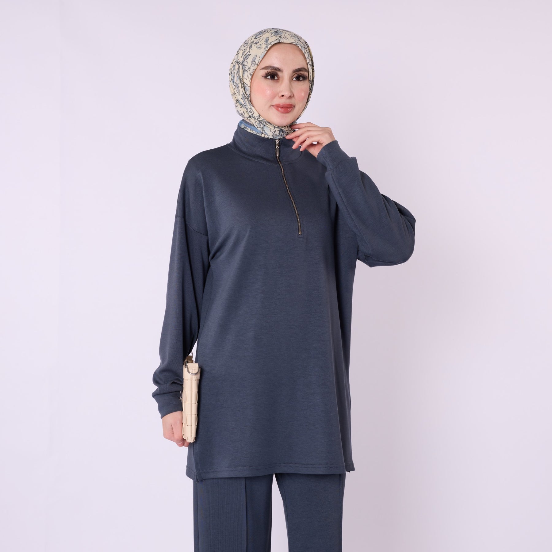 Model: Half-zip high-neck two-piece set