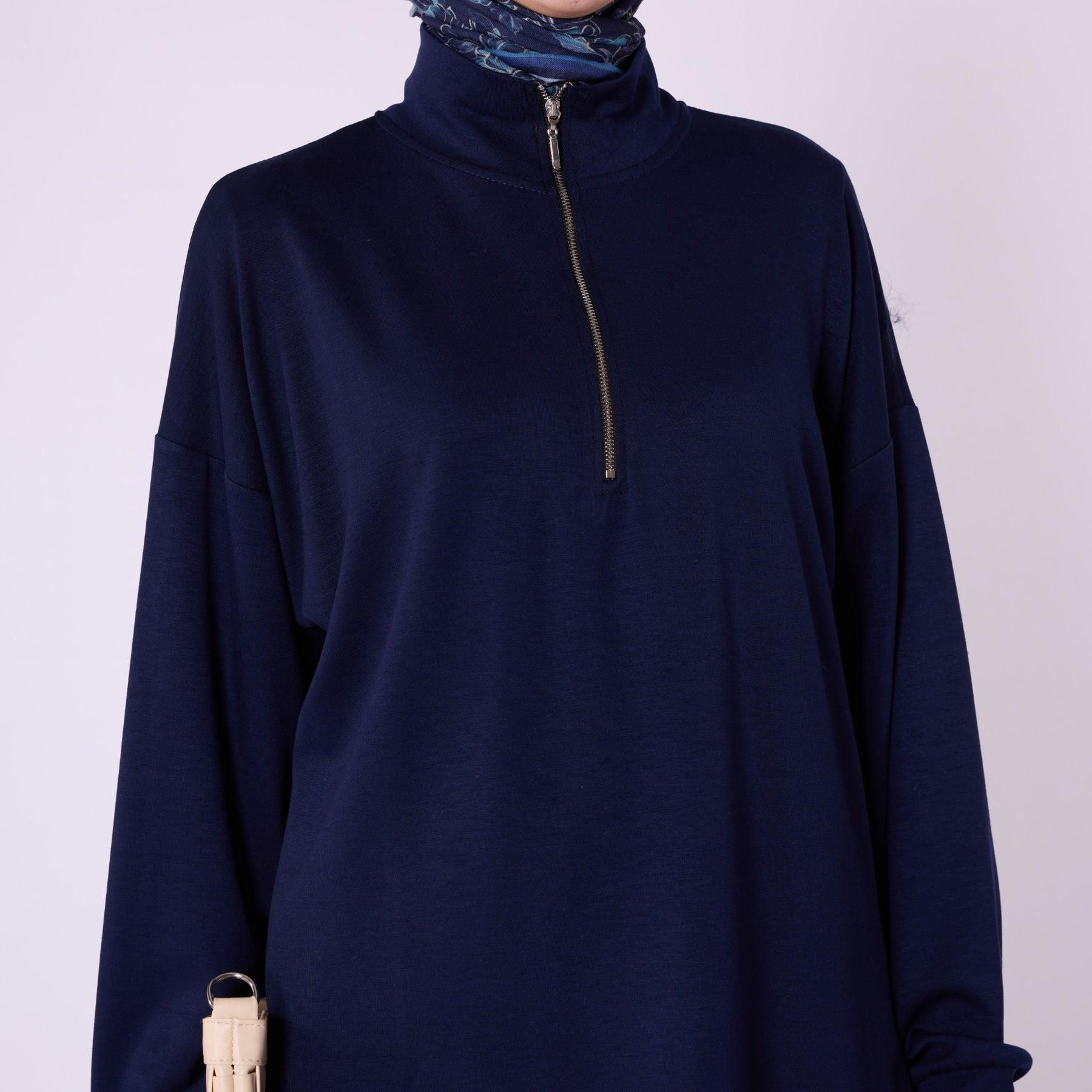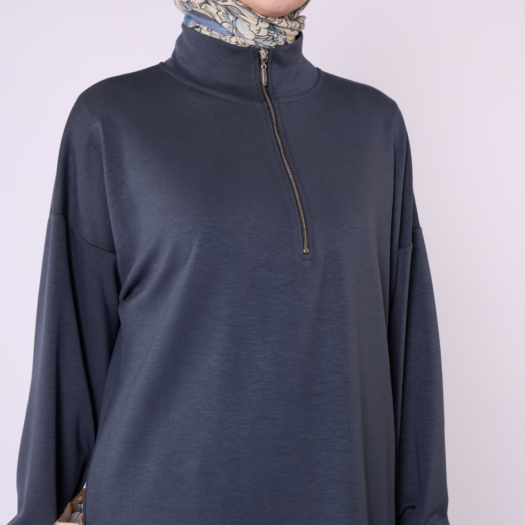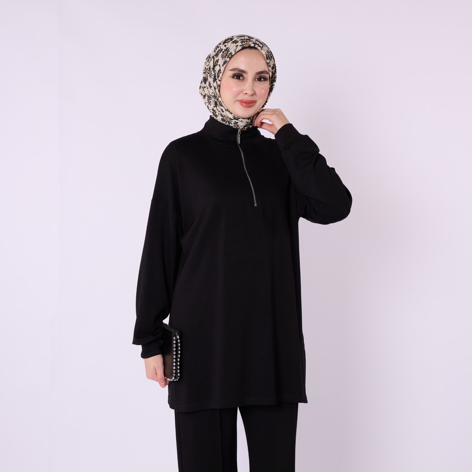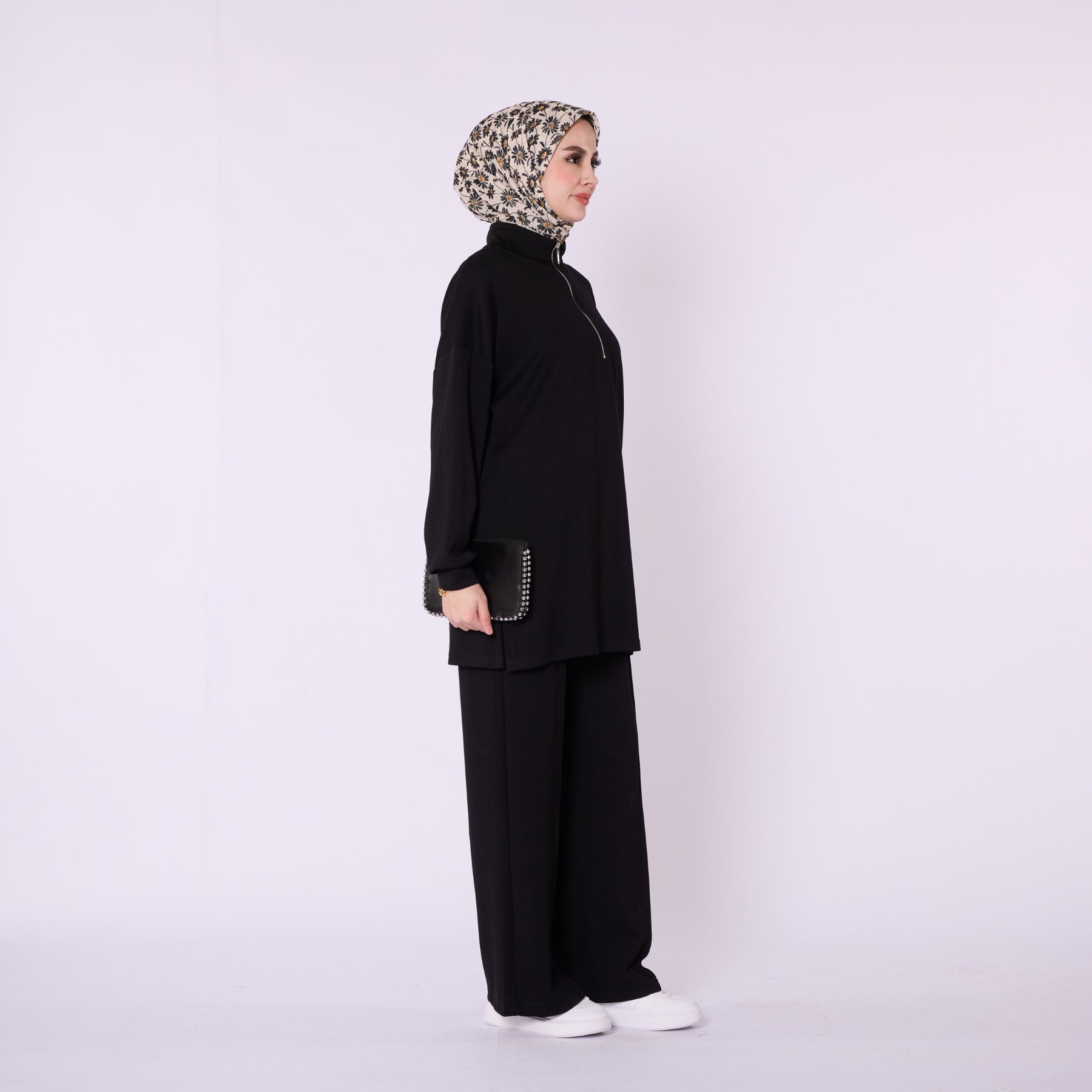 Model: Half-zip high-neck two-piece set