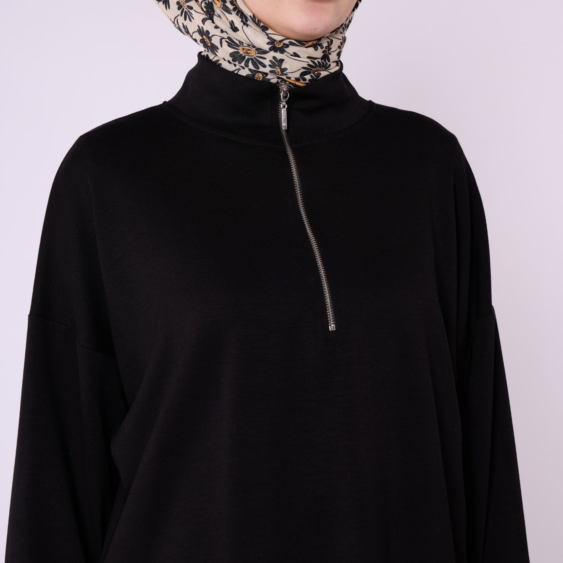 Details: Half zipper, high neck, seam-detailed trousers