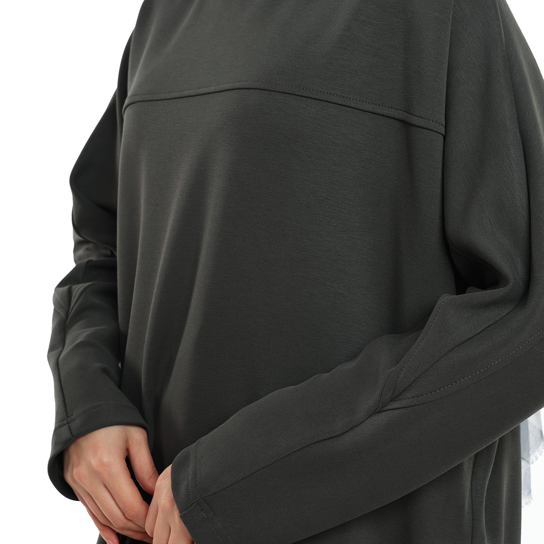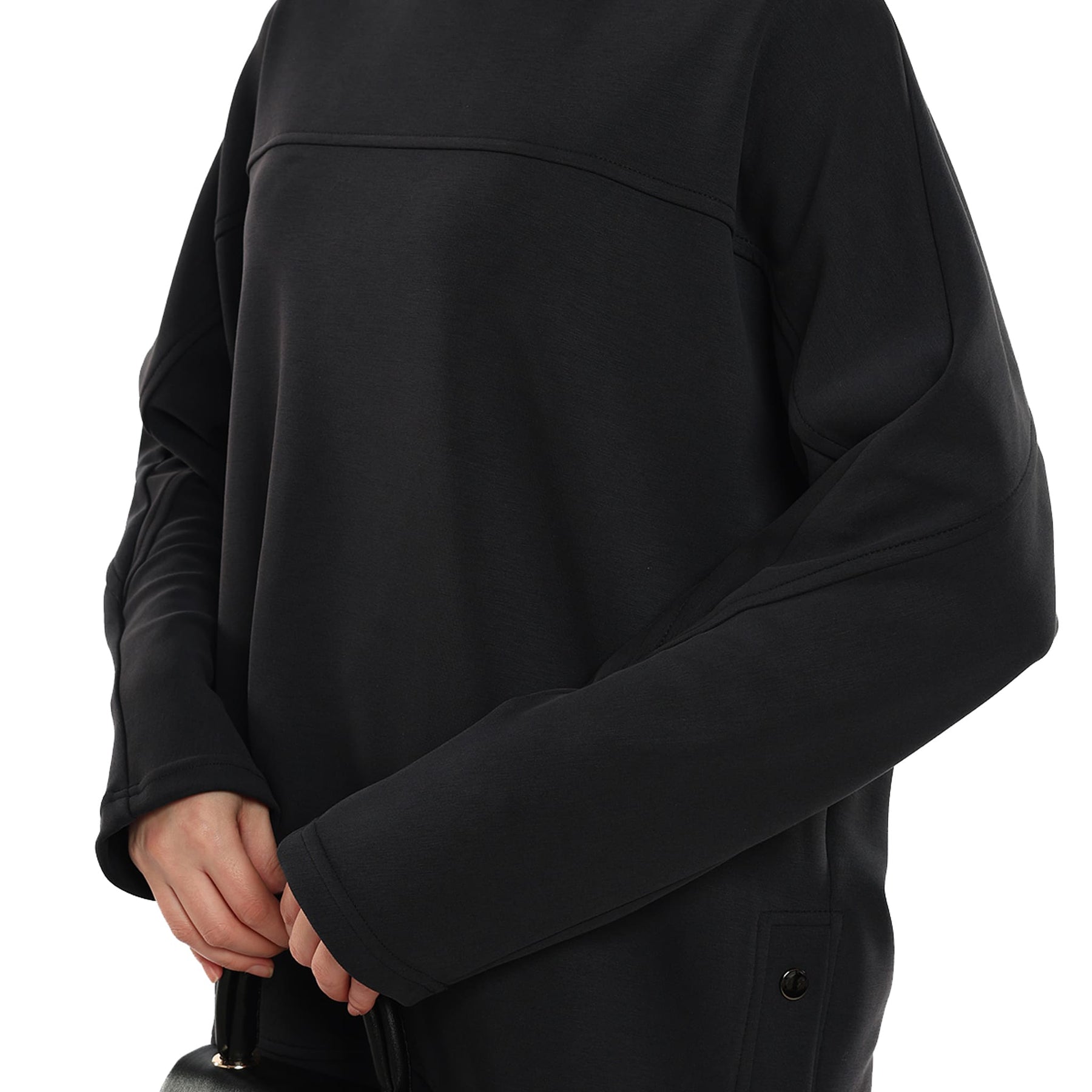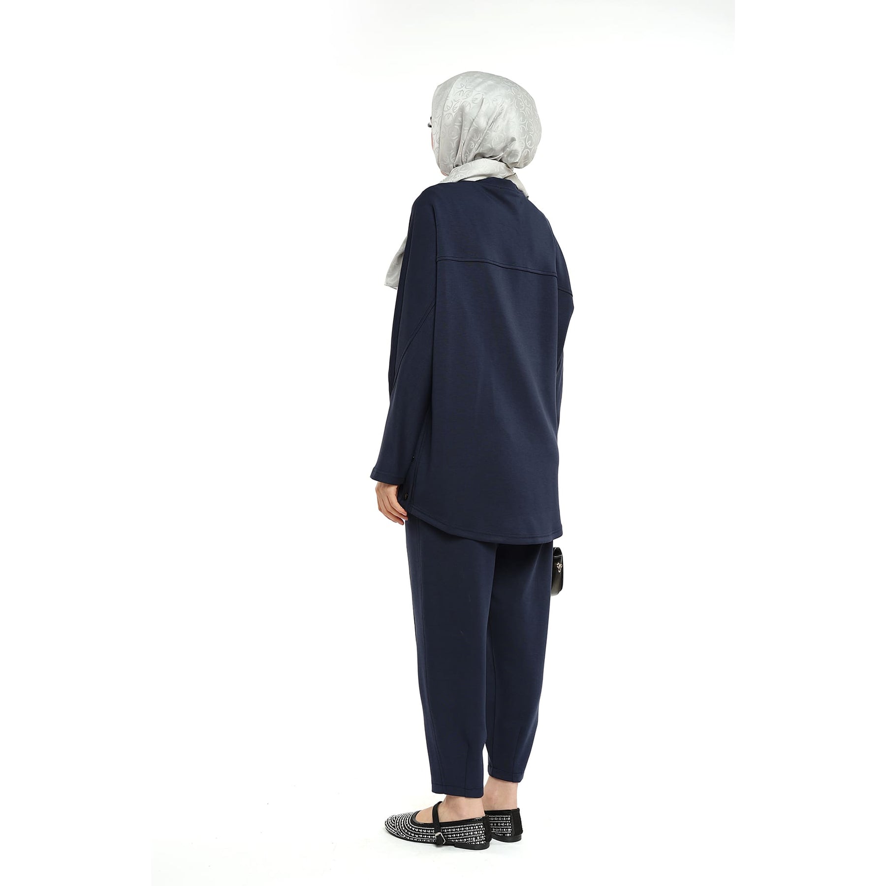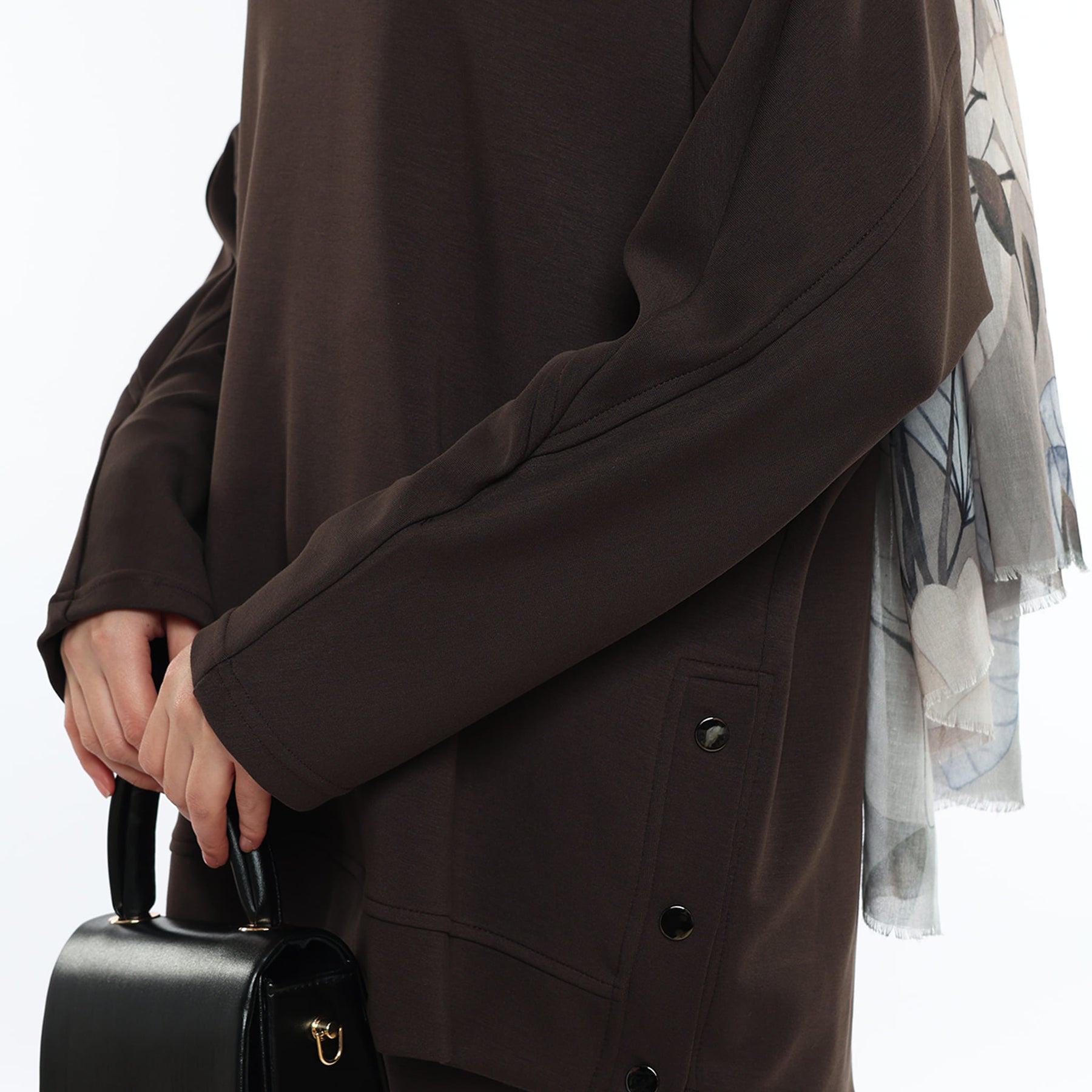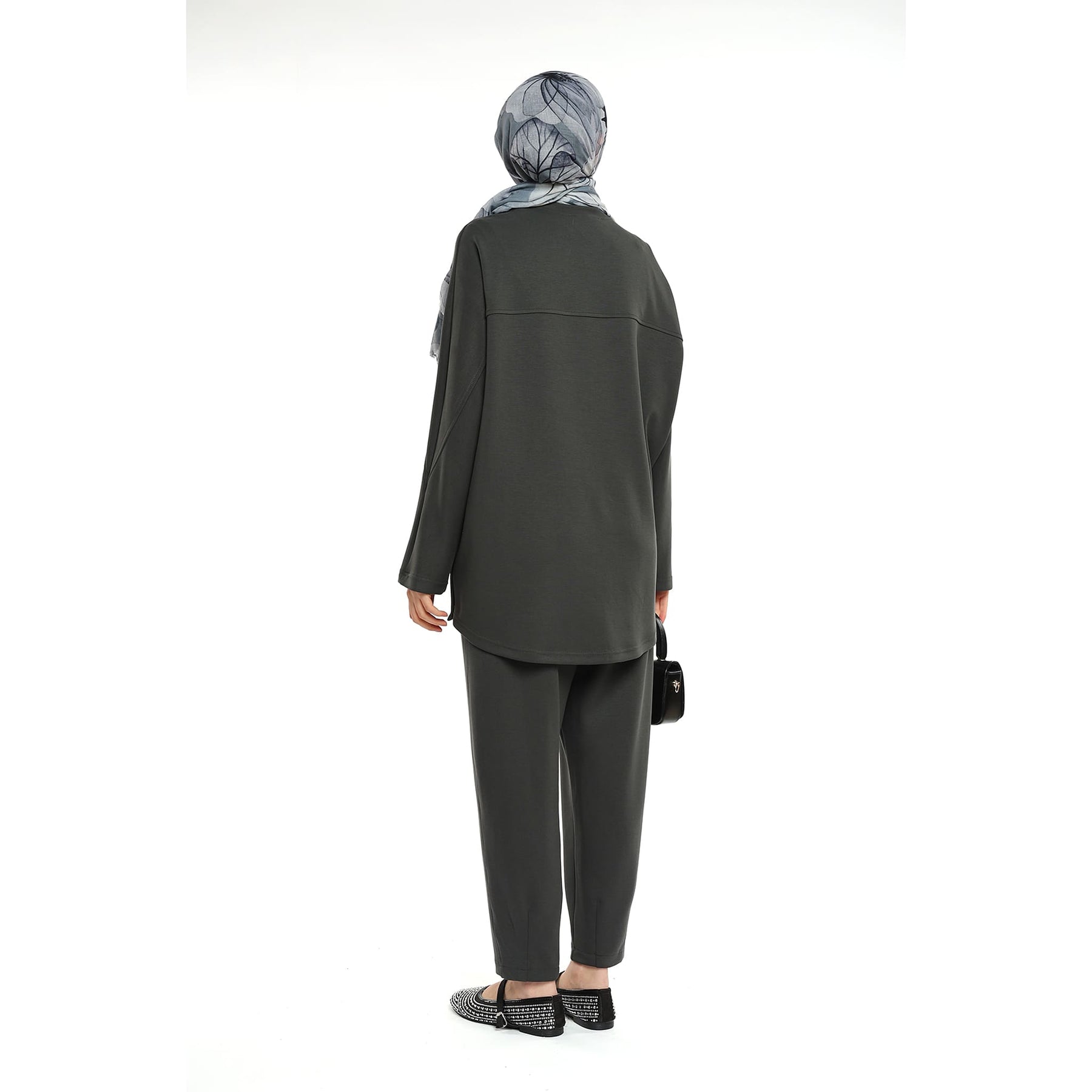 Blending a soft modal touch with a clean, relaxed silhouette, this two-piece set is built for all-day comfort. The top features batwing sleeves for an easy drape, button accents at the front and side slits that add movement and make layering effortless. The matching bottoms come with a comfortable elastic waist and a fluid cut that completes the look without restricting movement. Thanks to its modal-rich composition, the fabric feels breathable and smooth against the skin—ideal for busy days when comfort matters.