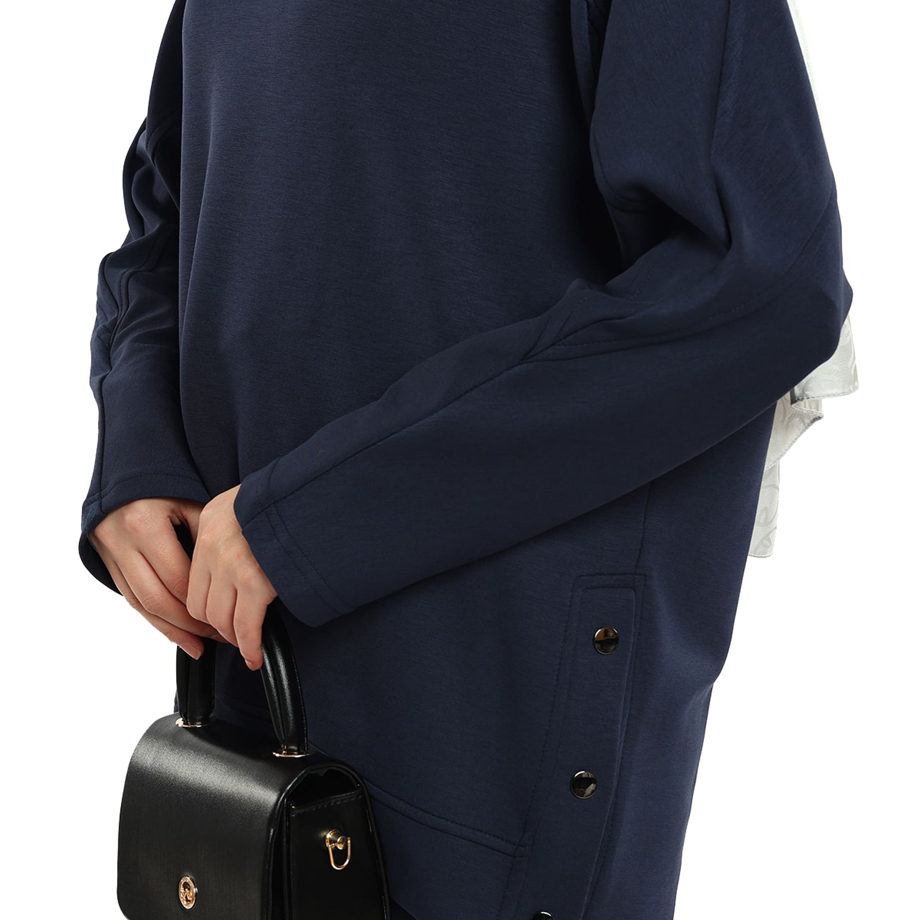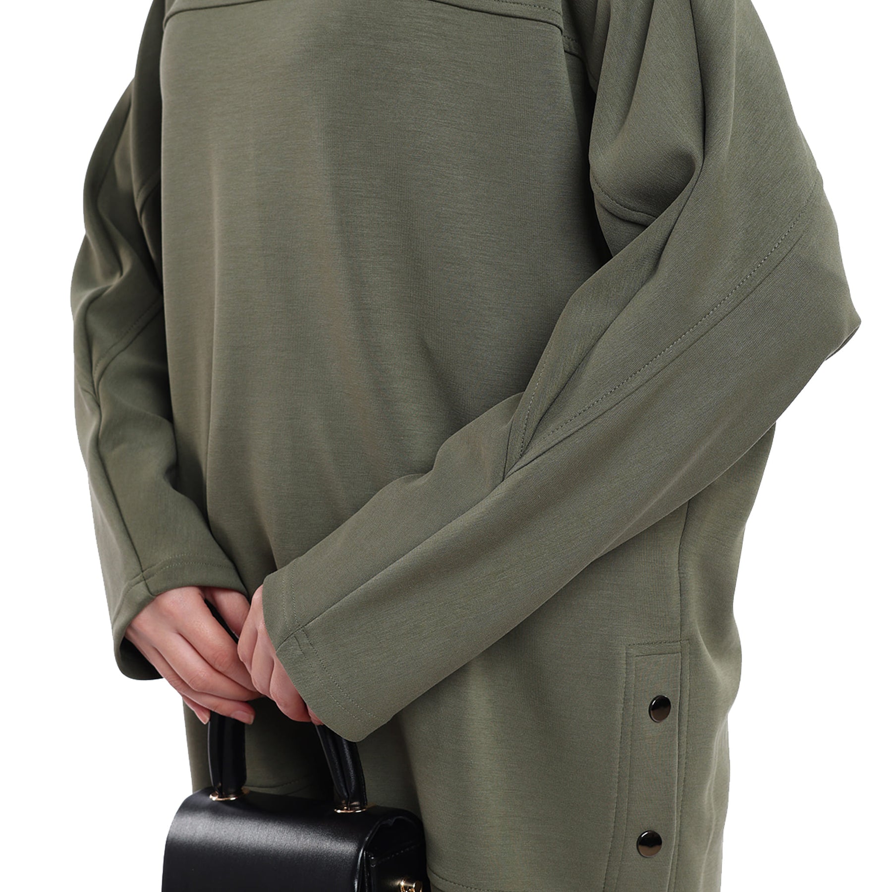Modal Batwing Sleeve Two-Piece Set with Buttons & Side Slits