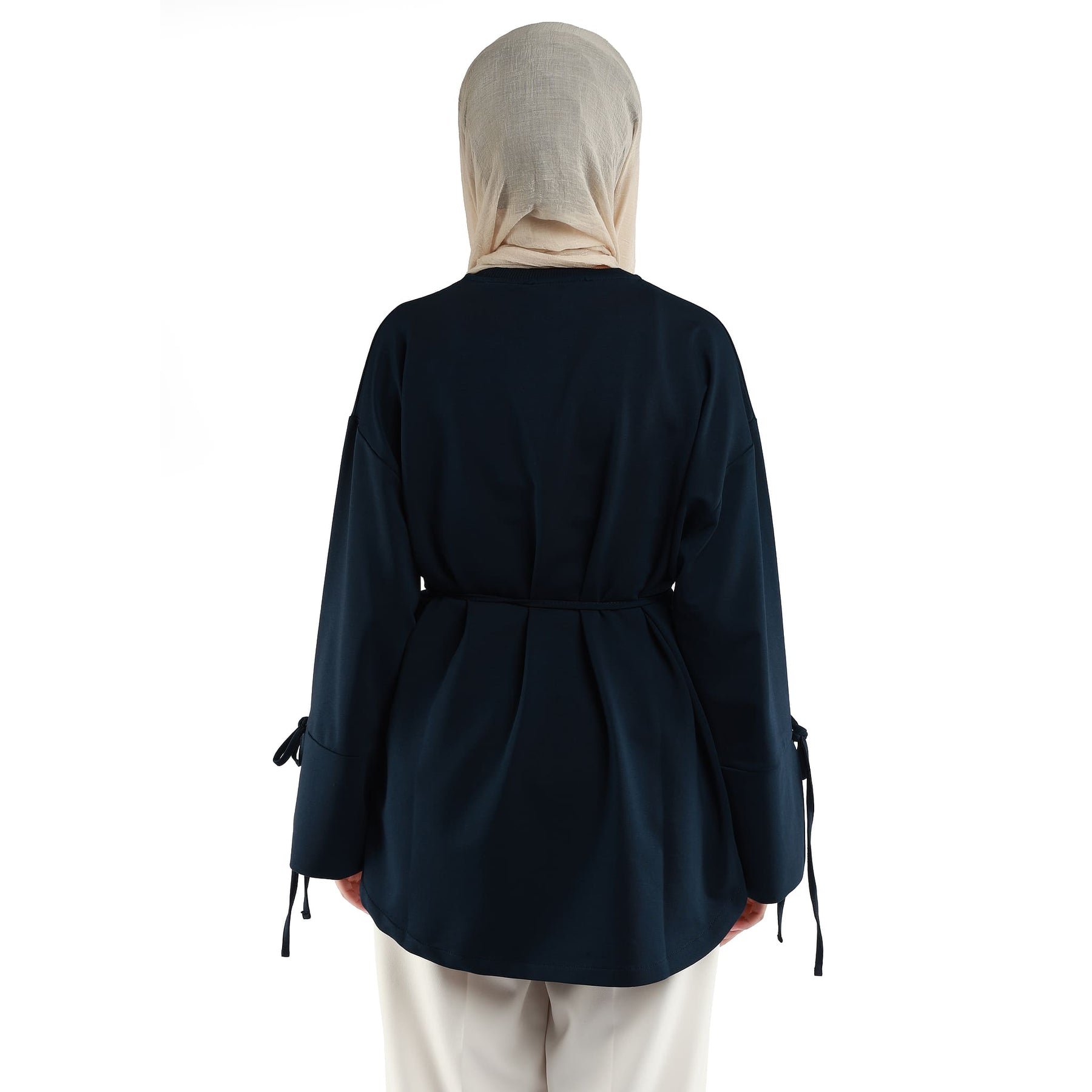 The drawstring long sleeve tunic stands out with its comfortable and stylish design, perfect for daily wear. The drawstring details at the waist and sleeves add both aesthetic appeal and light adjustability. Made from 100% cotton, it ensures a comfortable and breathable fit.