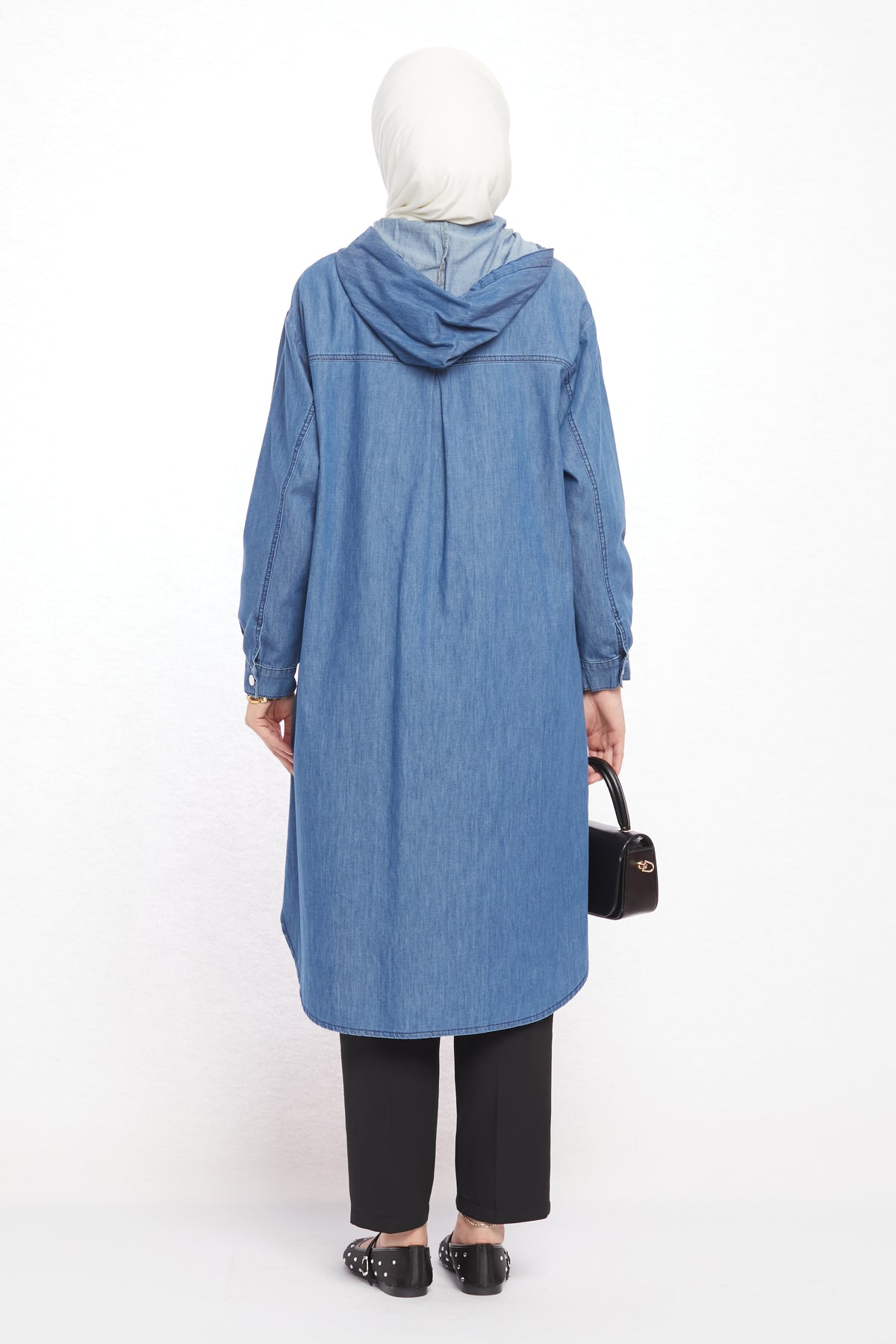 Denim-Look Hooded Tunic