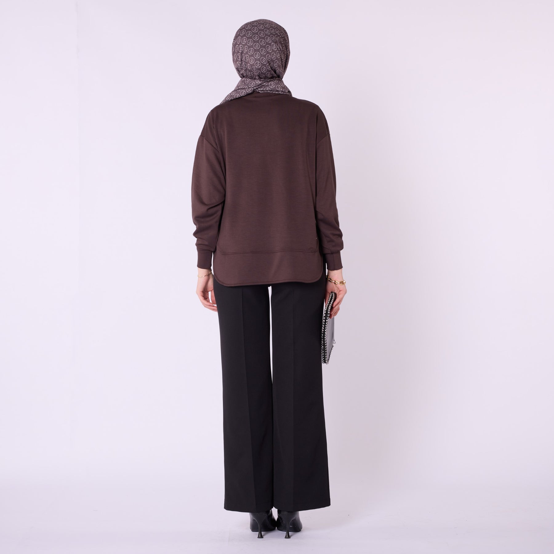 Available in burgundy, khaki, brown, black, and stone, this tunic adapts effortlessly to both casual and layered outfits. It pairs well with trousers, leggings, or skirts, making it a reliable choice for daily wear. With its minimalist design and versatile structure, it is a wardrobe essential suitable for all seasons.
