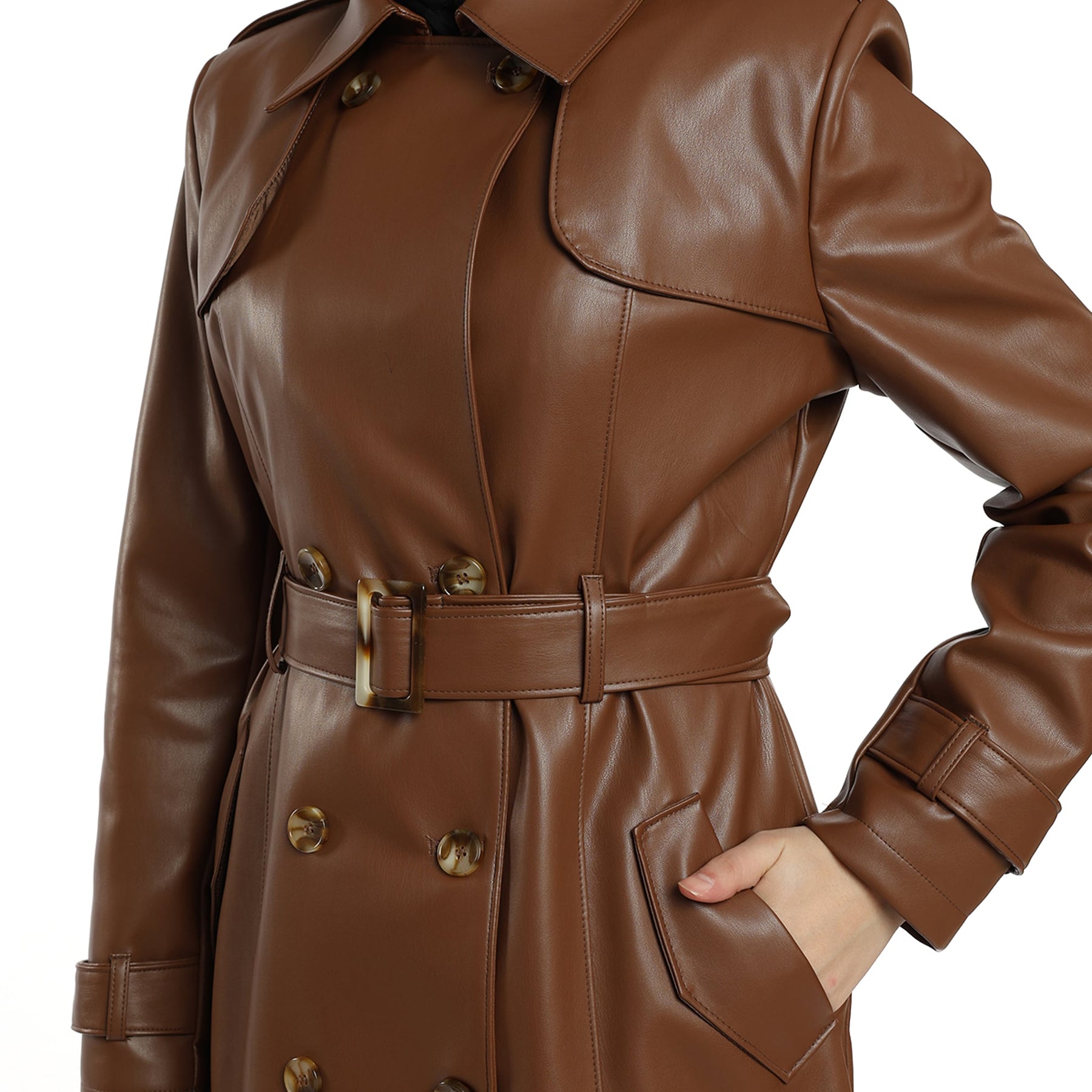 • Model: Epaulette and Belt Detail Faux Leather Coat