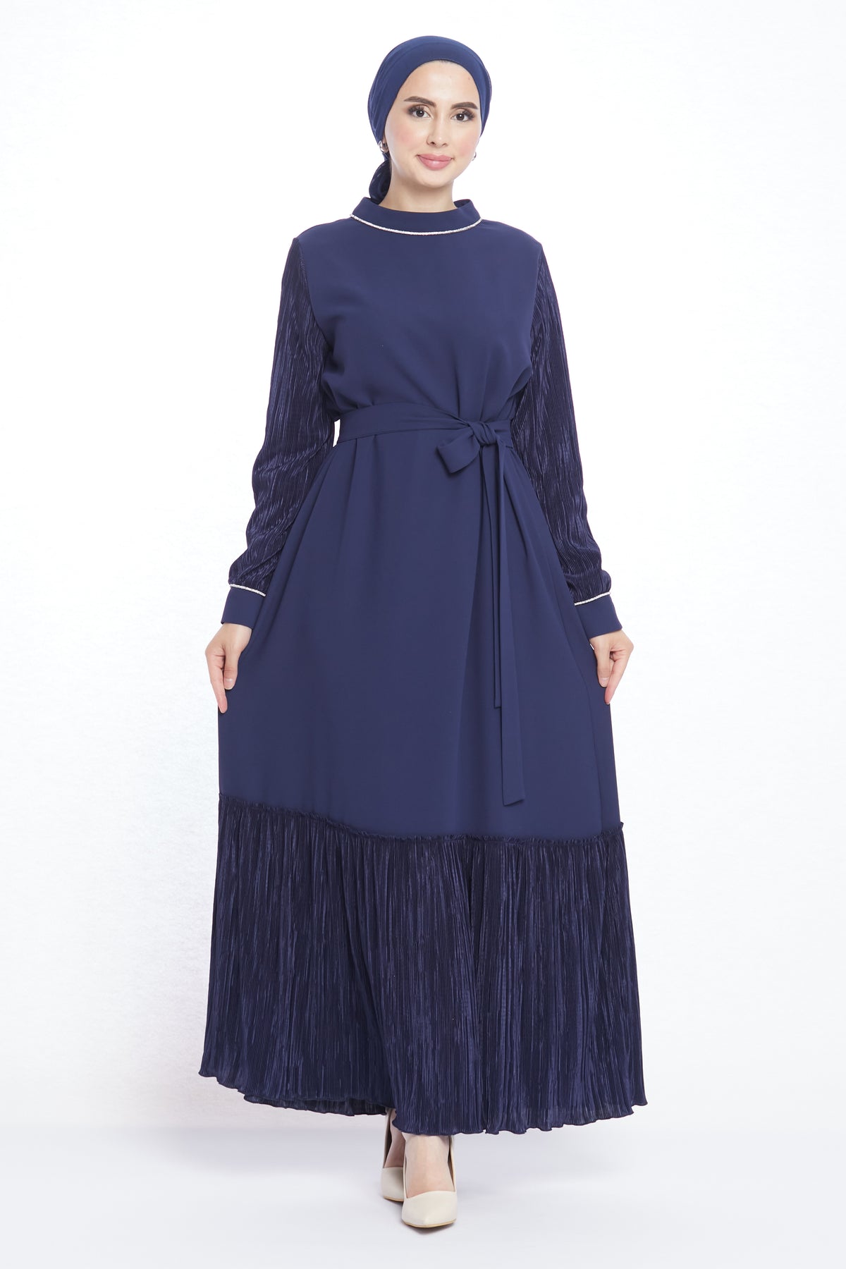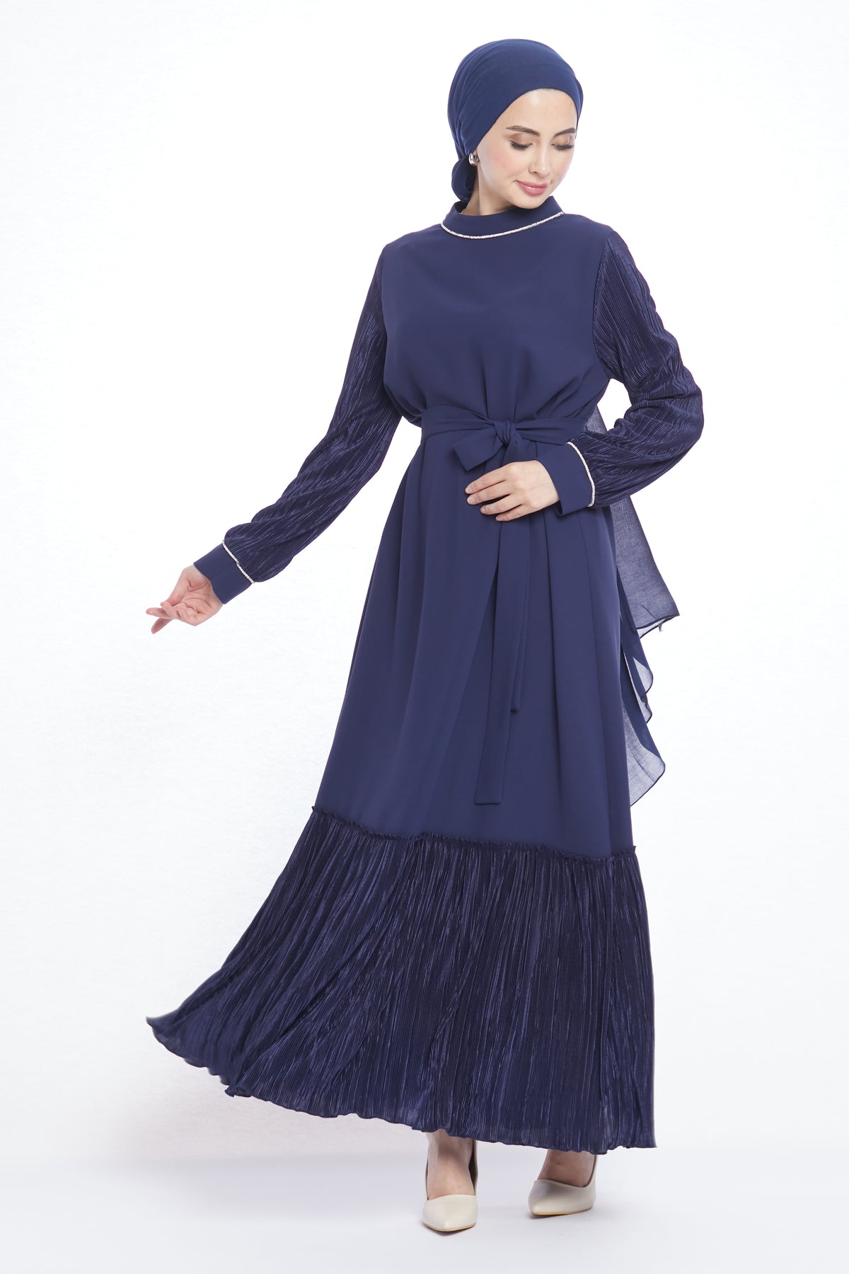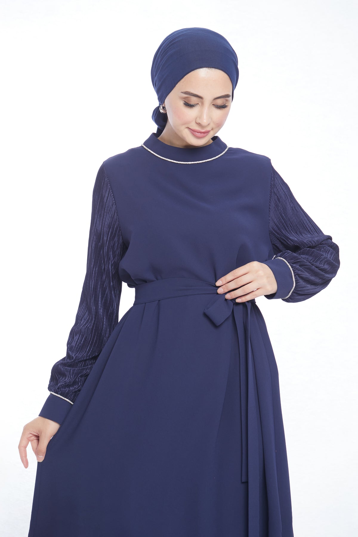 Available in black and navy blue, this special design dress stands out with its timeless elegance.