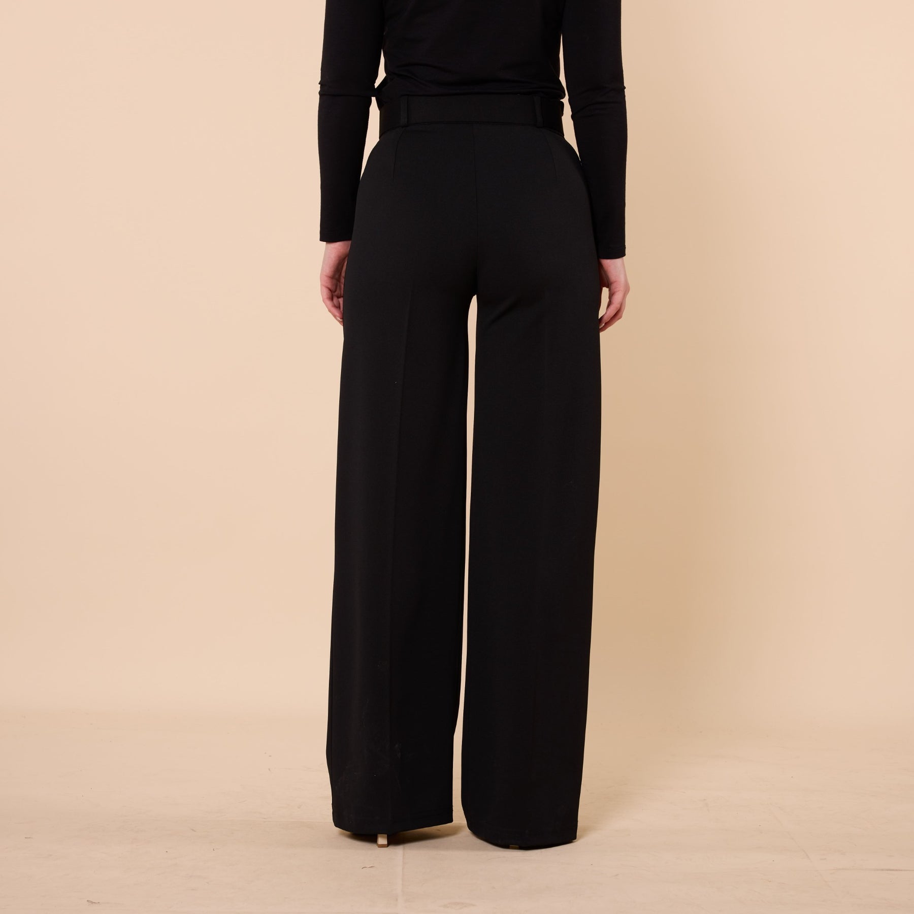 Black Wide Leg Pants With Belt Detail
