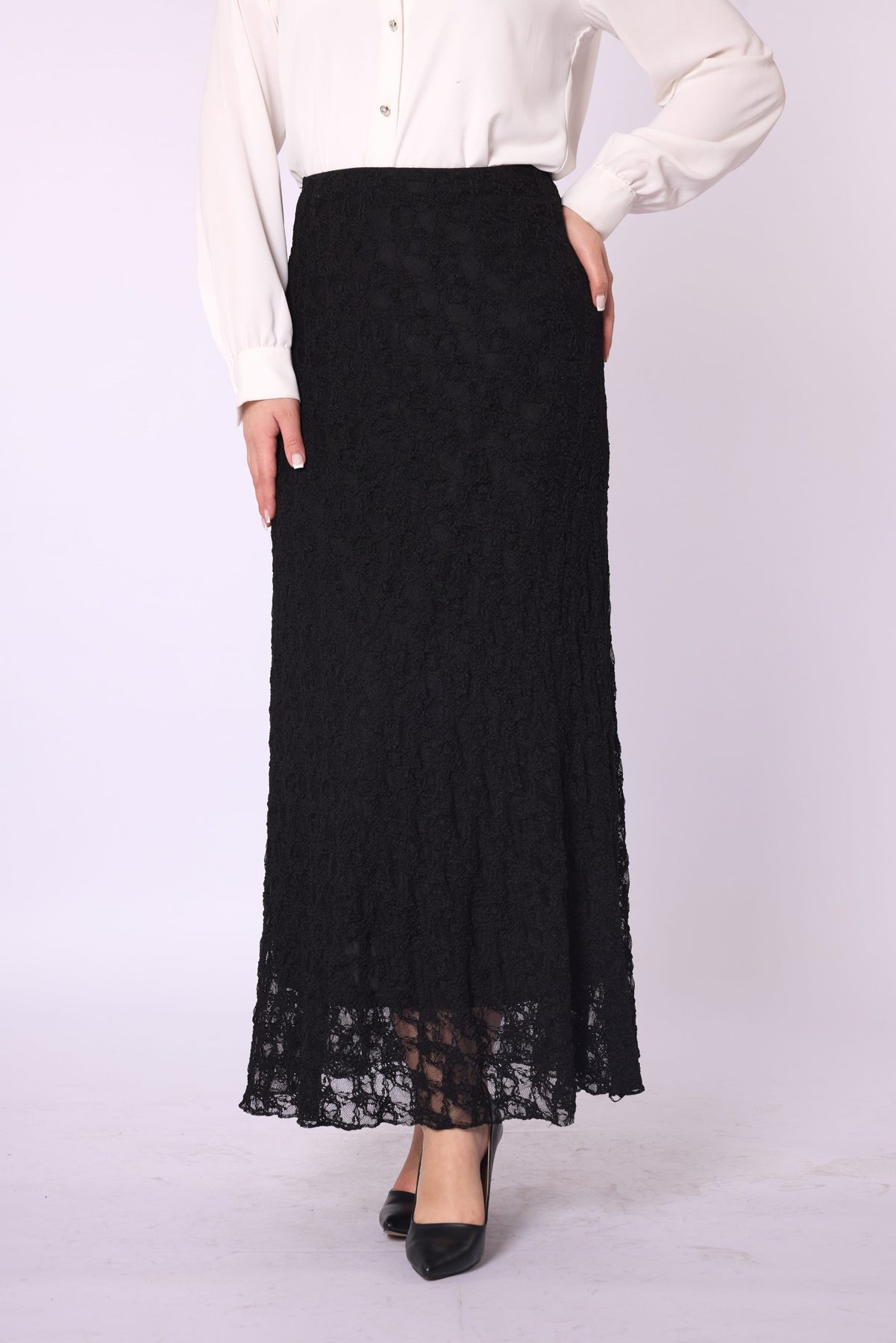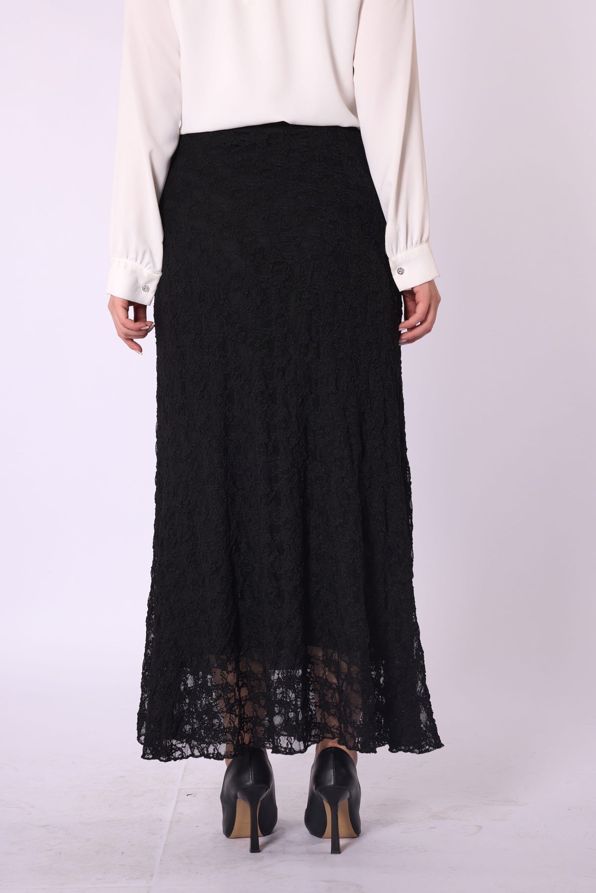 Elegant and effortless, the Lace-Detail Elastic Waist Chiffon Skirt combines the lightweight drape of chiffon with refined lace accents for a clean yet elevated look. Ideal for everyday wear, it can also be styled for special occasions depending on how you pair it. The elastic waistband ensures an easy, comfortable fit throughout the day.
