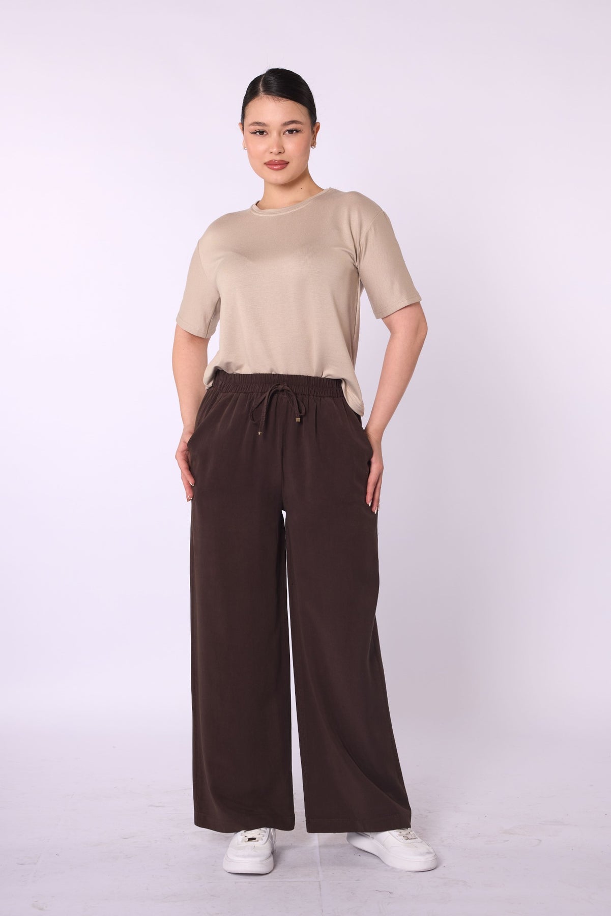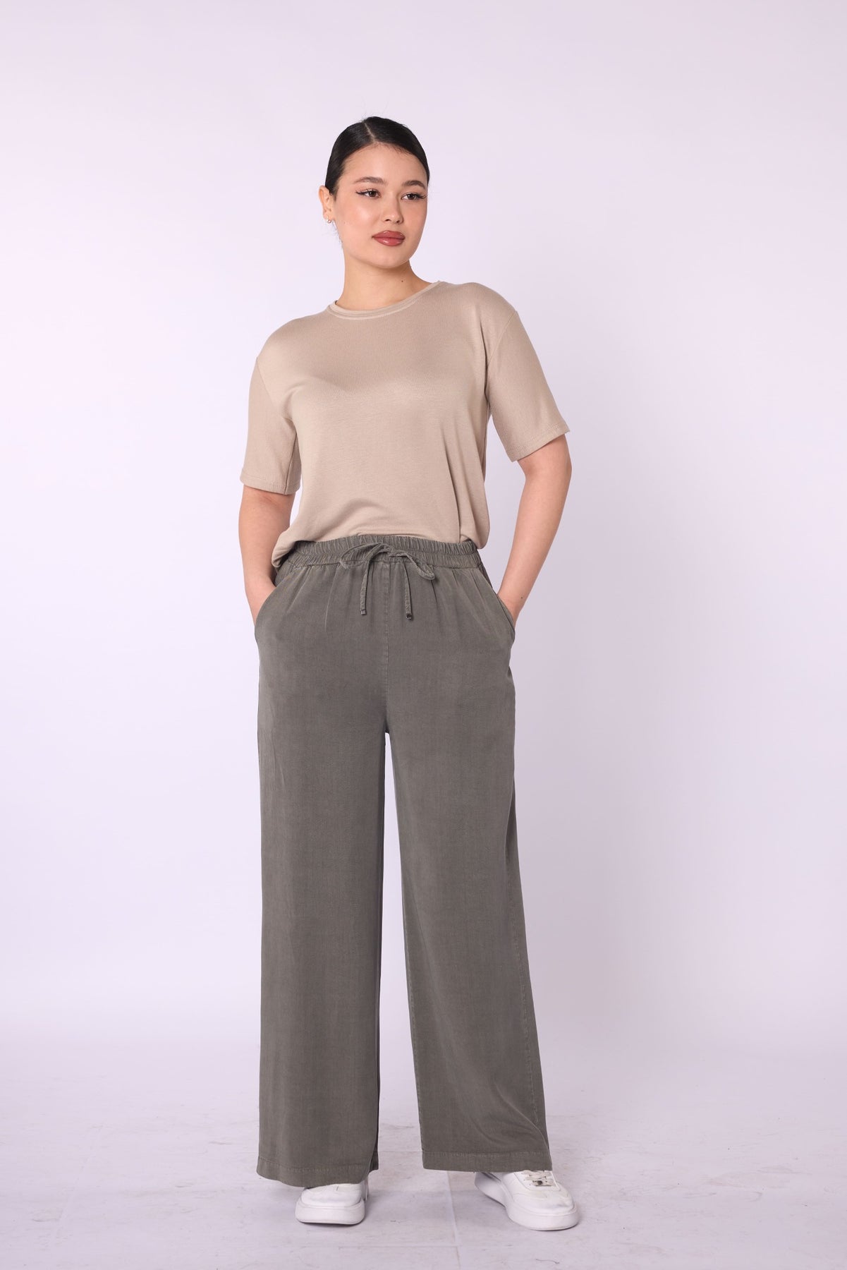 Elastic Waist Wide-Leg Straight Tencel Pants