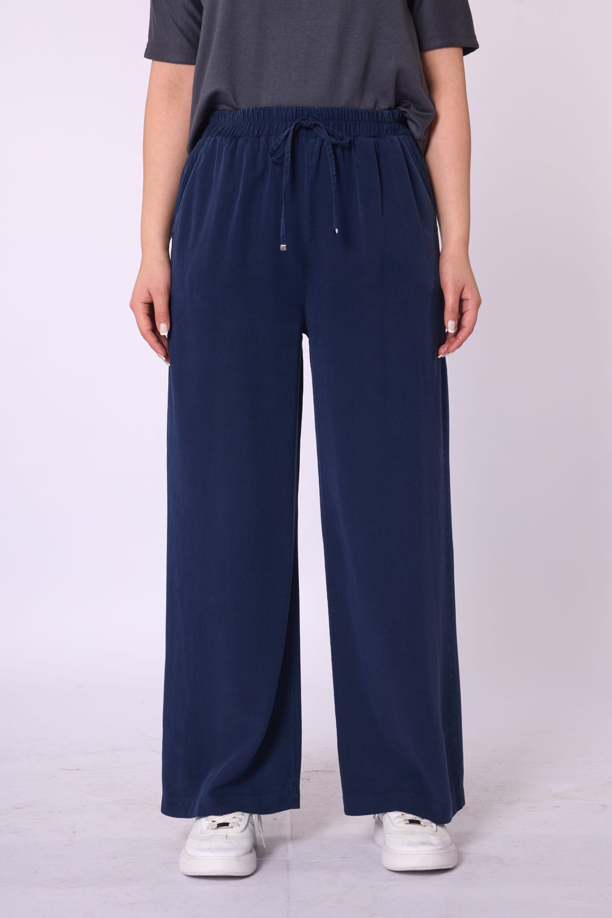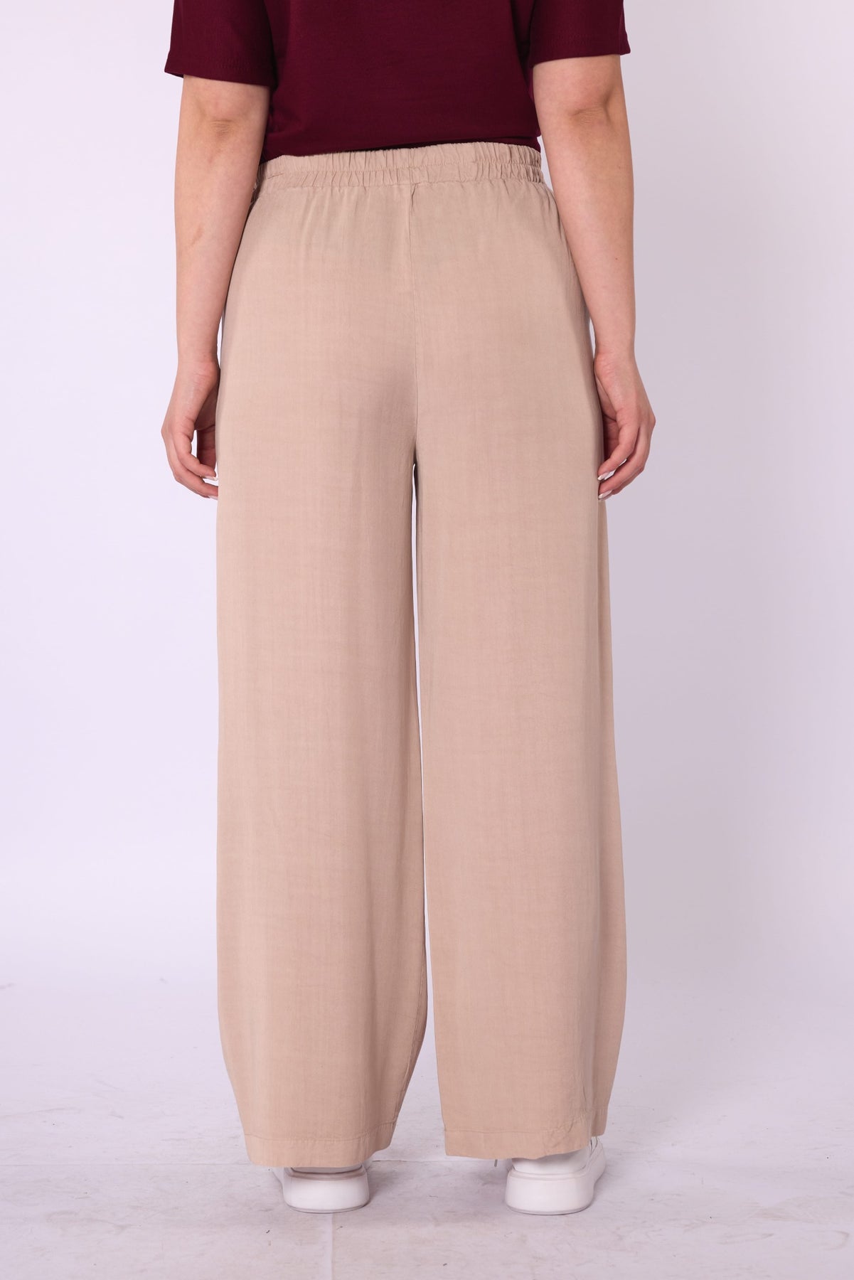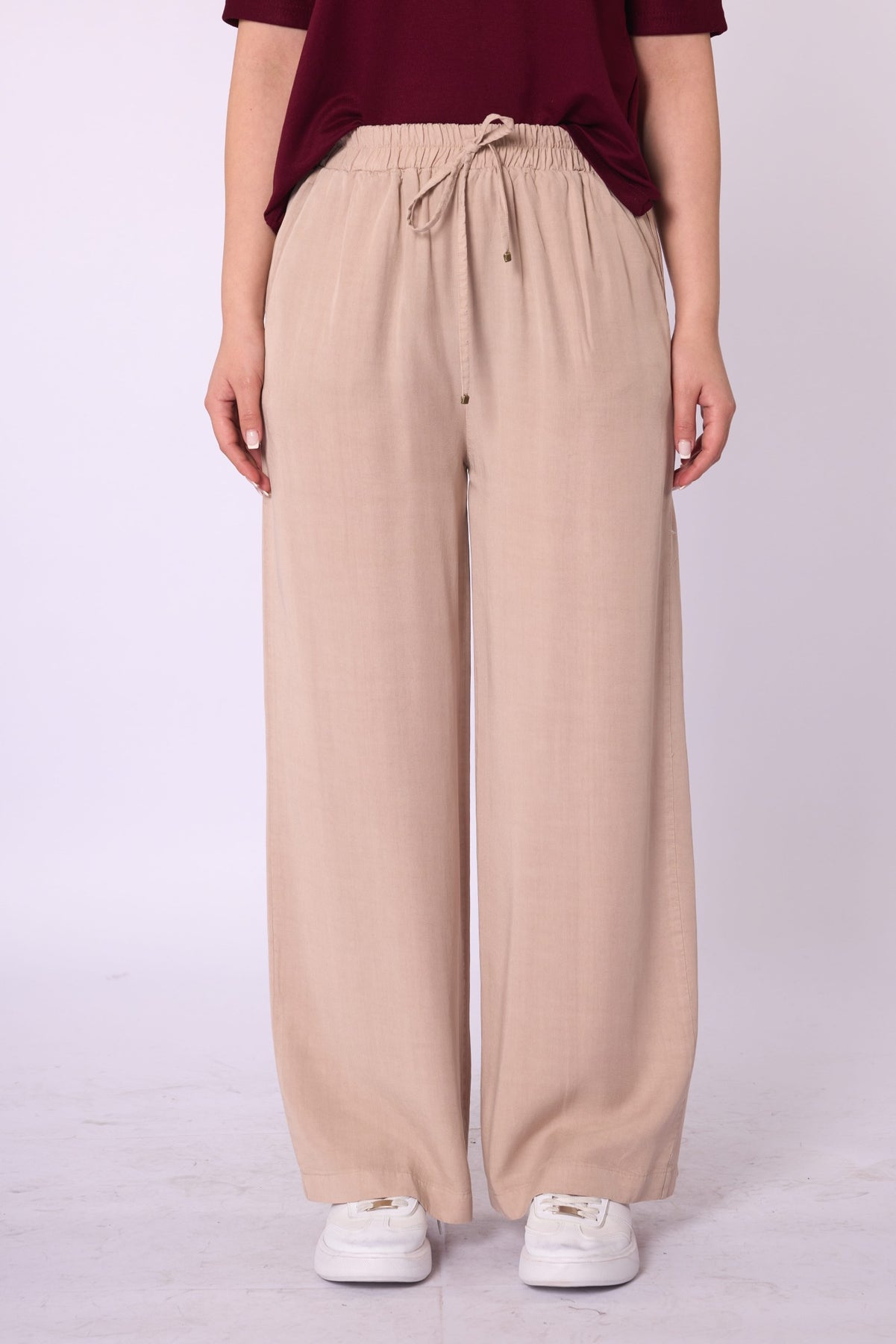 Crafted from 100% Tencel (lyocell), these elastic-waist, wide-leg straight pants deliver an airy feel and all-day comfort. The naturally soft, breathable fabric drapes beautifully without clinging, making the piece especially suitable for spring and summer. A straight cut with generous leg width offers freedom of movement, while the elasticated waistband adapts to your body for an easy pull-on fit and a clean waistline.