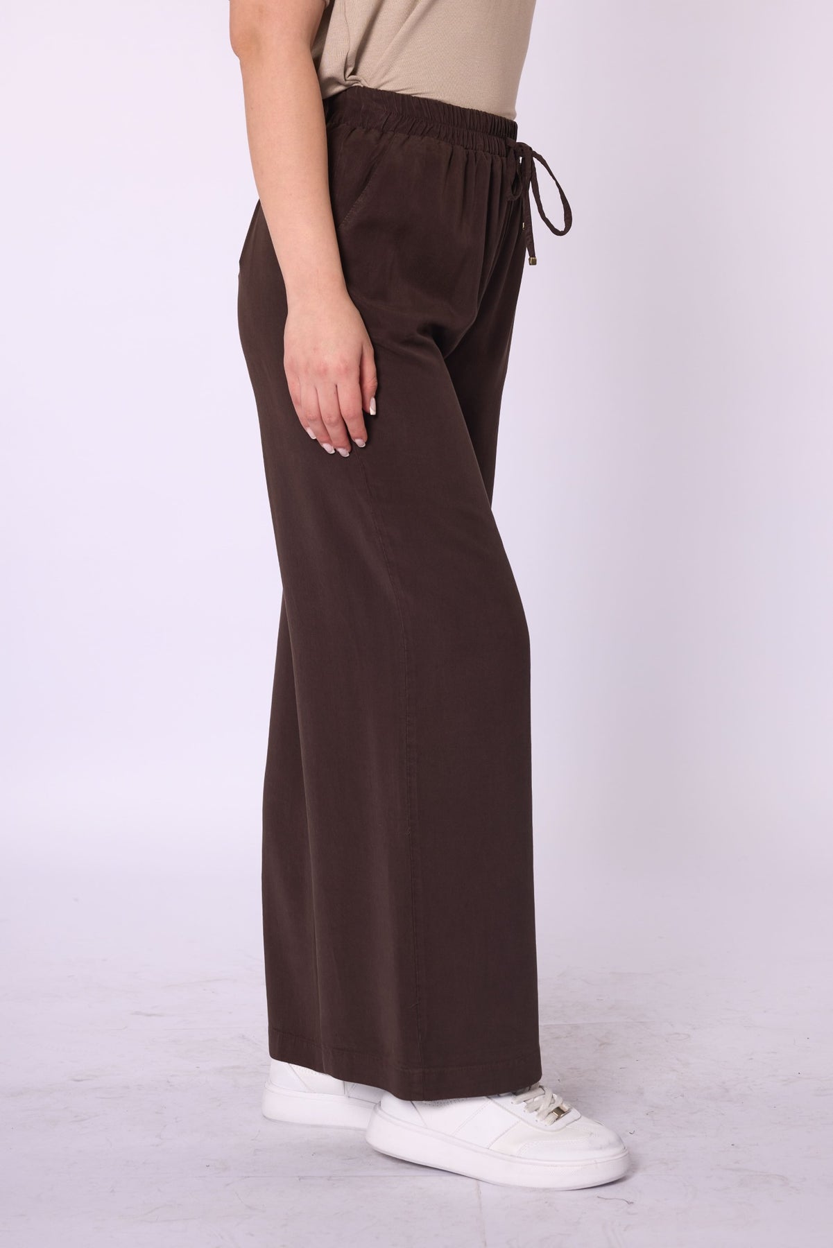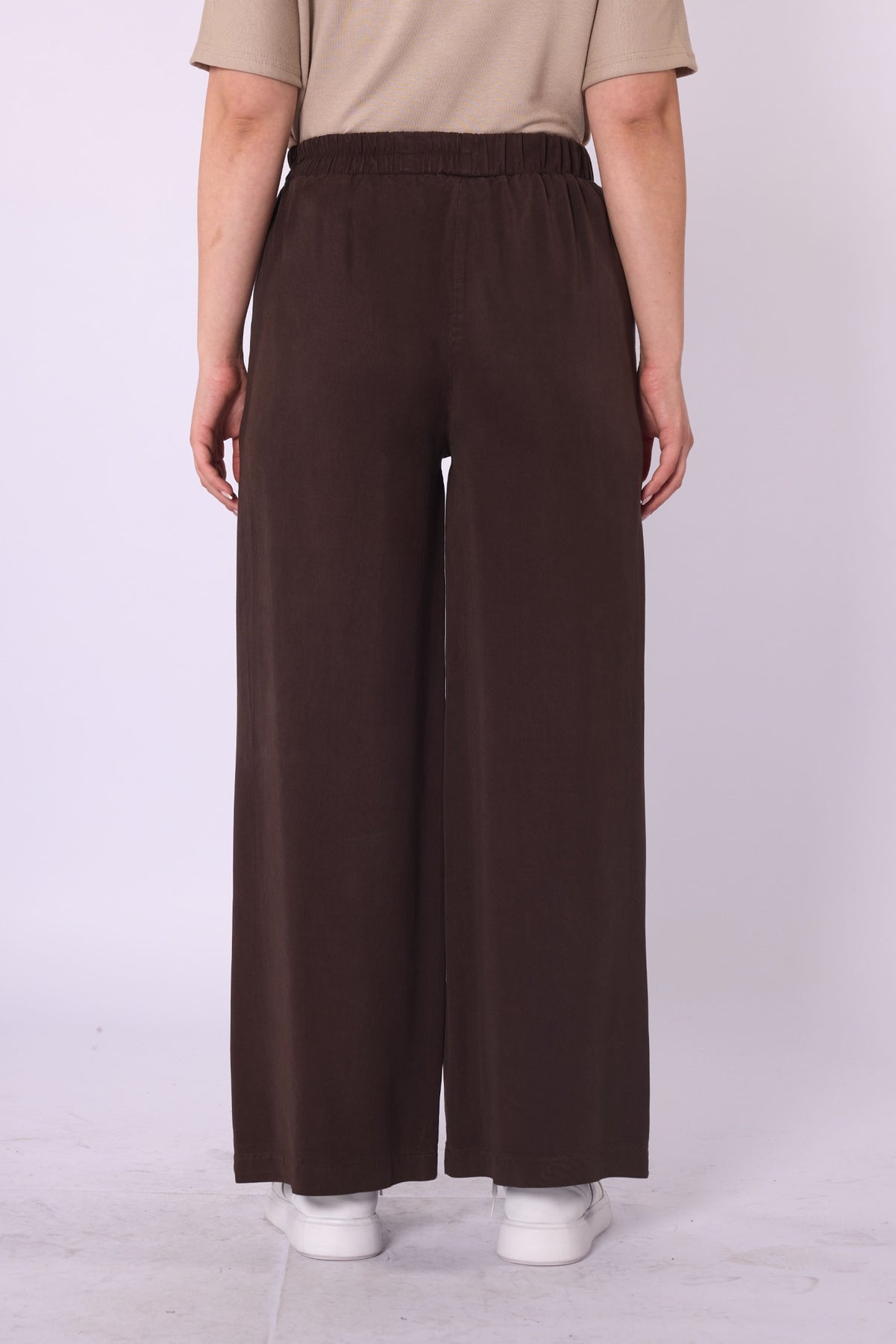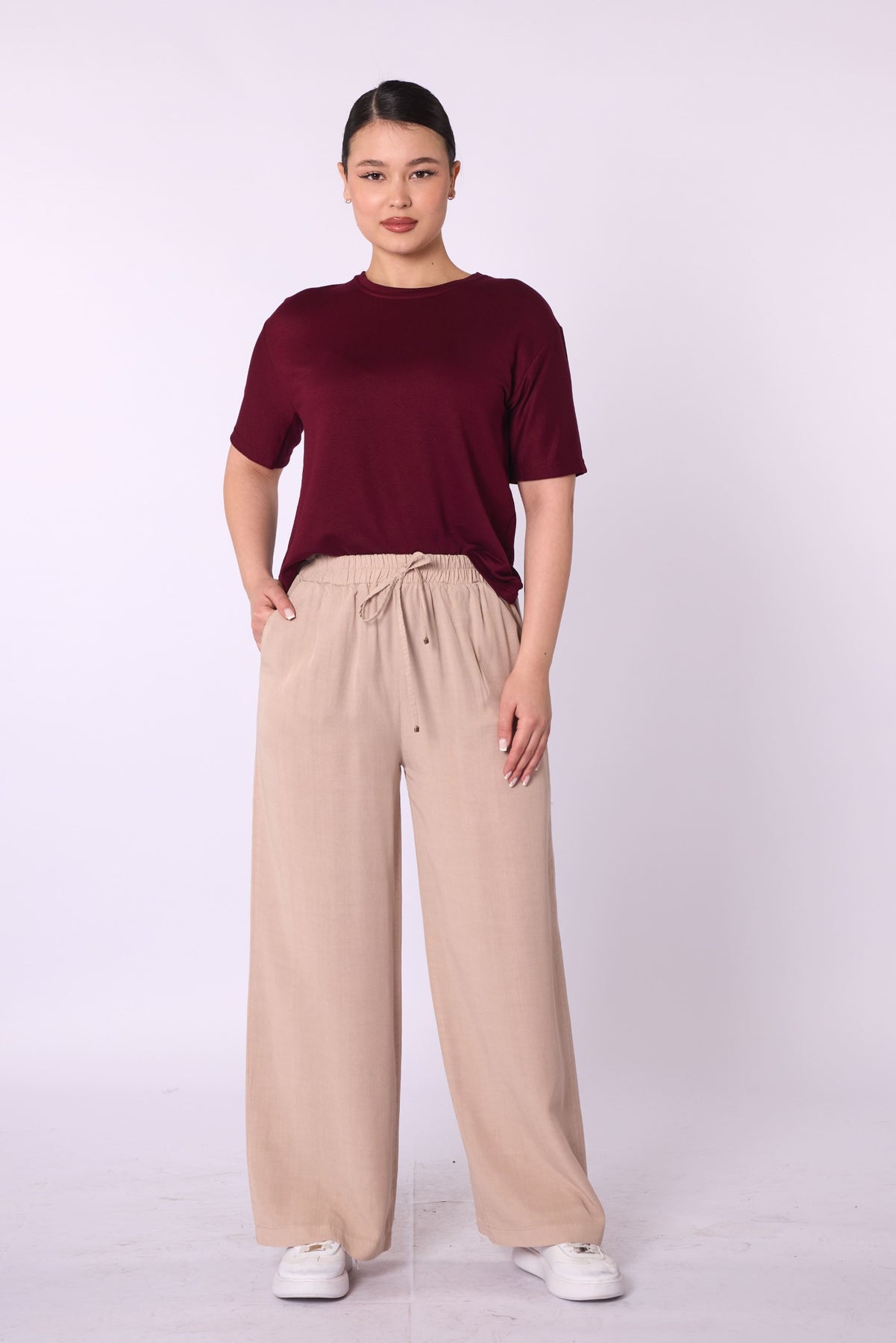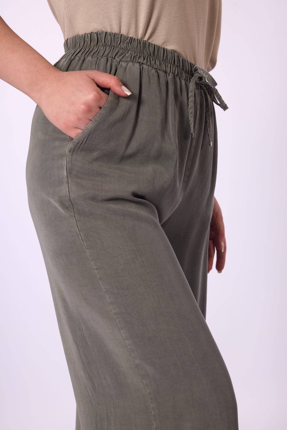Crafted from 100% Tencel (lyocell), these elastic-waist, wide-leg straight pants deliver an airy feel and all-day comfort. The naturally soft, breathable fabric drapes beautifully without clinging, making the piece especially suitable for spring and summer. A straight cut with generous leg width offers freedom of movement, while the elasticated waistband adapts to your body for an easy pull-on fit and a clean waistline.