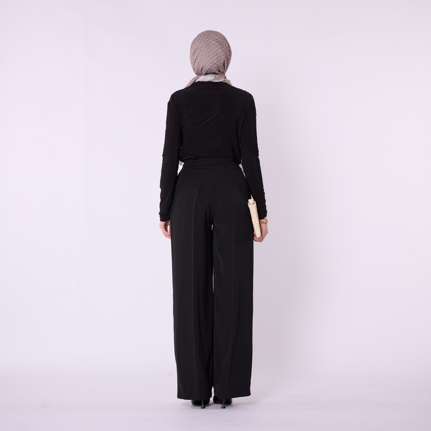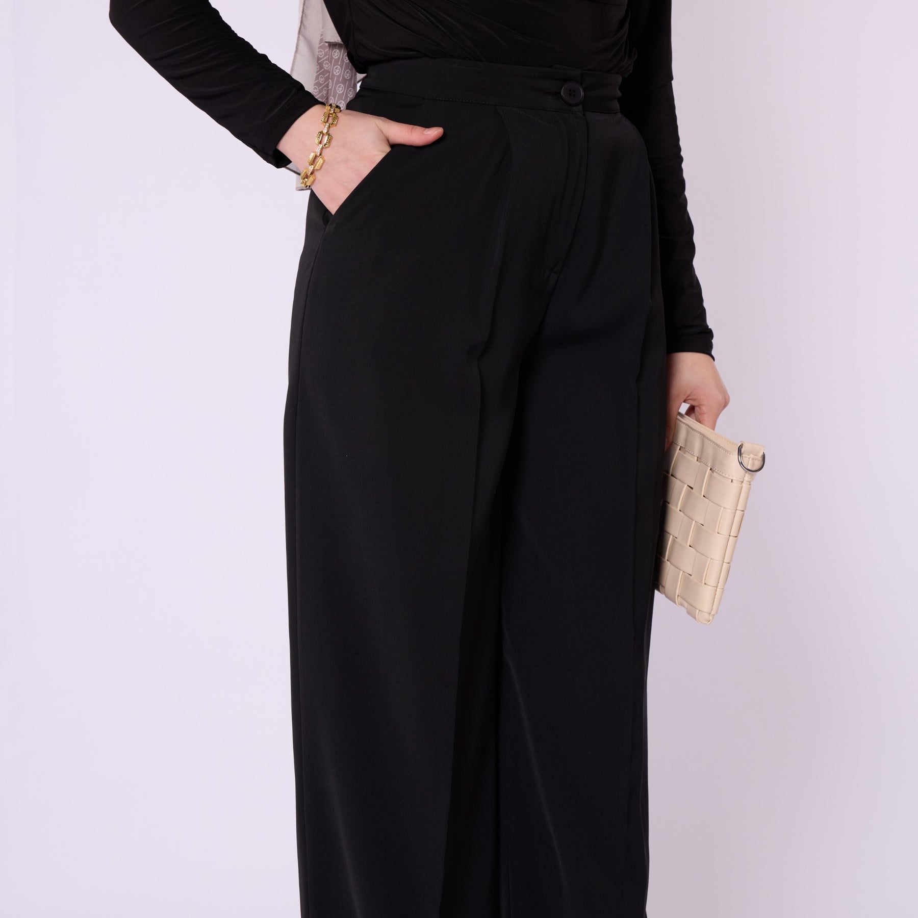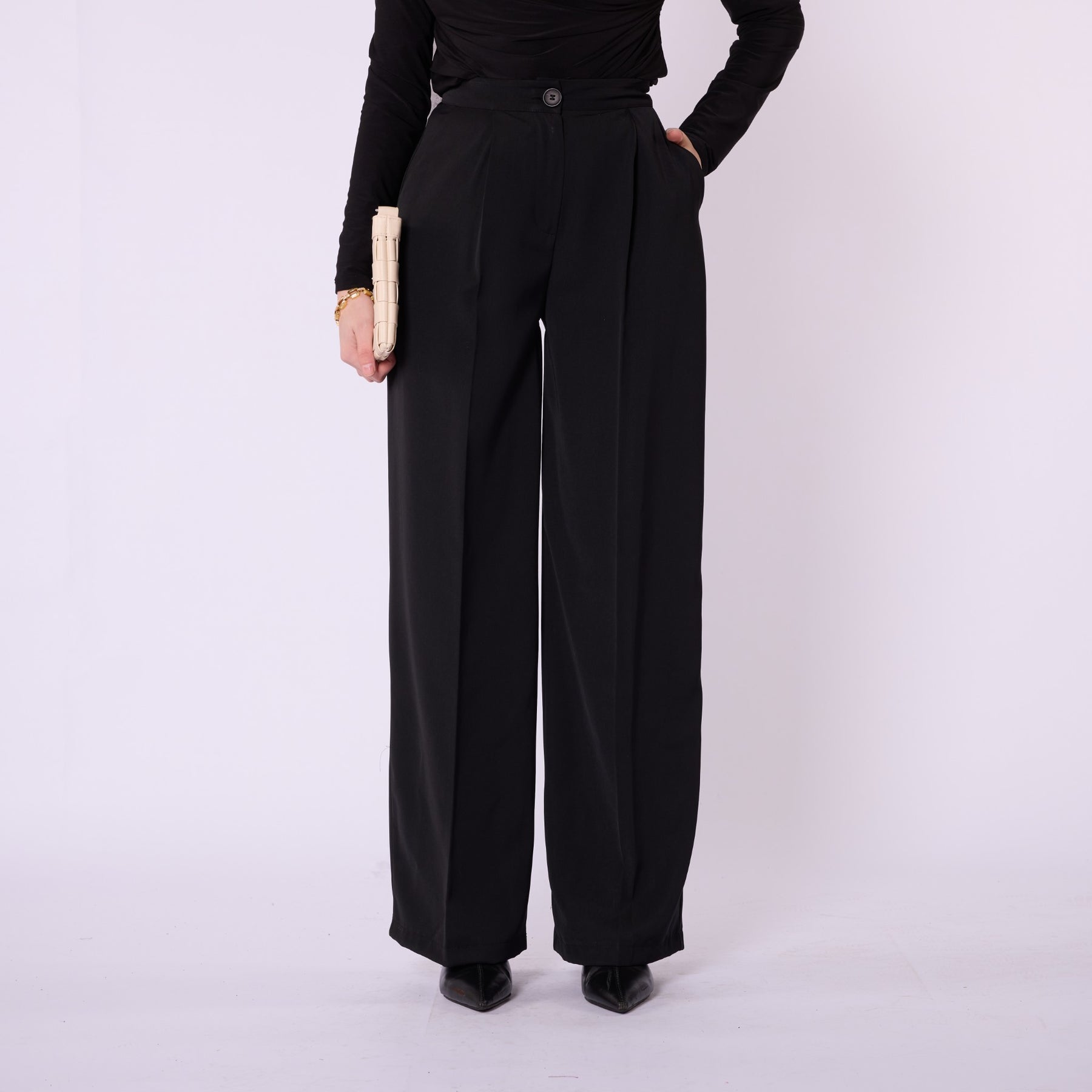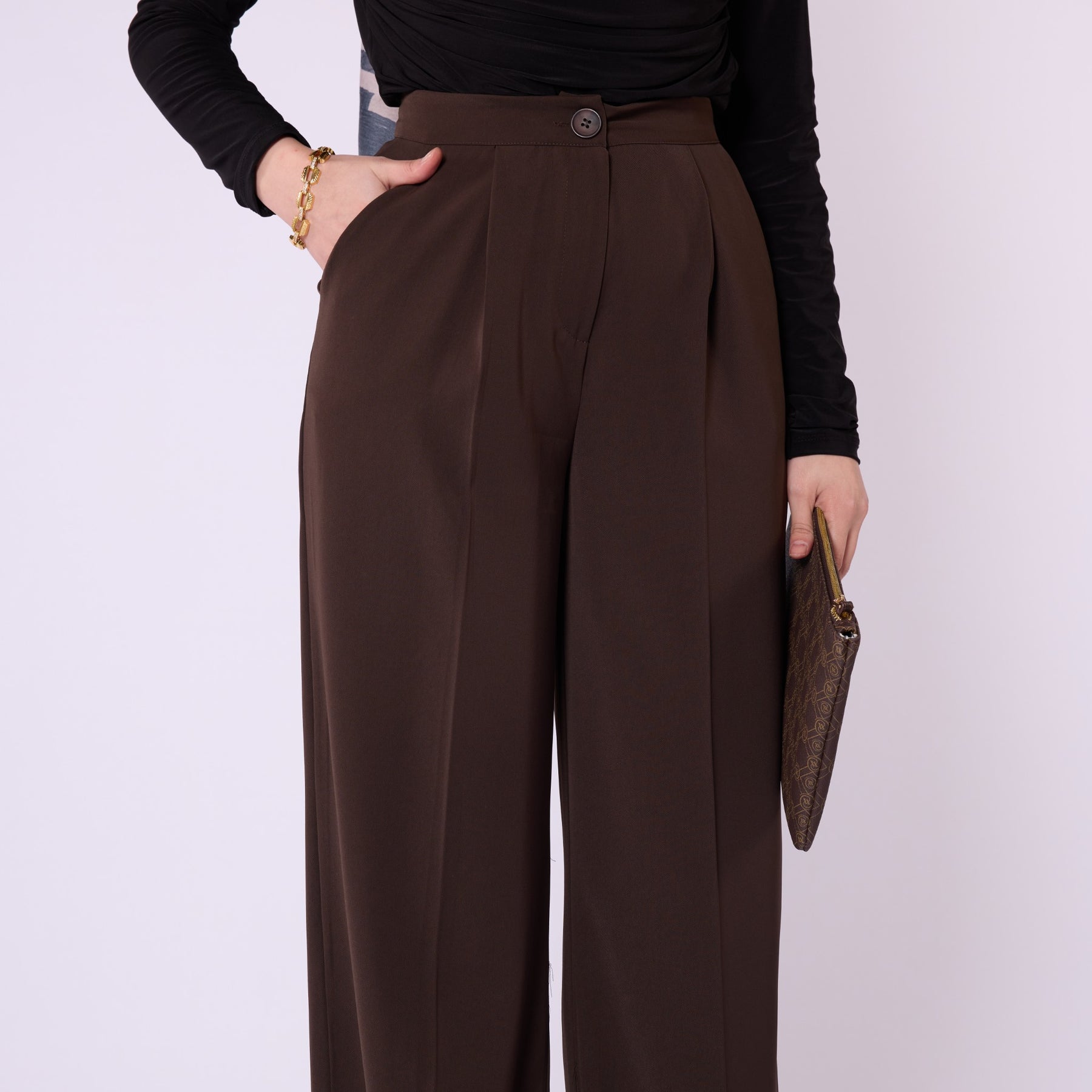 Featuring elegant pleat details, these wide-leg trousers offer a timeless and classic look with a modern silhouette. The flowing structure and wide-leg cut provide comfort and ease of movement, while the pleated design adds a refined and polished touch. Two front pockets enhance both functionality and visual balance.