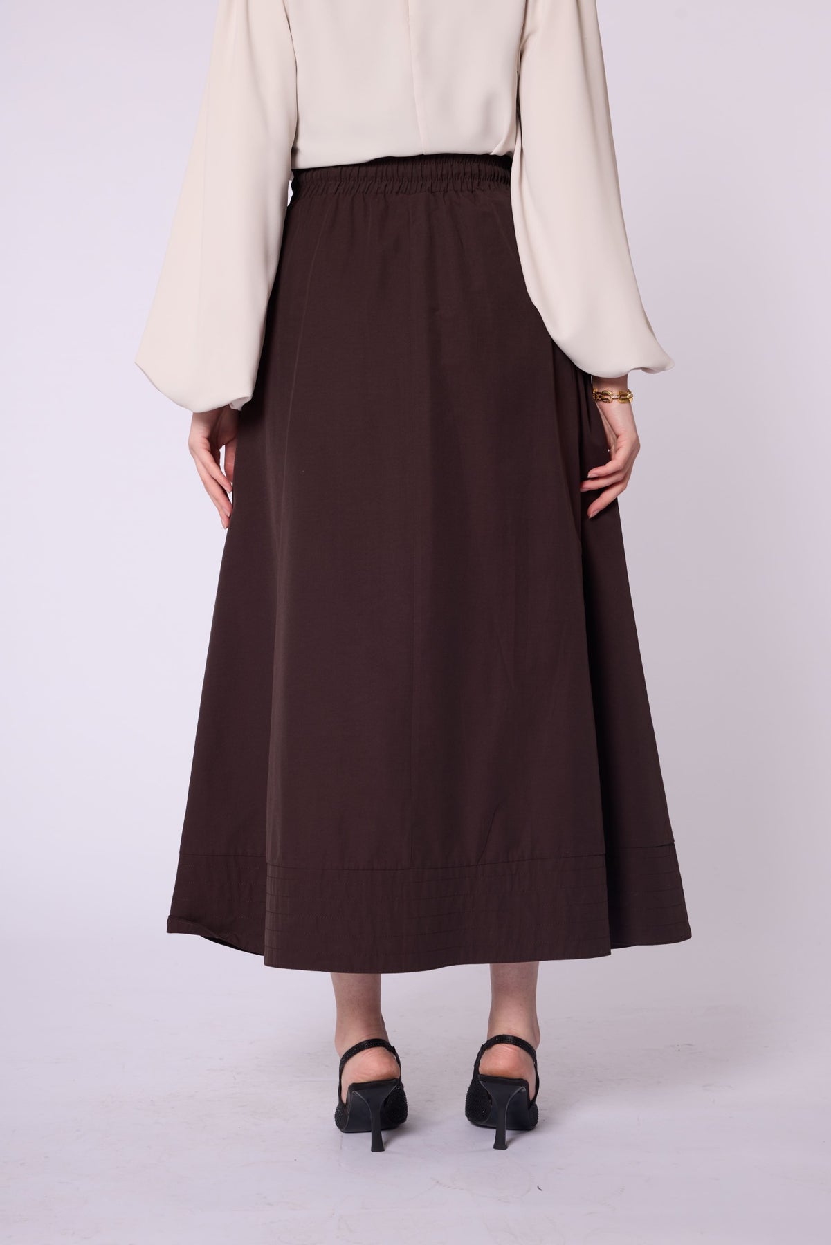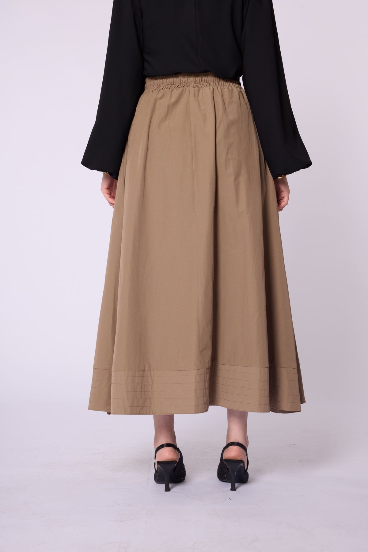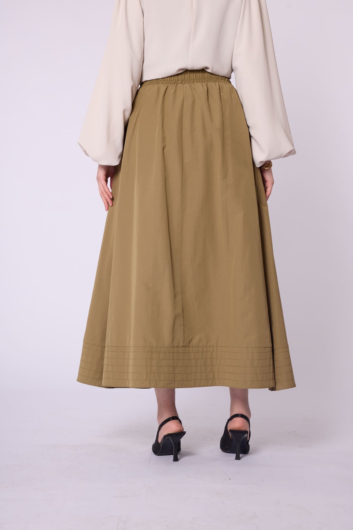 Stitch Detail Elastic Waist Flared Skirt