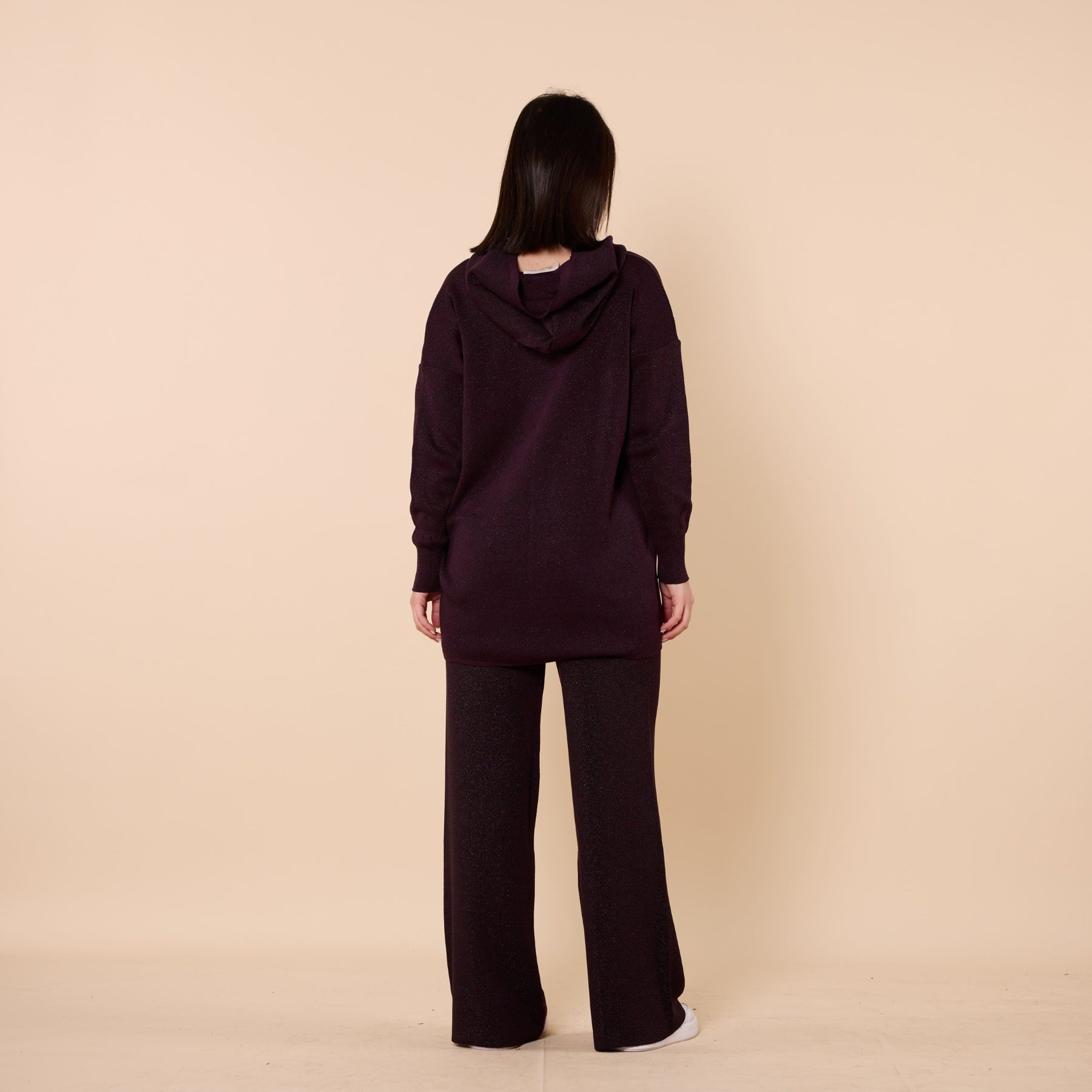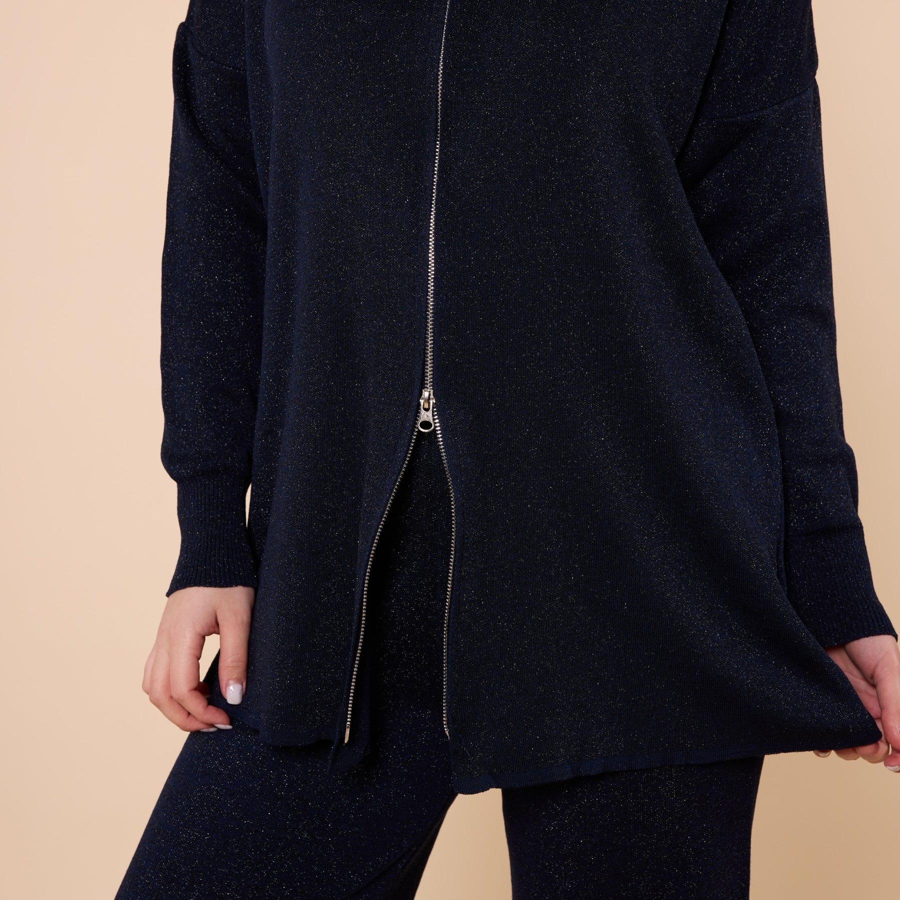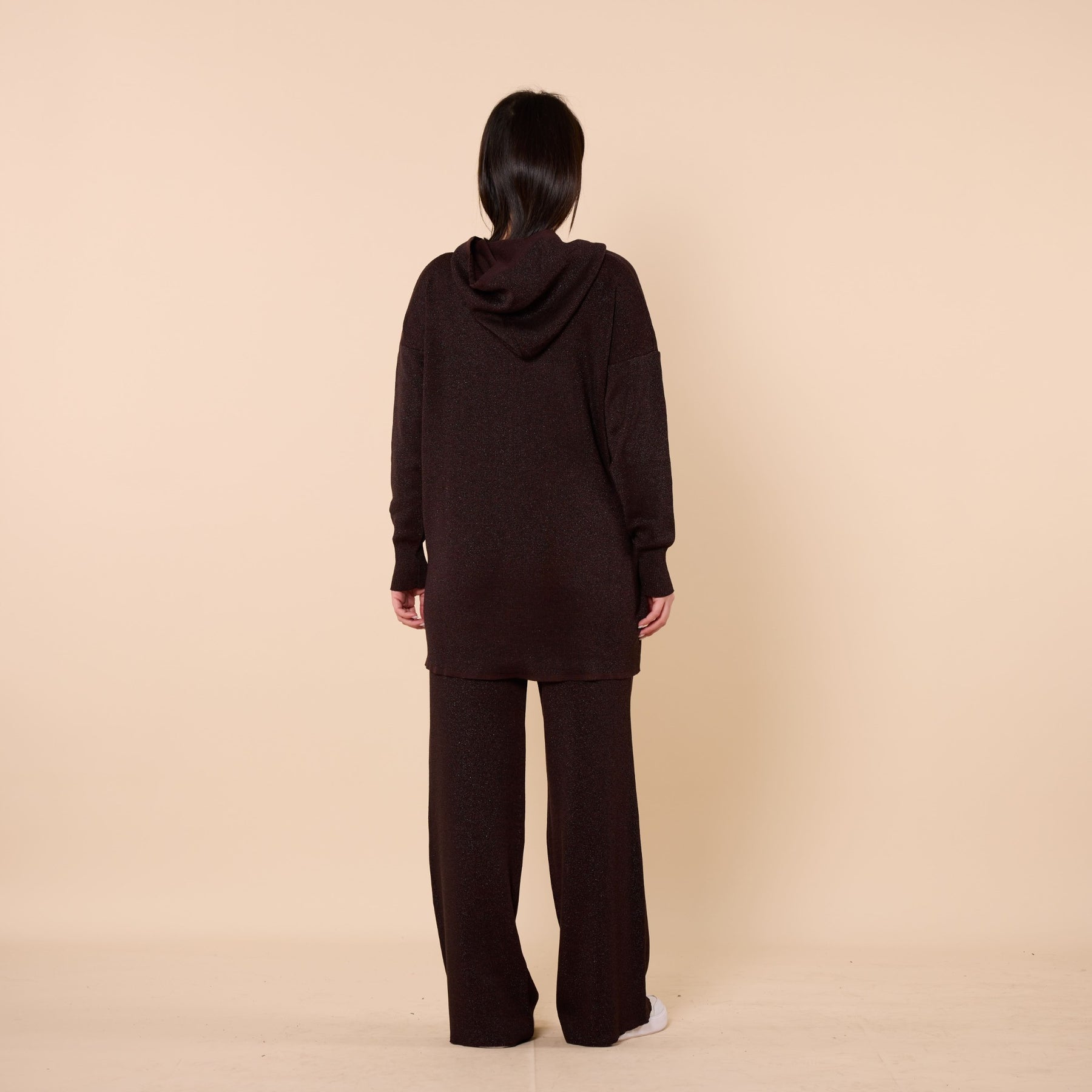 • Model: Zip-up hooded knit two-piece set with shimmer details
